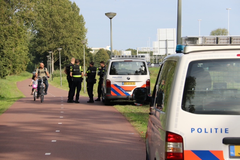 Met diverse eenheden is langs het Hazepad in het hoge gras gezocht naar mogelijke sporen van een schietincident.