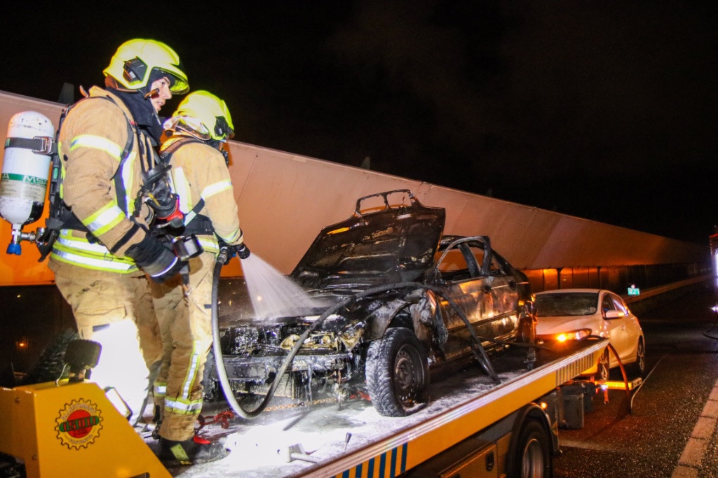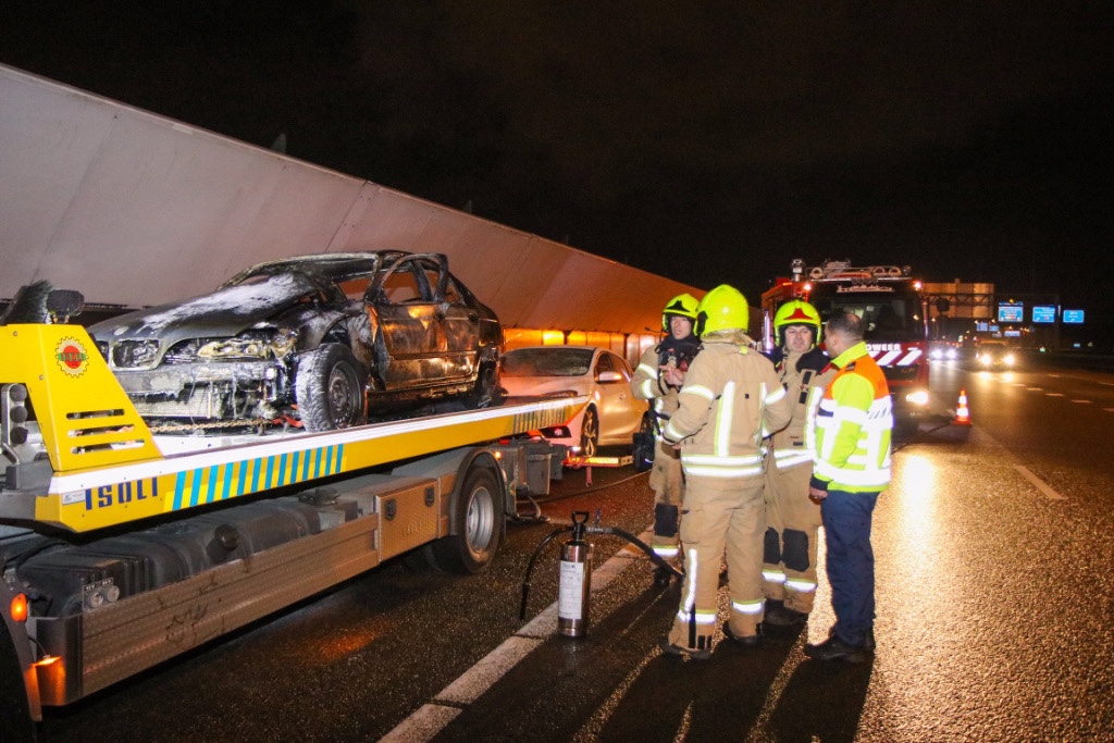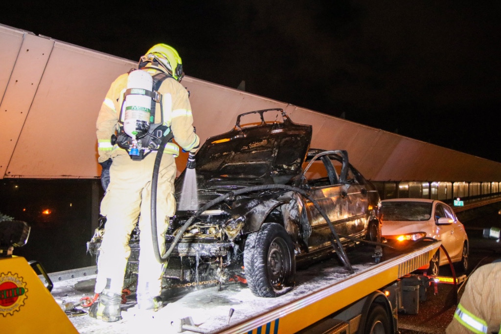 Rotterdam – De auto die eerder vanavond volledig uitbrandde op de A4 bij de Beneluxtunnel is korte tijd later weer opnieuw in brand gevlogen.