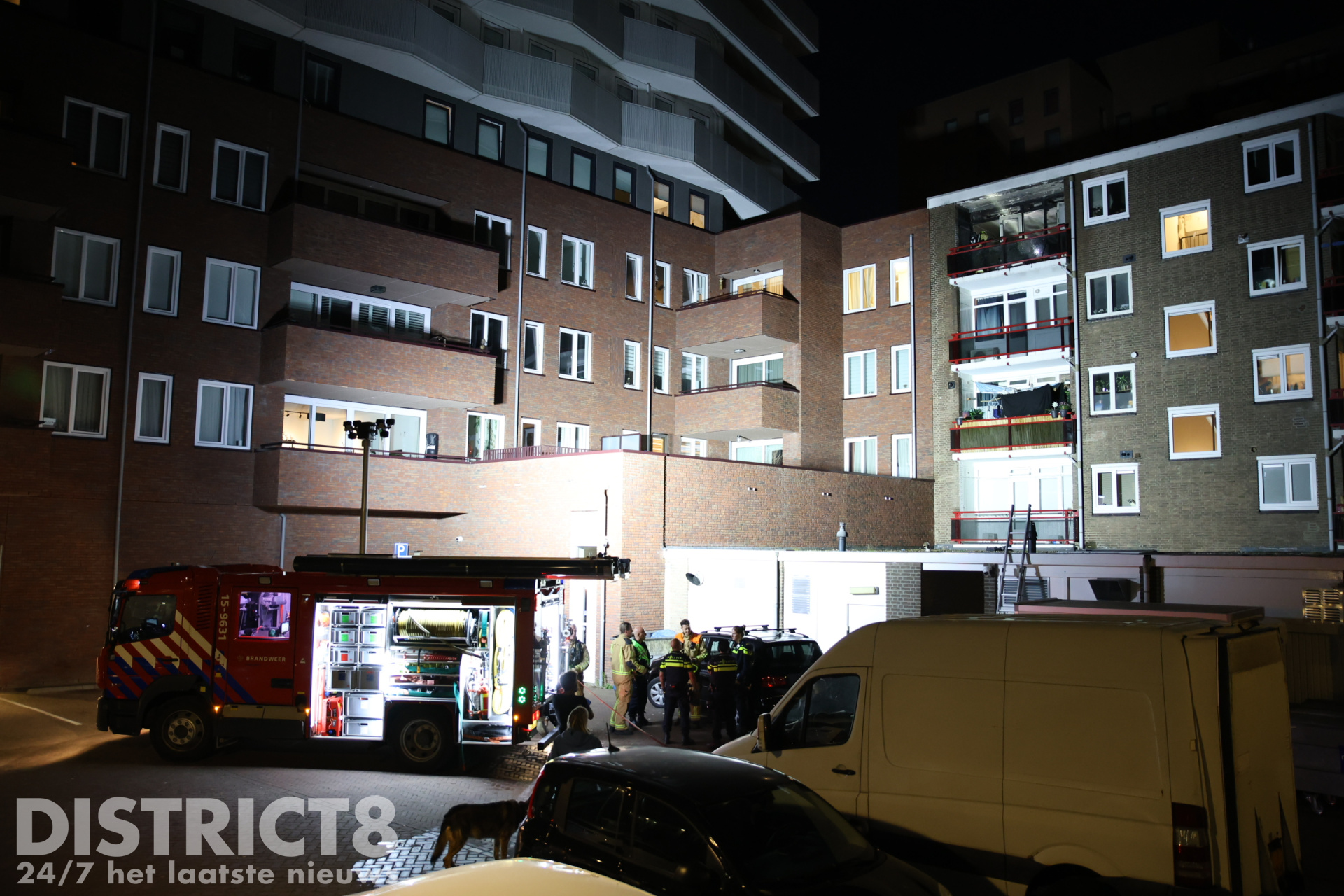 Een ambulance kwam met spoed ter plaatse om één persoon, een vrouw, na te kijken. Het is niet bekend of zij de bewoonster van het appartement was.