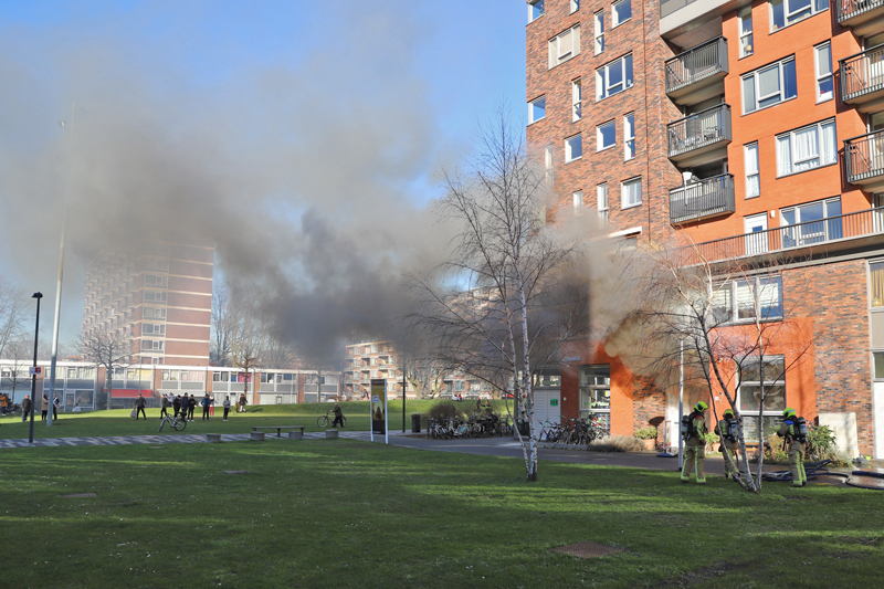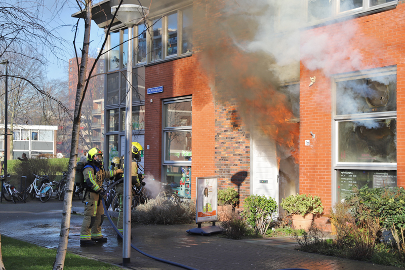 Delft – Vrijdagmiddag 15 februari is de brandweer met spoed gealarmeerd voor een brand in een kapperszaak aan de Taj Mahalplaats in Delft. Bij de aankomst van de brandweer van Delft bleek de brand uitslaand te zijn aan de voorzijde van het pand. De brandweer begon direct met het opbouwen van waterwinning en de blussing van de uitslaande brand. Bij het blussen kwamen grote, zwarte rookwolken vrij.