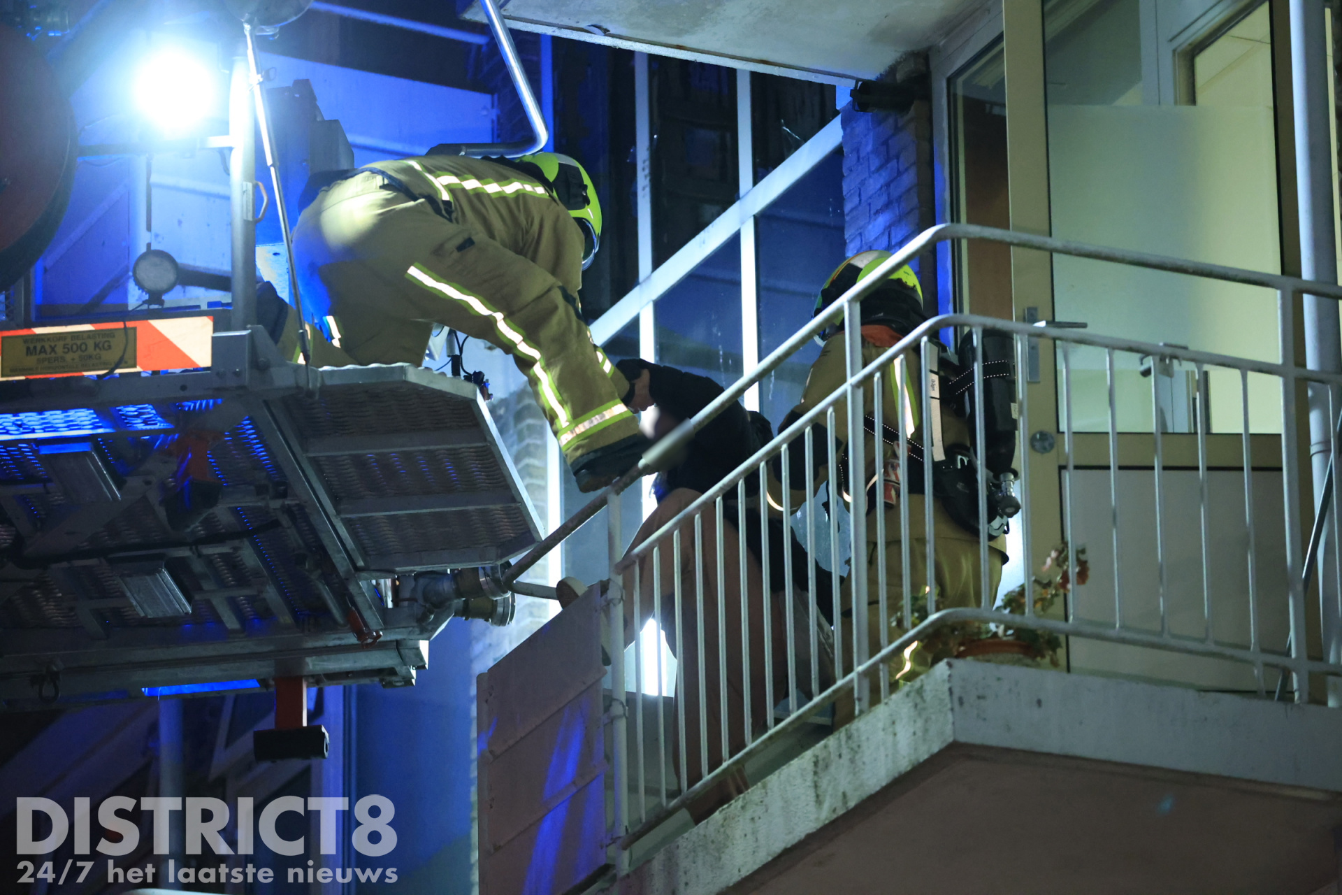 Met behulp van een hoogwerker zijn meerdere bewoners via hun balkon in veiligheid gebracht. Zes mensen ademden rook in; drie van hen zijn naar het ziekenhuis vervoerd.