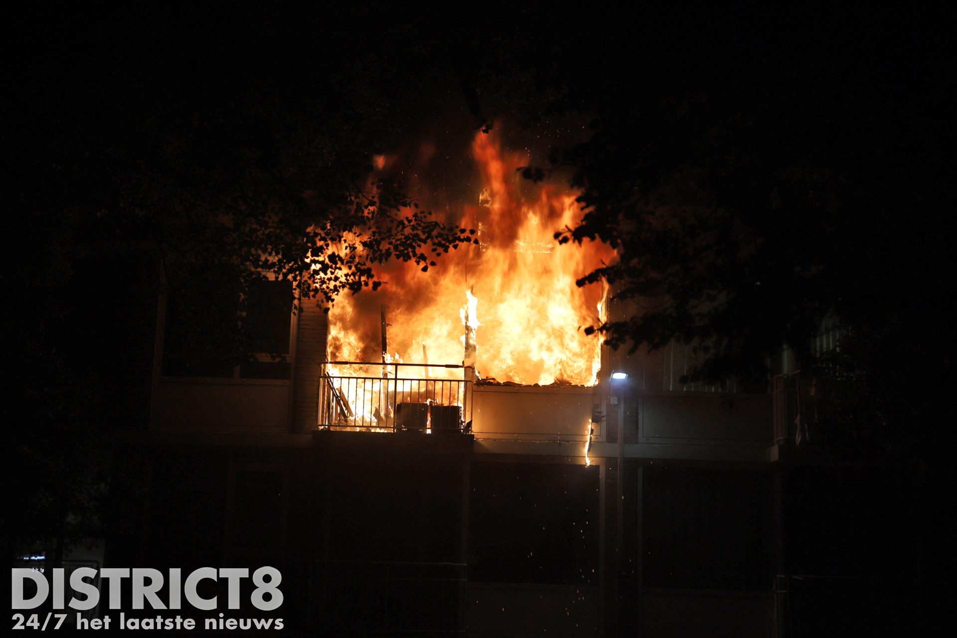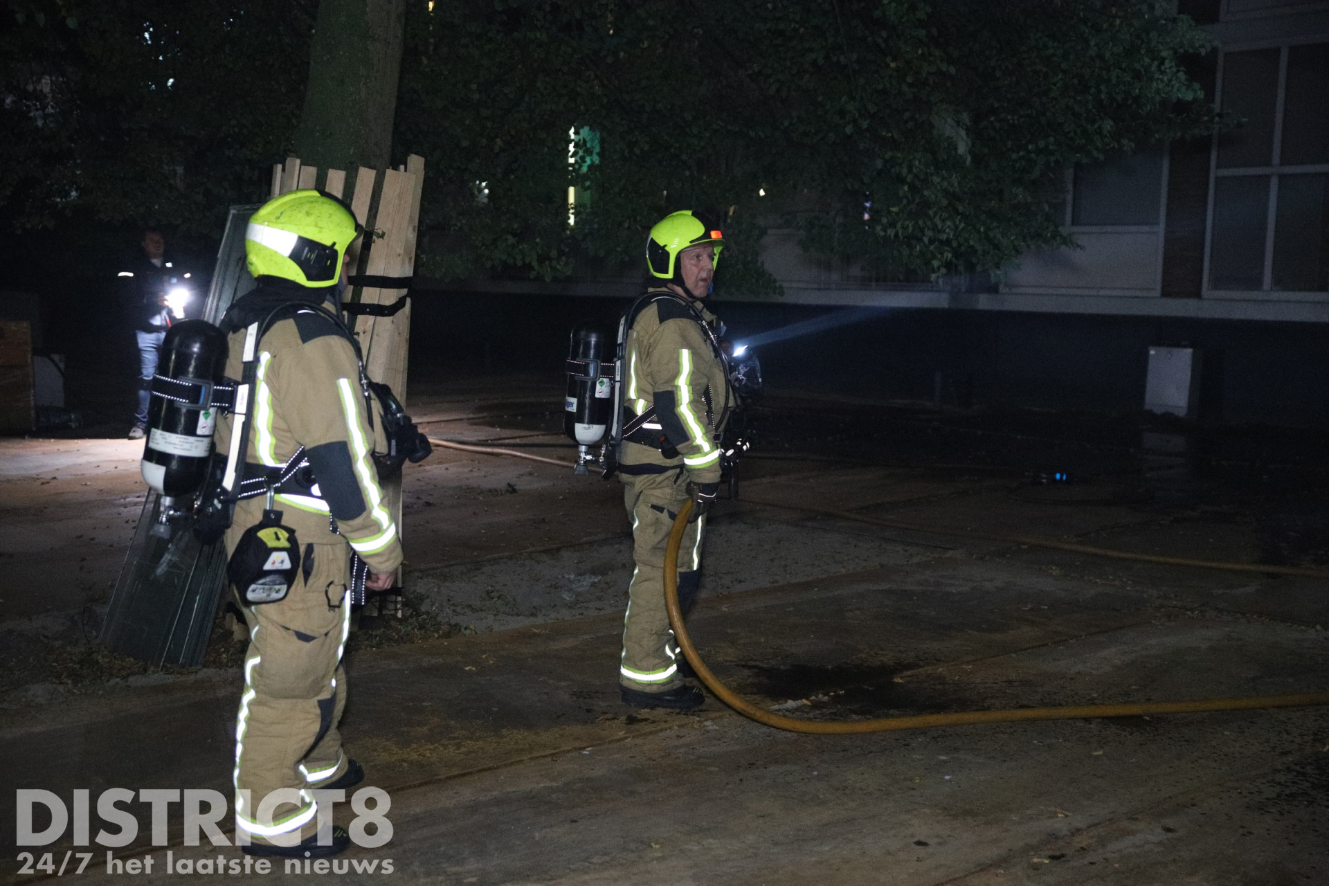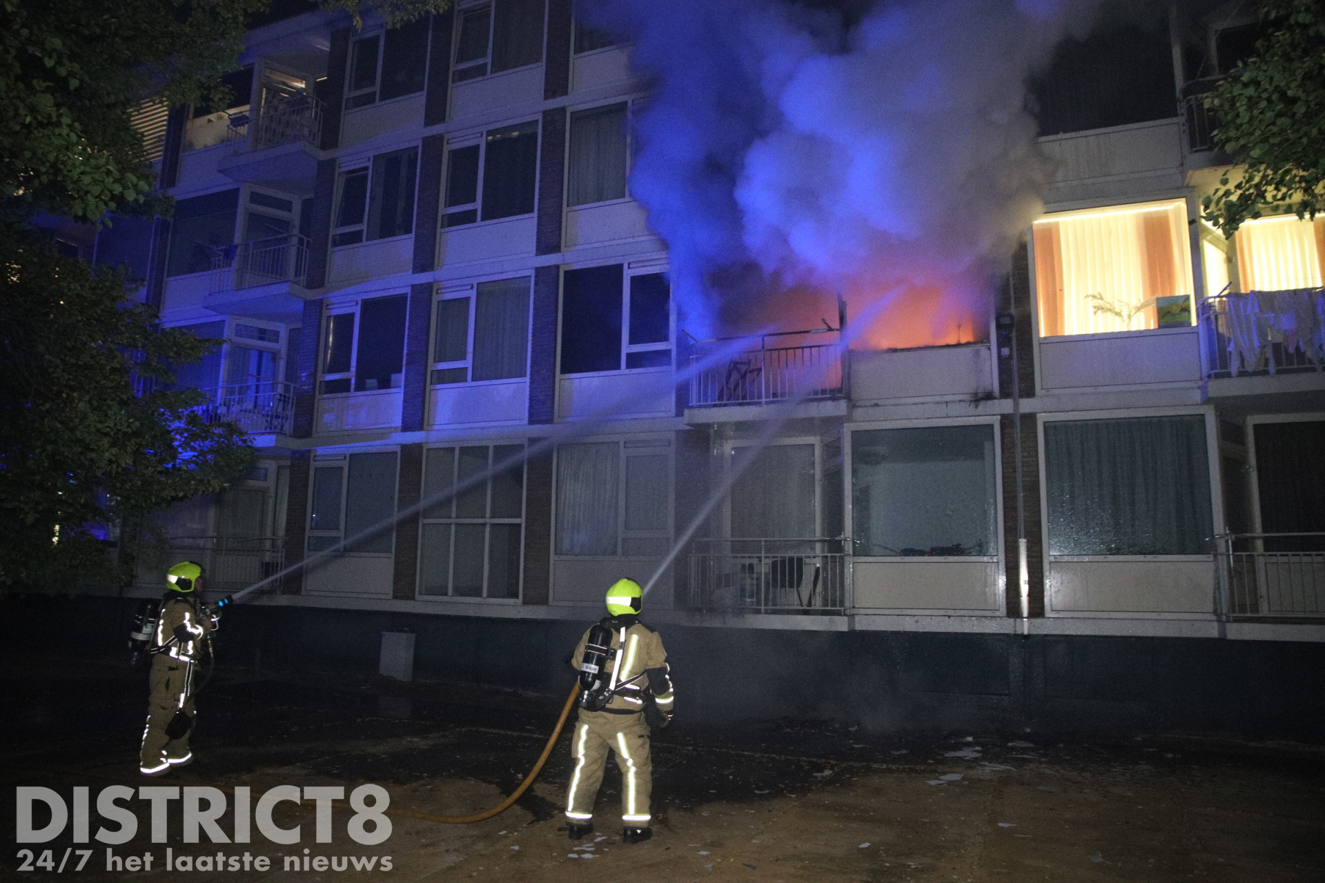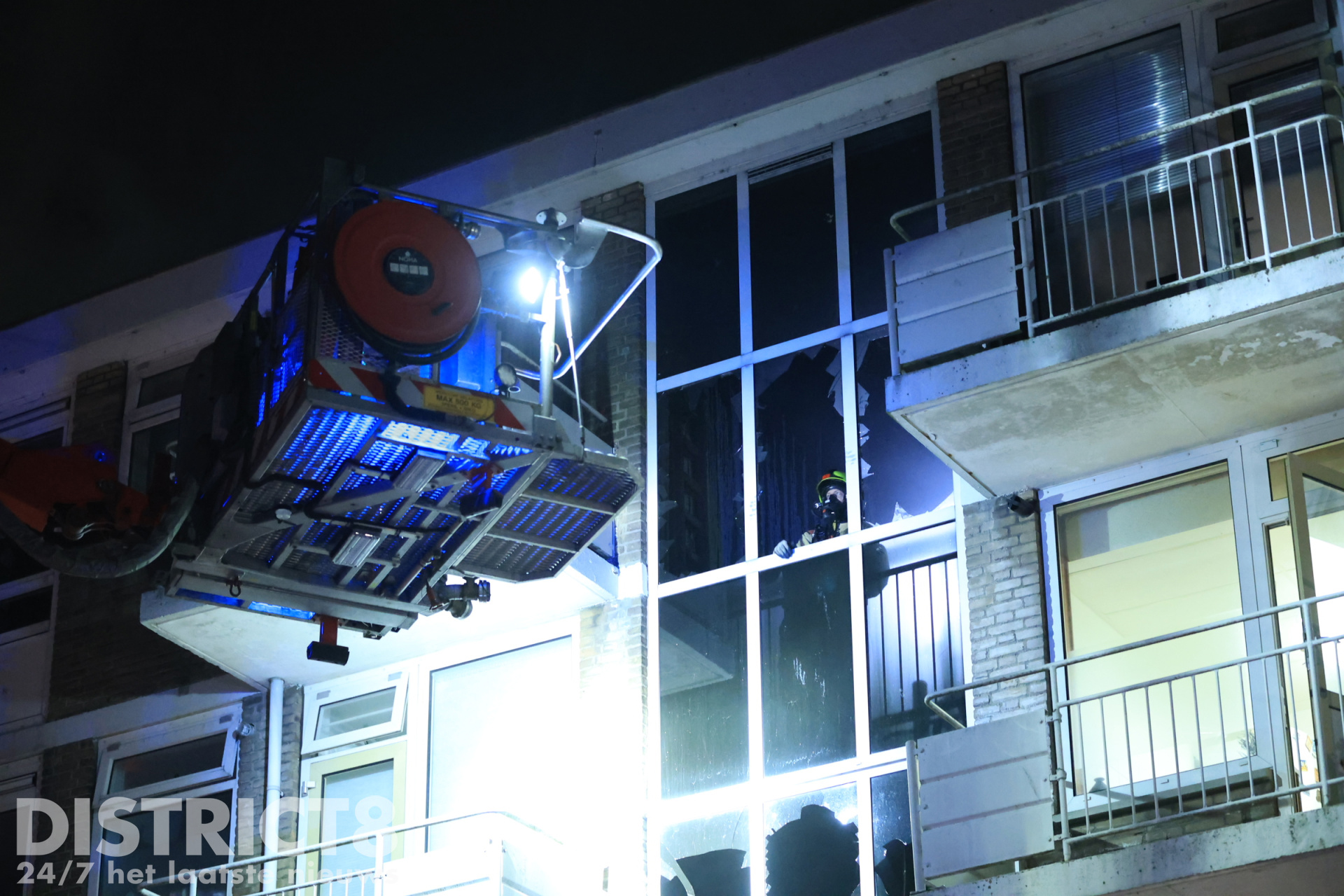 De brandweer kreeg het vuur na enige tijd onder controle en sloeg ramen in het trappenhuis in om de rook af te voeren.