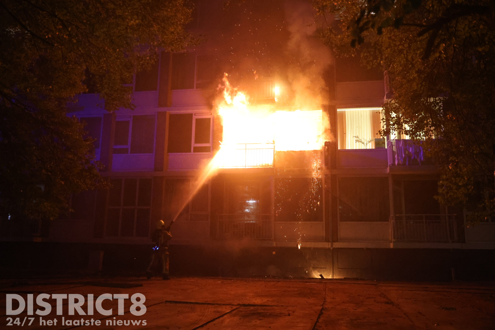 Den Haag – Een woning op de tweede etage aan het Vredeoord in Den Haag is maandagavond 29 september verwoest door een grote brand. De brand brak rond 21.50 uur uit en greep snel om zich heen, waarbij vlammen zowel aan de voor- als achterzijde uitsloegen. De brandweer schaalde direct op naar ‘grote brand’.
