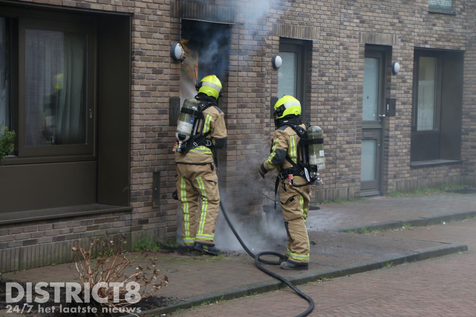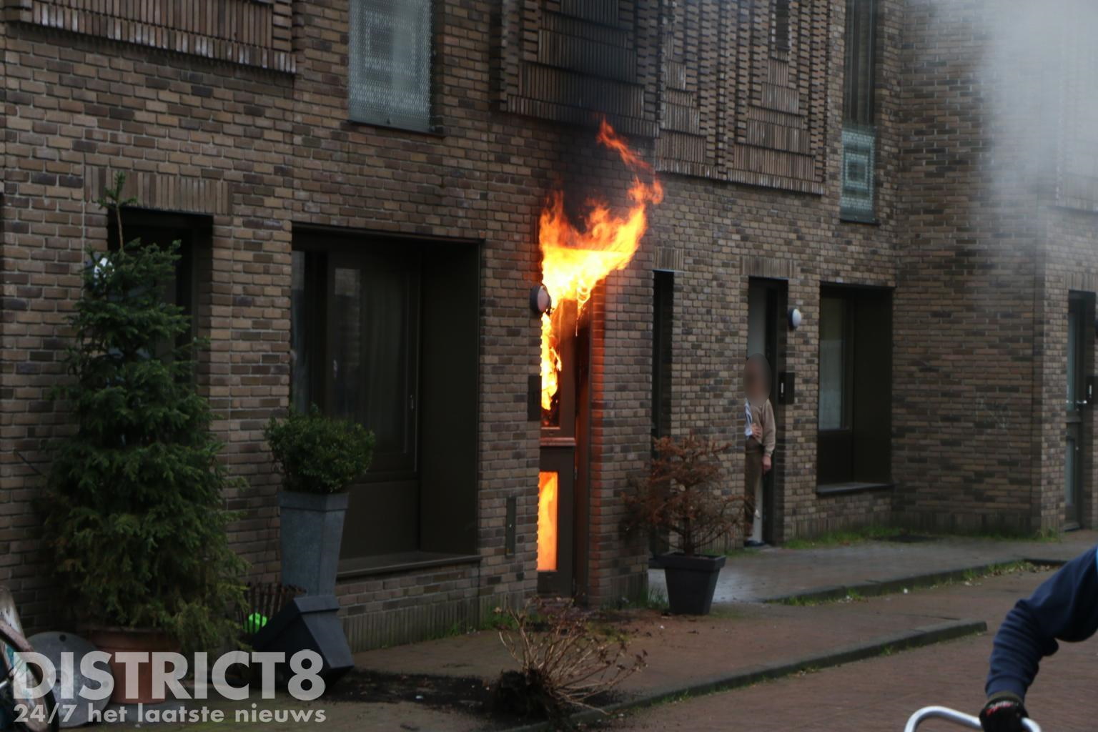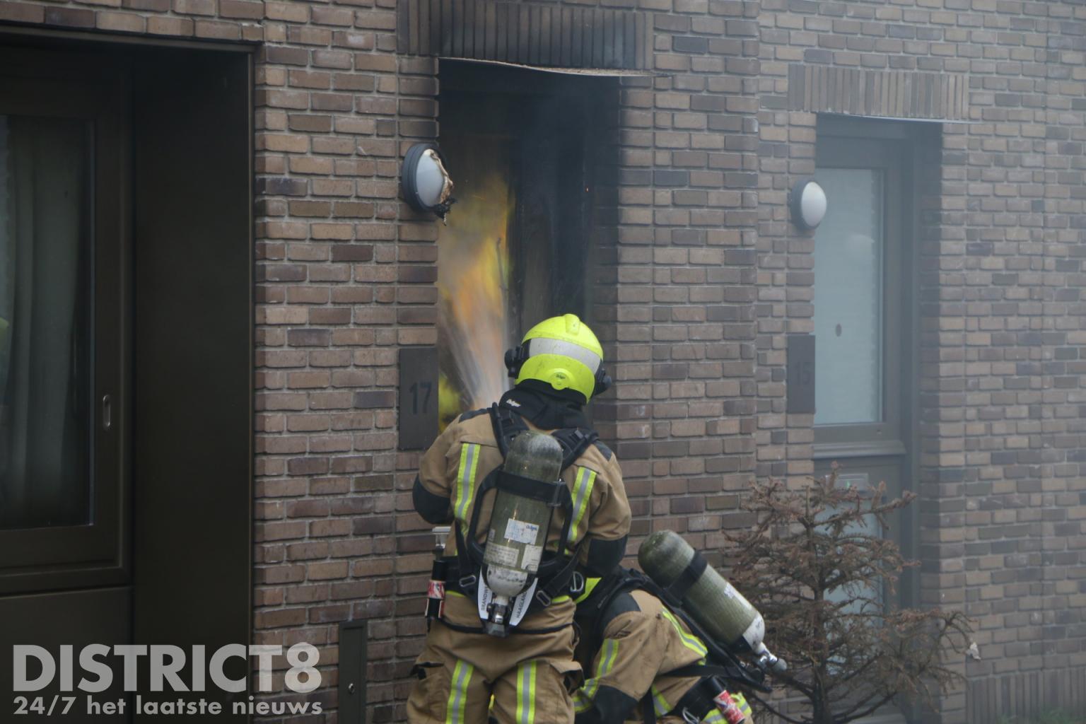De brandweer schaalde snel op naar middelbrand, omdat de brand locatie lastig bereikbaar was in verband met paaltjes in de weg. De brand was in de gang, bij de meterkast, uitslaand. Verschillende knallen waren te horen die door de stroom in de meterkast werden veroorzaakt.