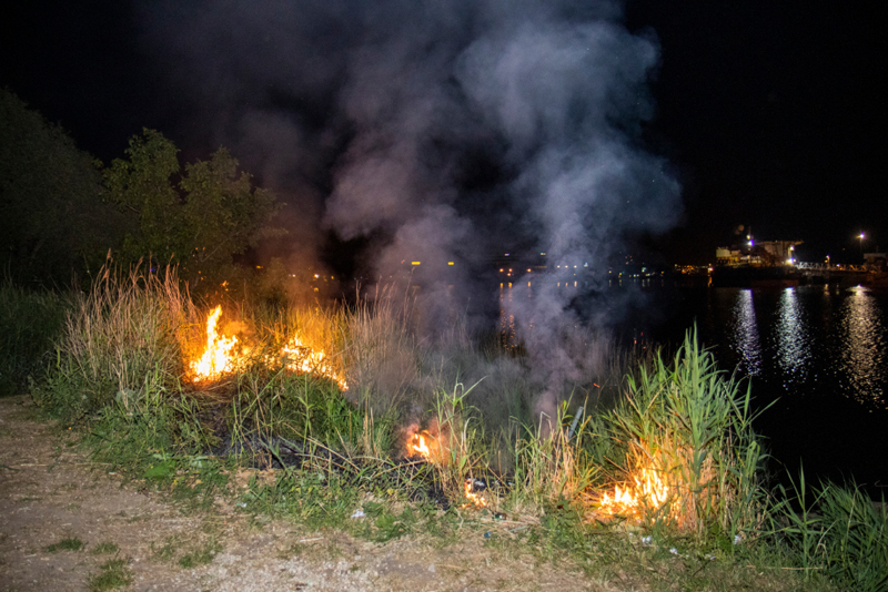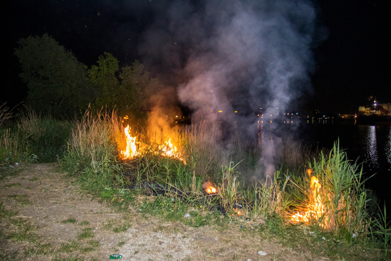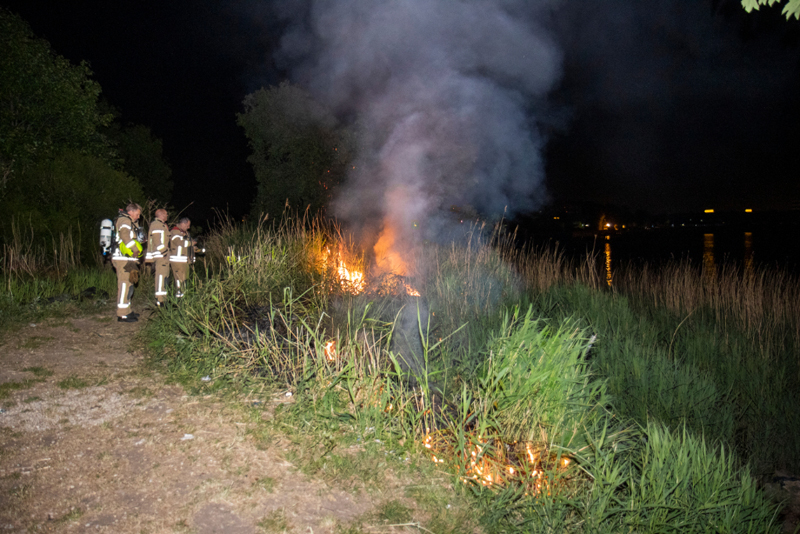 Schiedam – Een stuk riet achter de Westfrankelandsedijk in Schiedam, aan de Wilhelminahaven, heeft zaterdagavond in brand gestaan.