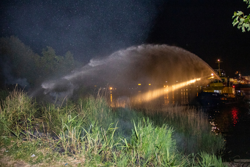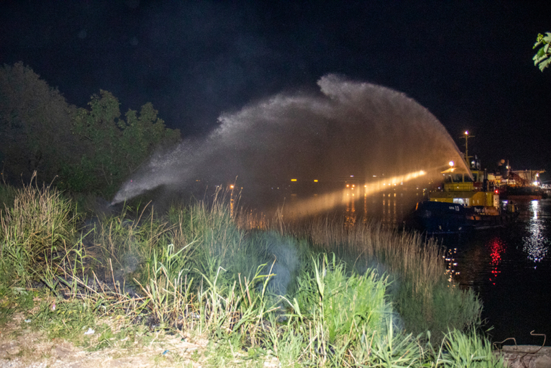 De brandweer kon de plek niet bereiken met hun blusmiddelen. Omdat het brandje vlak langs de waterkant was werd de hulp ingeroepen van de havendienst.