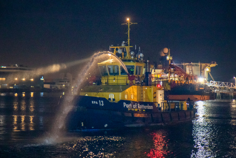 Zij kwamen ter plaatse met hun vaartuig, de RPA13. Met het waterkanon was het vuur binnen enkele seconden volledig gedoofd.