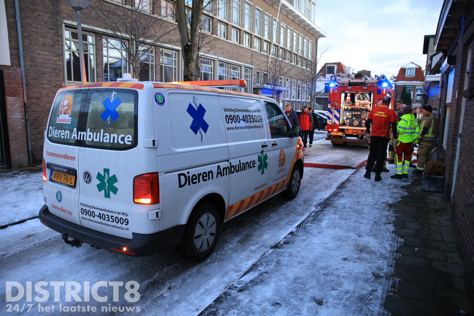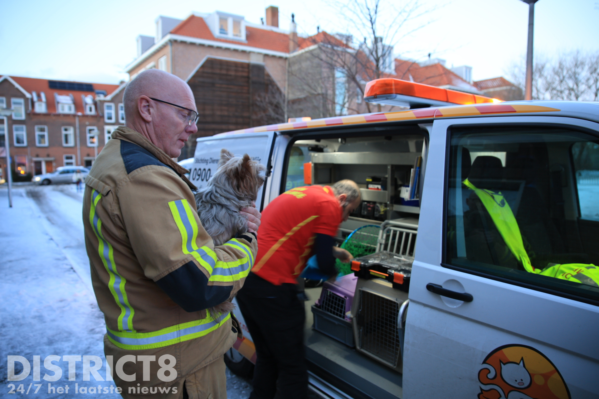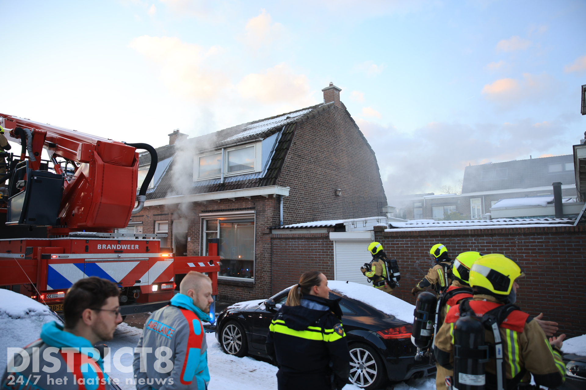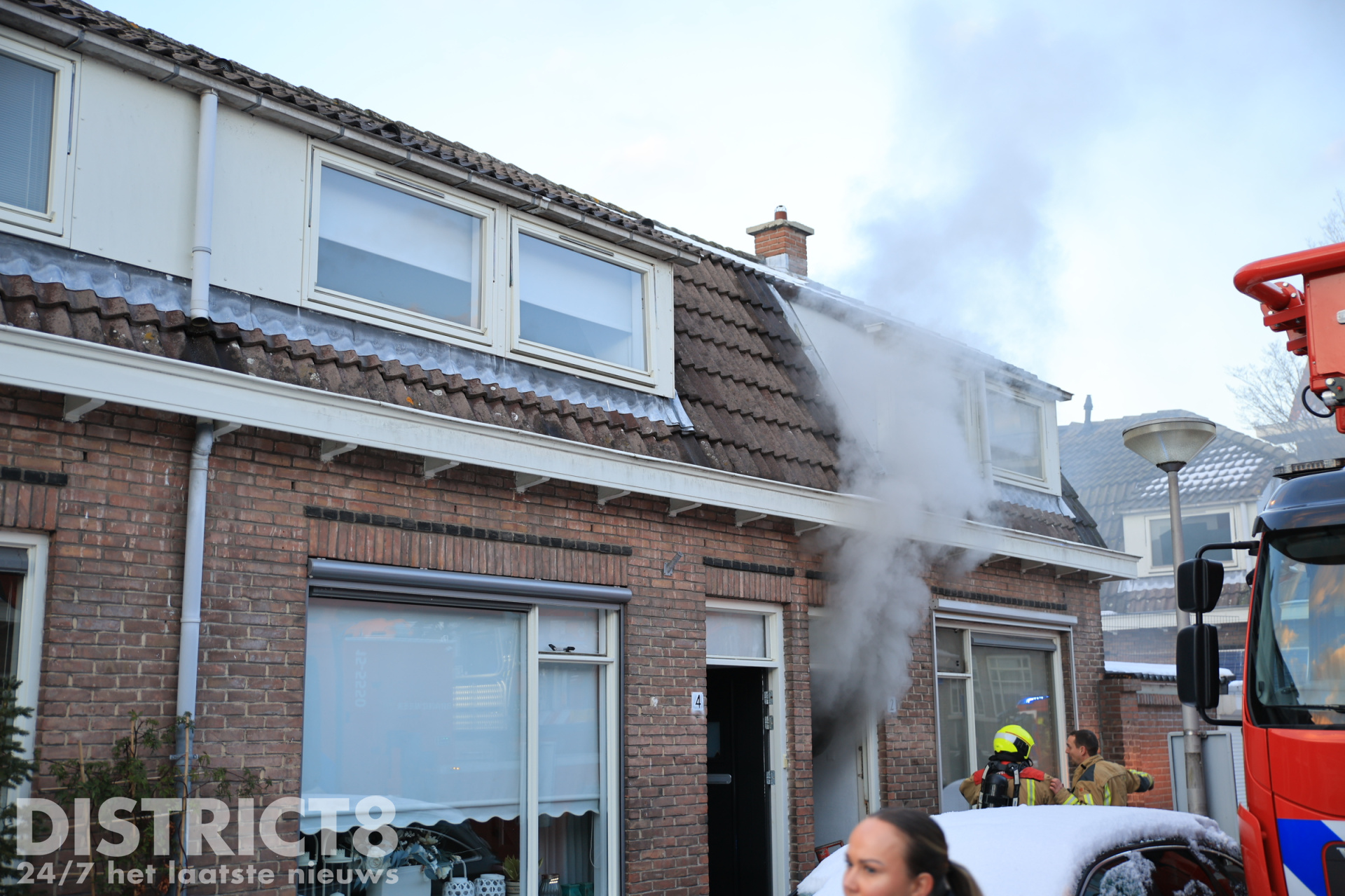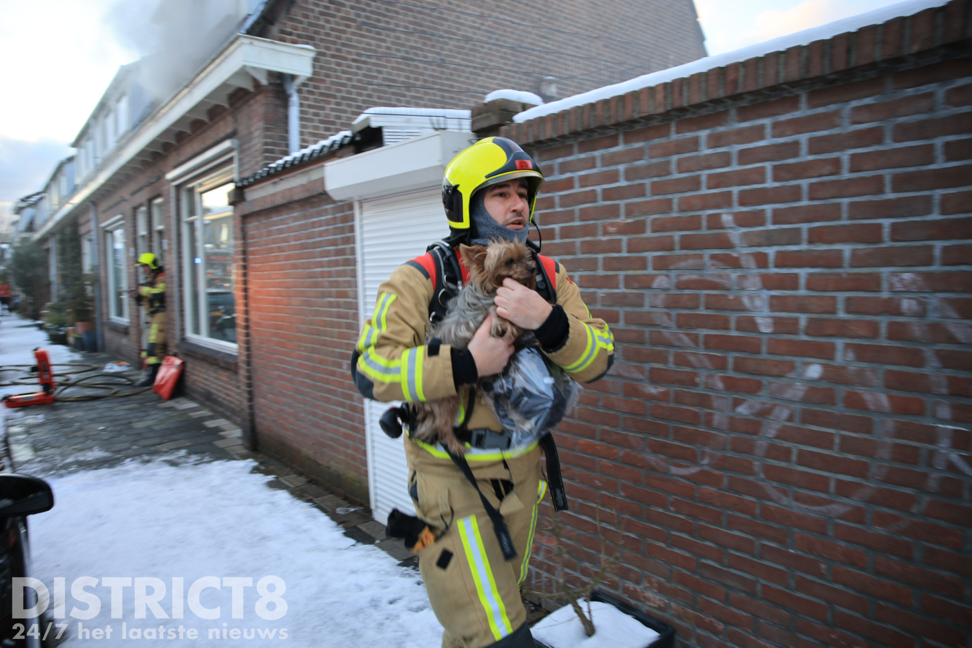De brandweer is met meerdere voertuigen uitgerukt en bezig met het blussen van het vuur. De woning is ontruimd en de omgeving is afgezet. Een hondje is uit de woning gered, deze is door de brandweer opgevangen in de warme brandweerwagen en uiteindelijk overgedragen aan de dierenambulance.