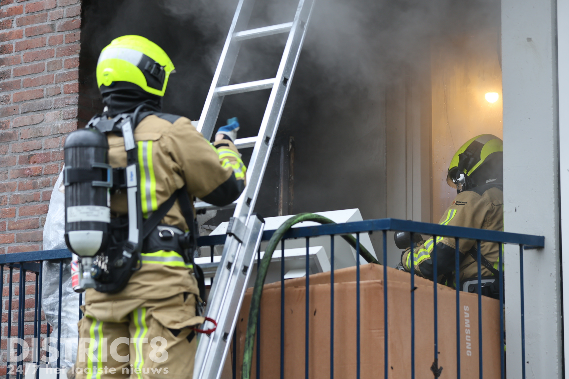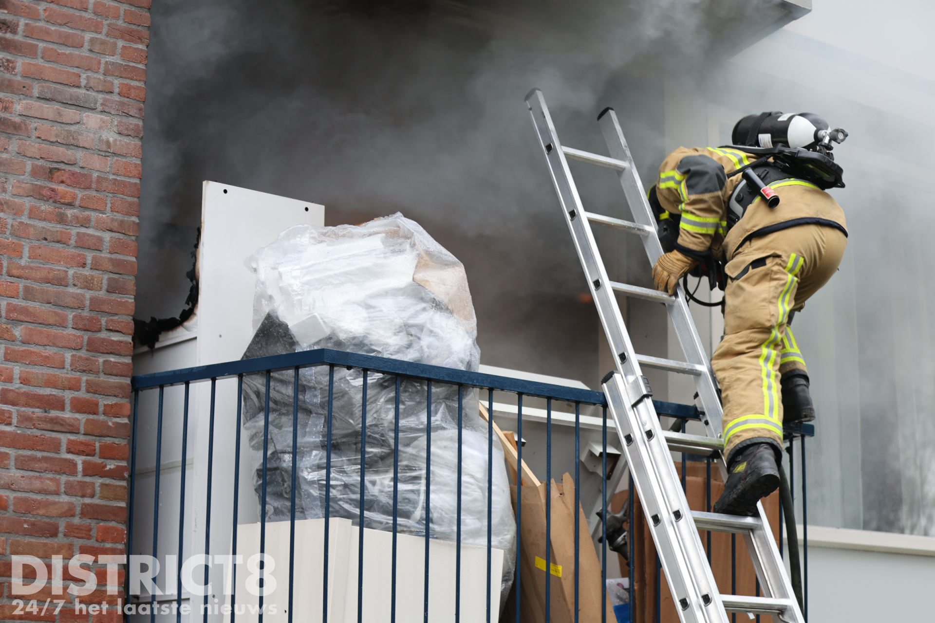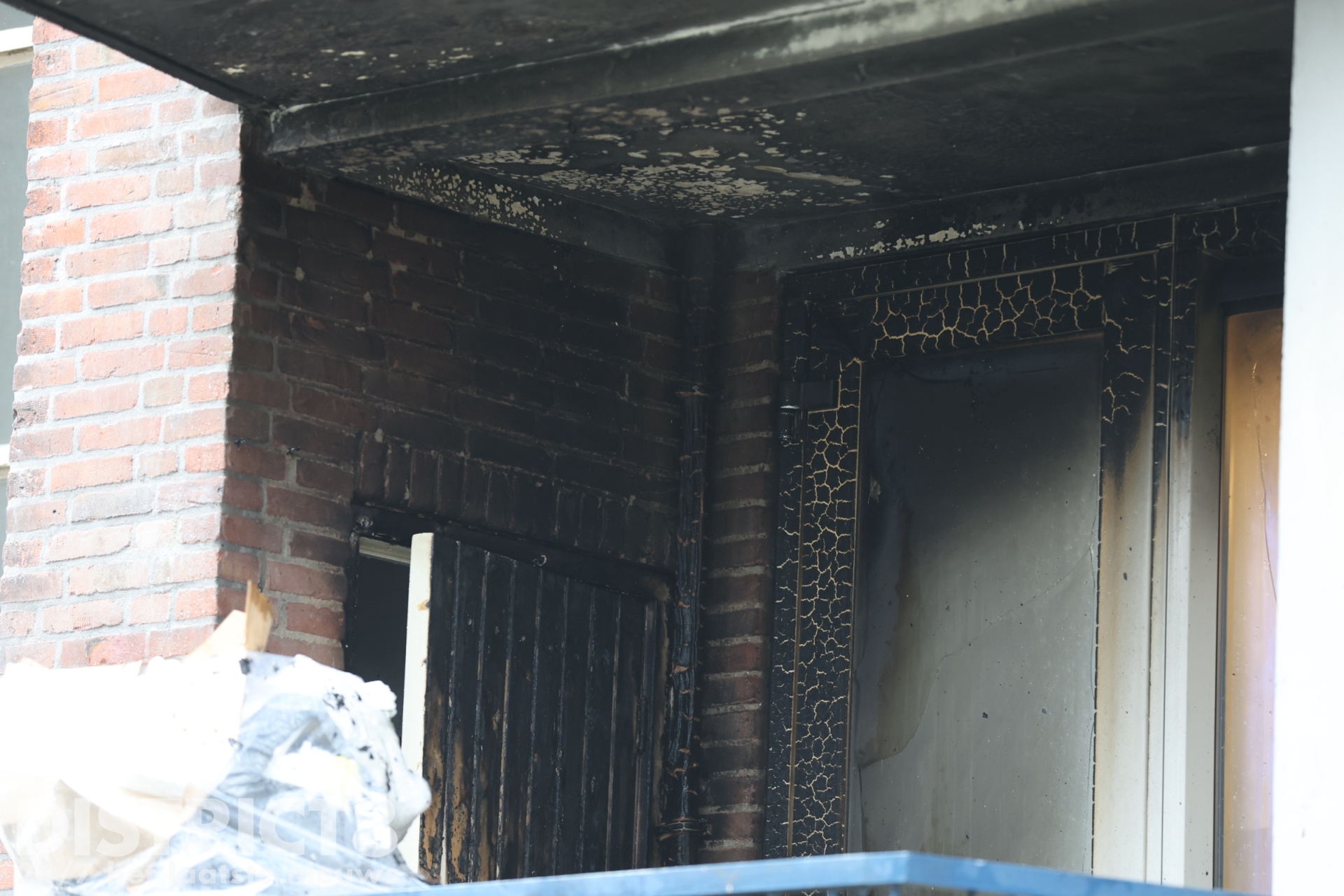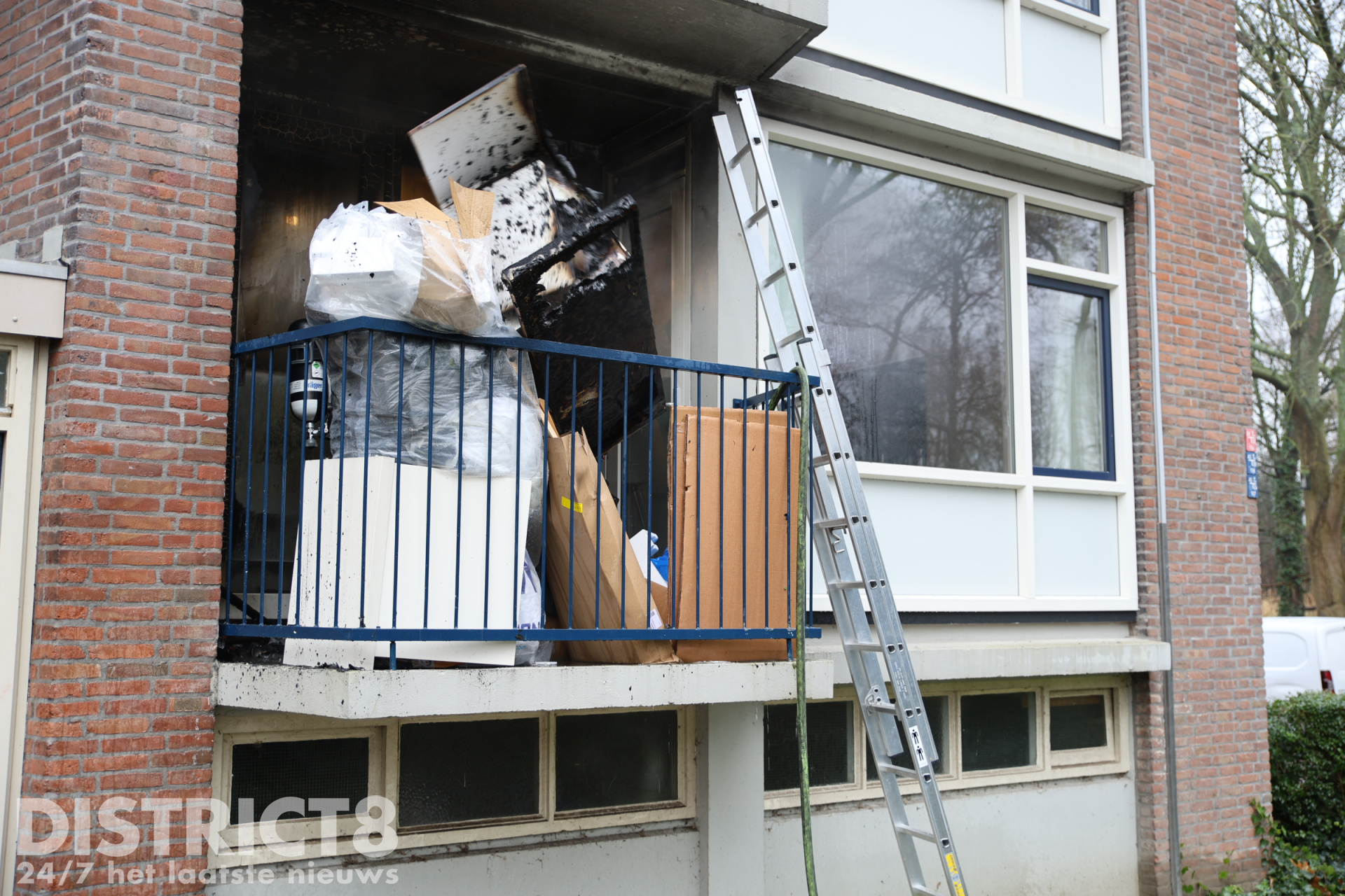 De brandweer is met een ladder het balkon op gegaan om de brand goed te kunnen blussen en het brandende grofvuil naar beneden te gooien. De schade aan het balkon en de woning is groot.