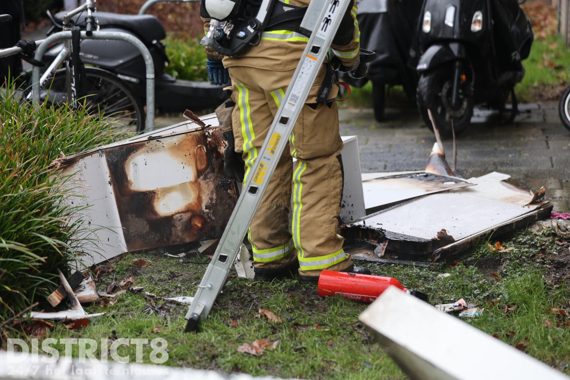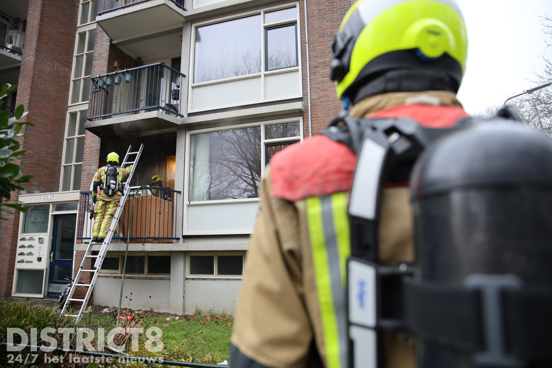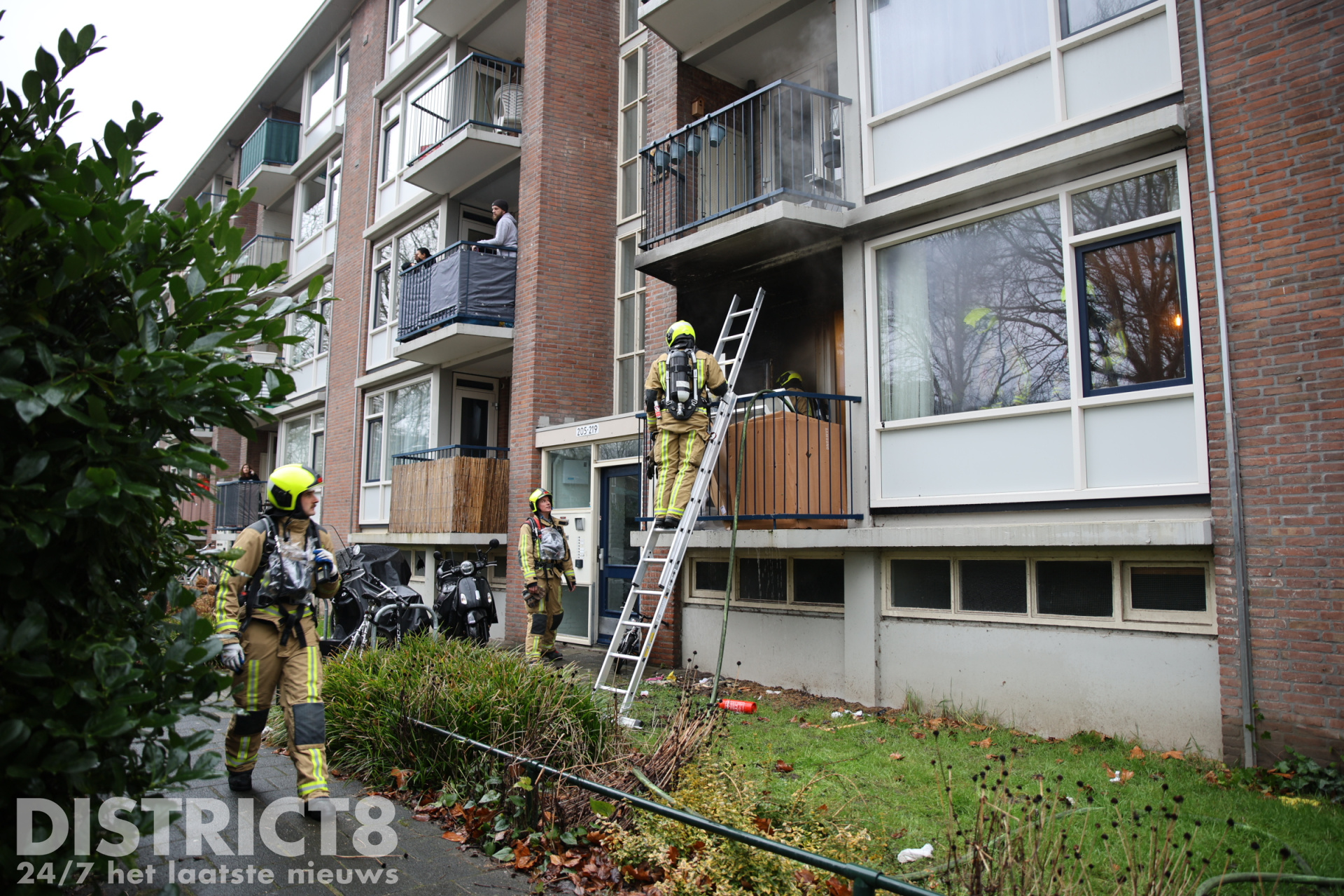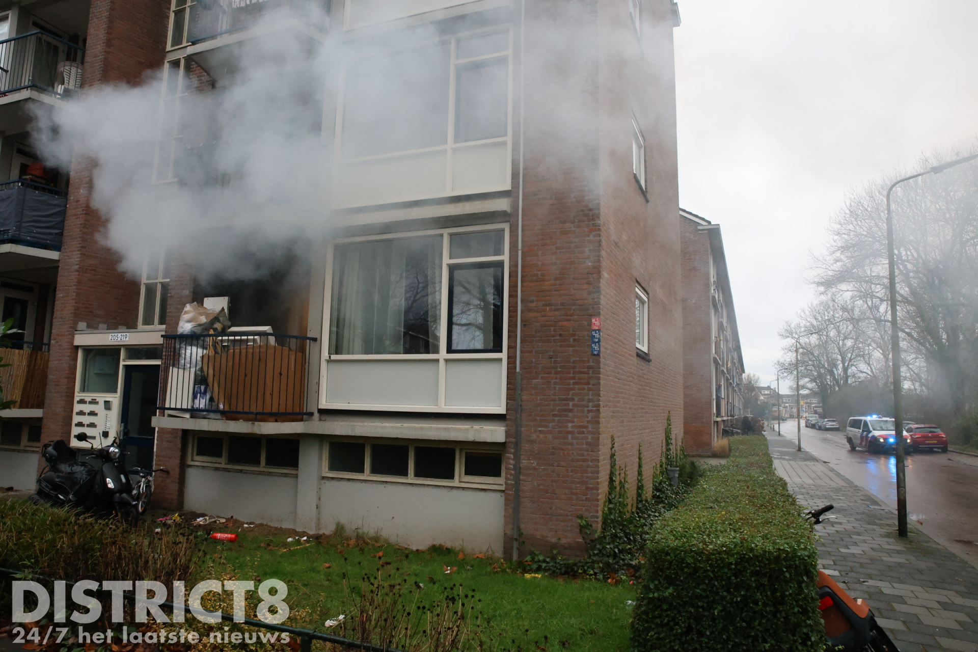 De brandweer is met een ladder het balkon op gegaan om de brand goed te kunnen blussen en het brandende grofvuil naar beneden te gooien. De schade aan het balkon en de woning is groot.