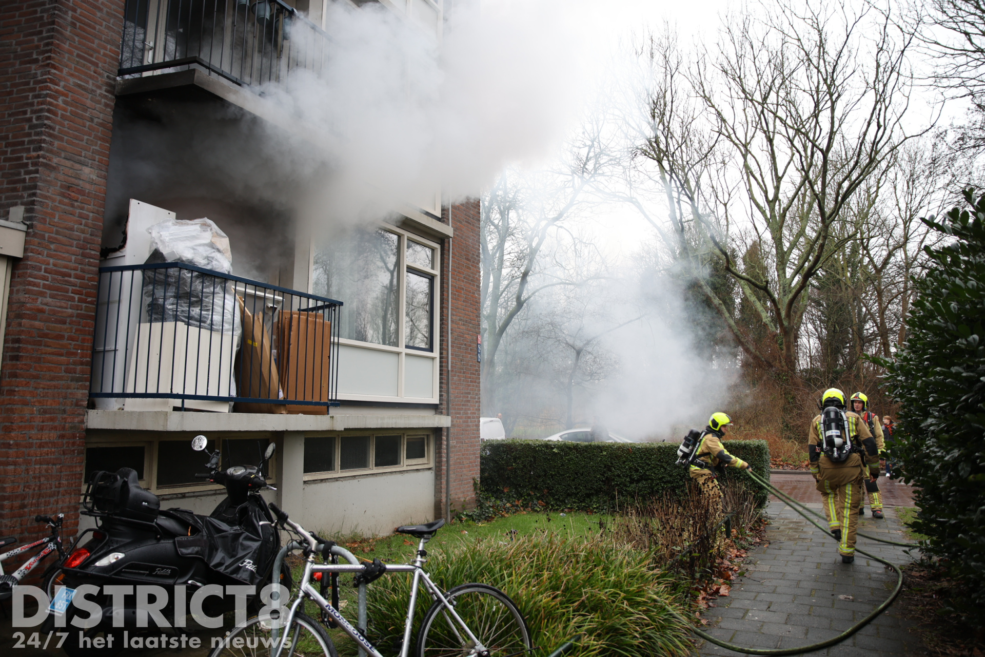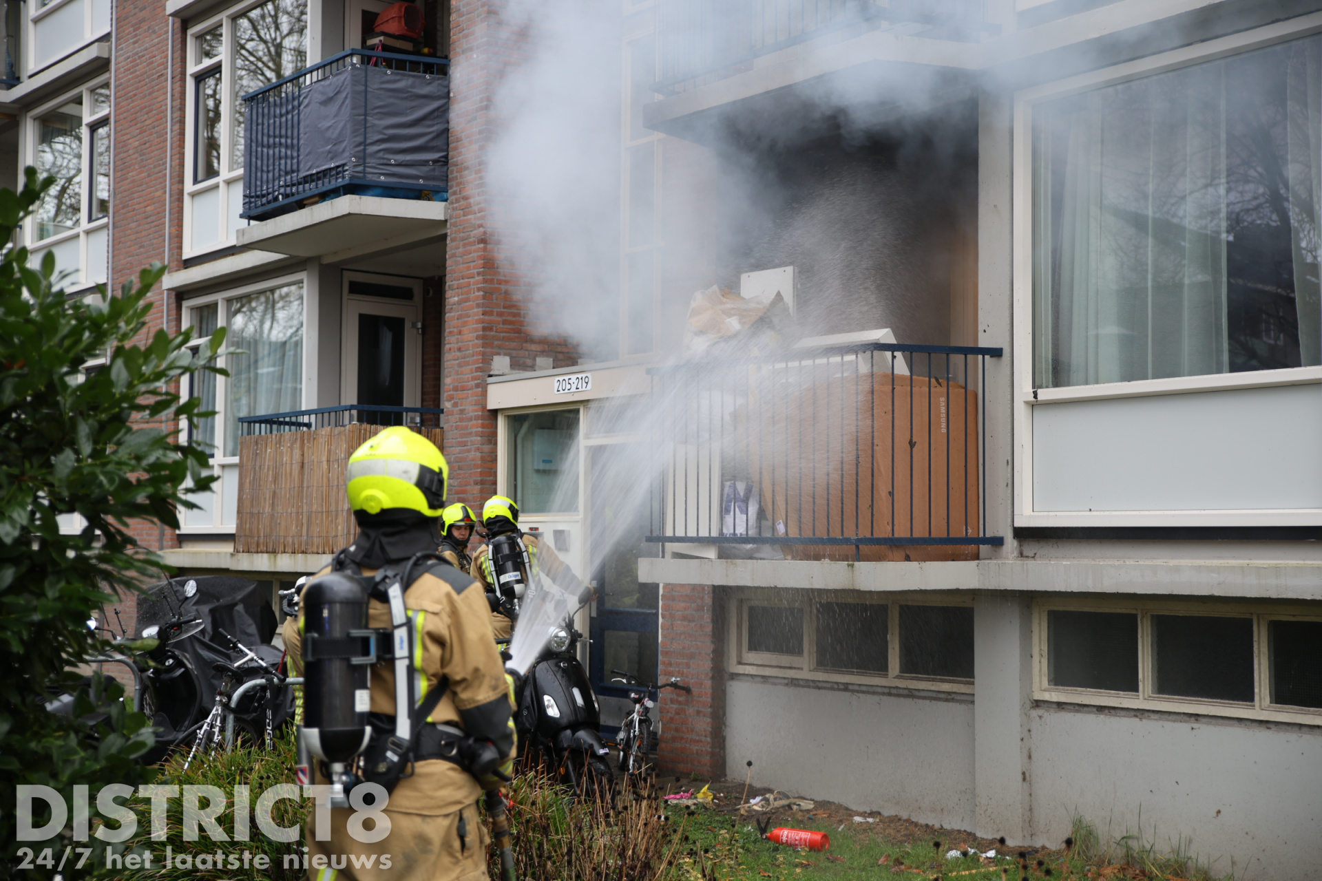 Delft – Op een balkon van een portiekflat aan de Professor Telderslaan in Delft heeft zaterdagochtend 25 januari een korte maar felle brand gewoed.