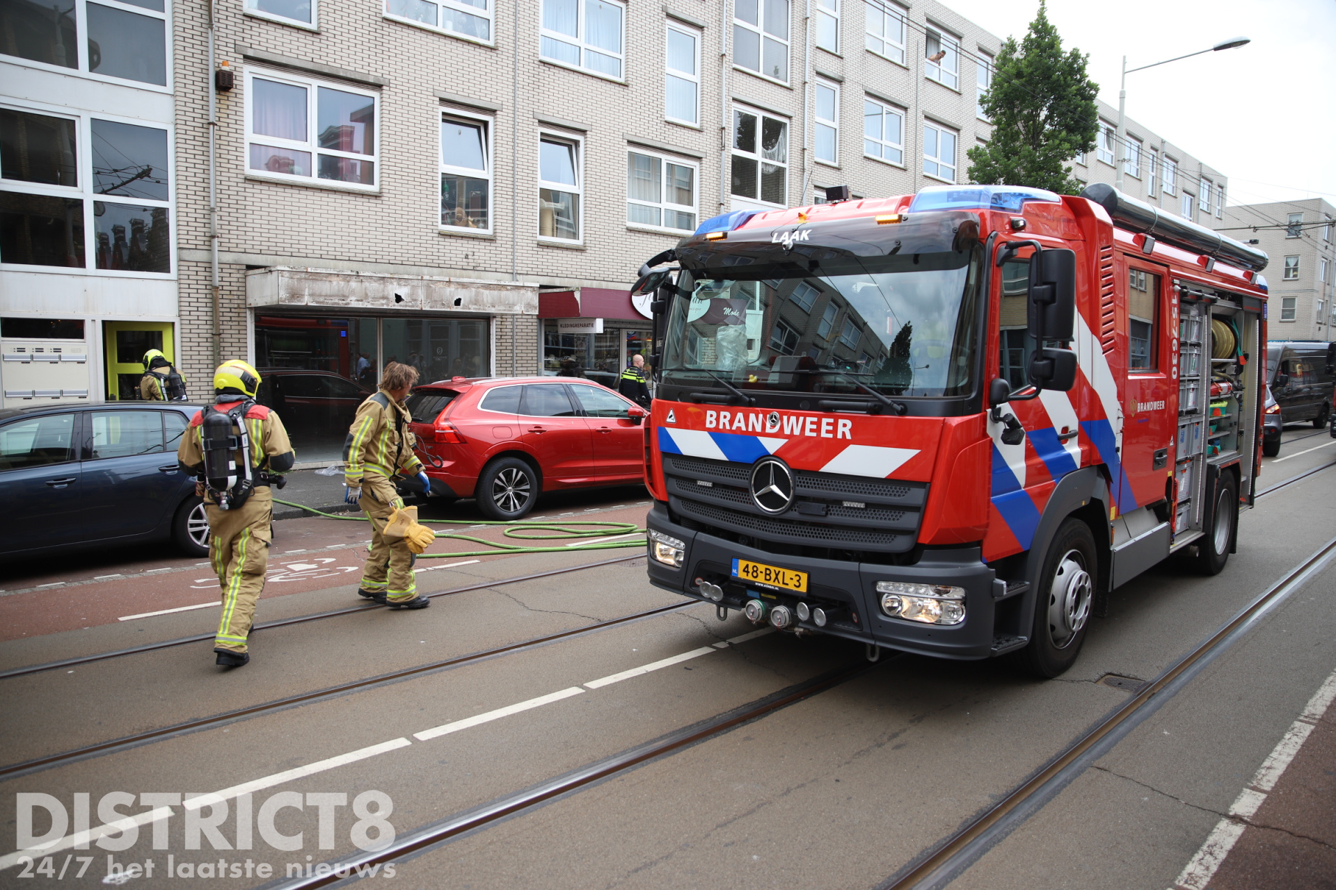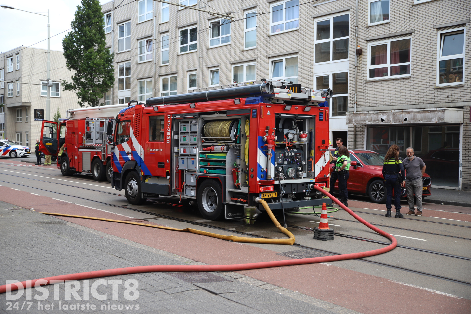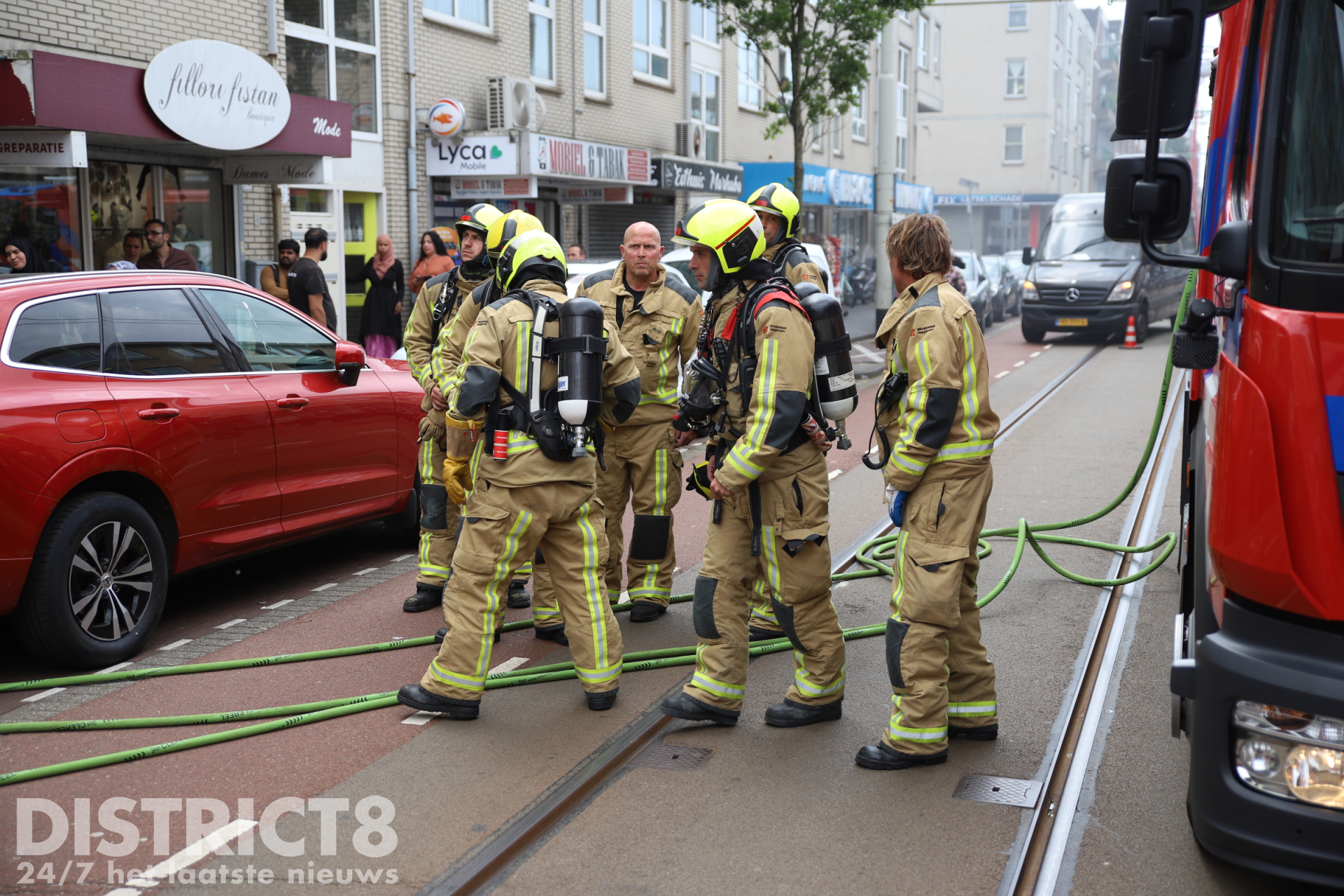 De Hobbemastraat is voorlopig afgesloten voor verkeer. Ook de HTM moest door de afsluiting omrijden, wat voor vertragingen op de lijn zorgde.