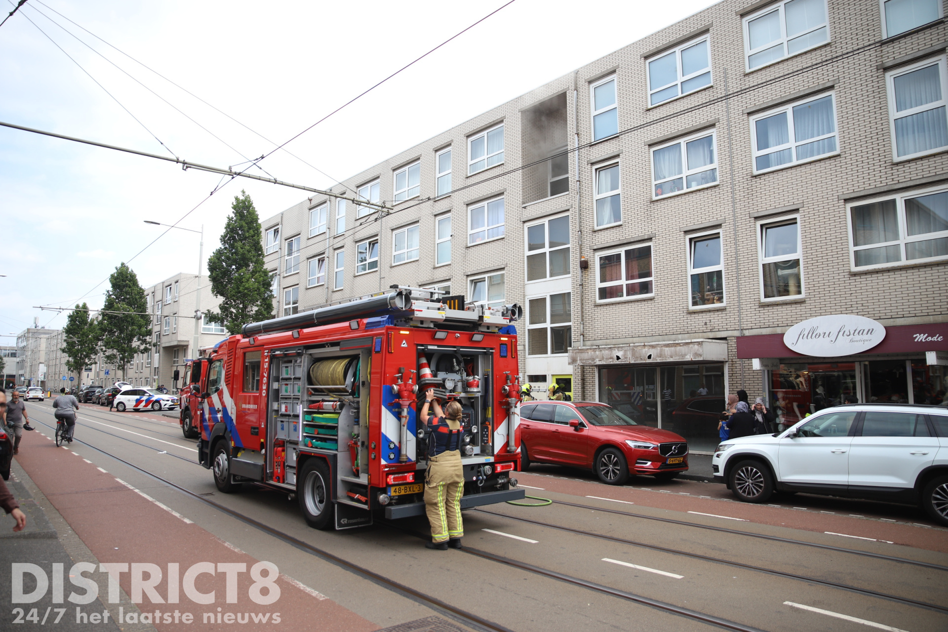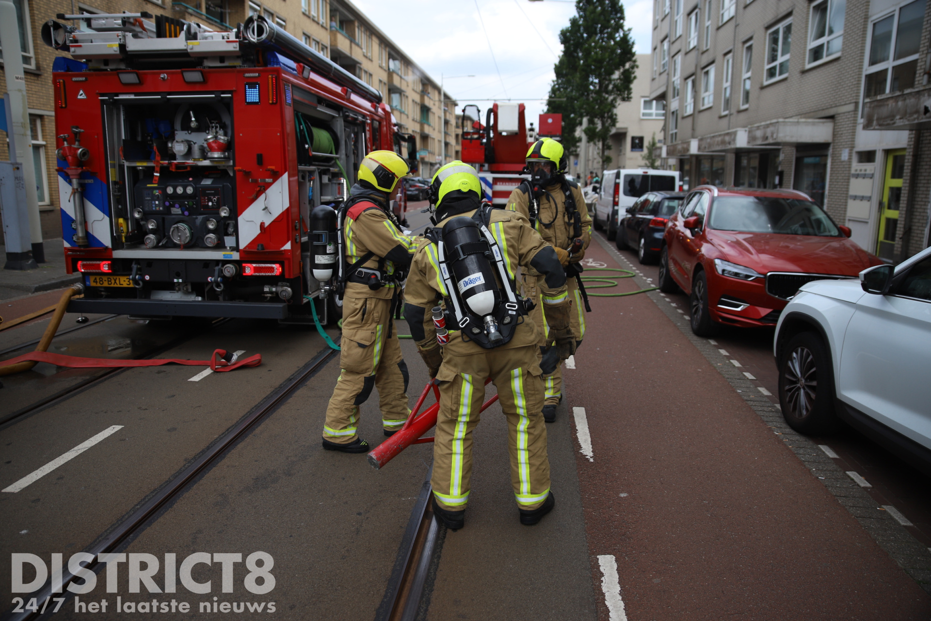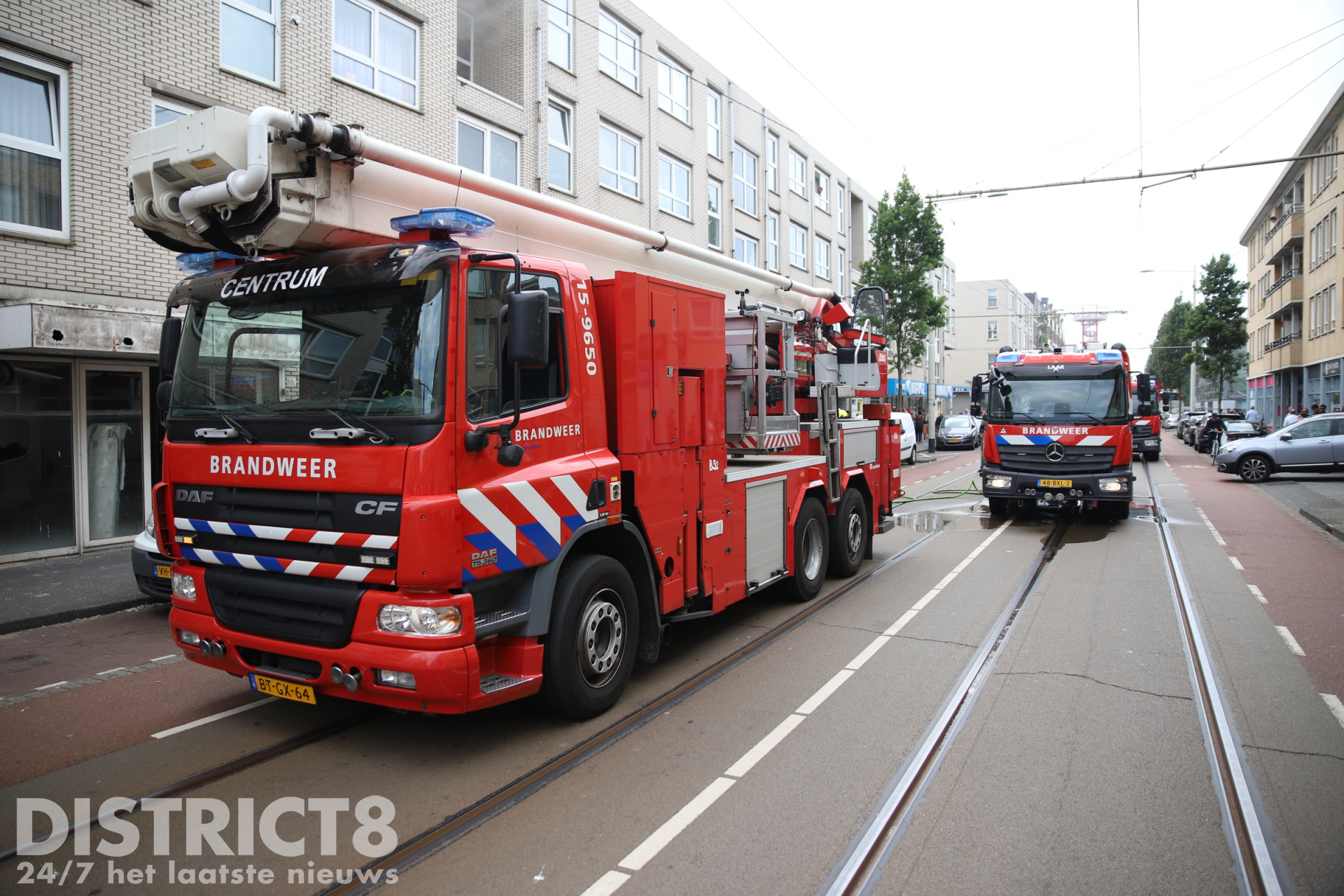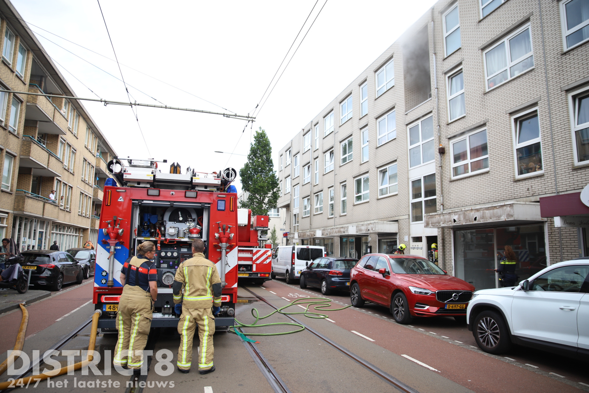 De Hobbemastraat is voorlopig afgesloten voor verkeer. Ook de HTM moest door de afsluiting omrijden, wat voor vertragingen op de lijn zorgde.