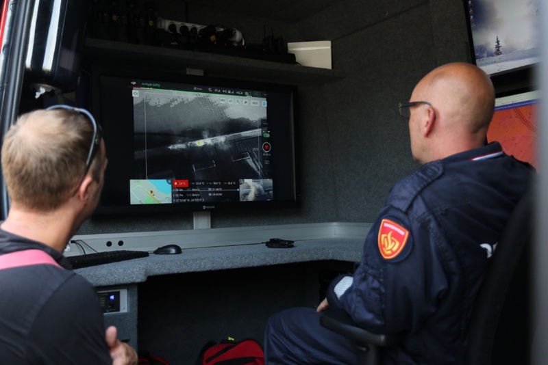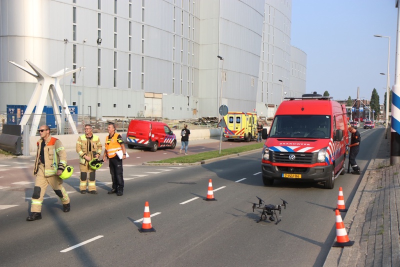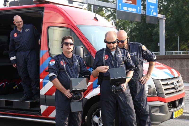 Door de rookontwikkeling is de Maastunnel in beide richtingen afgesloten. Ook het drone team van de gezamenlijke brandweer is ter plaatse om beelden van bovenaf te maken.