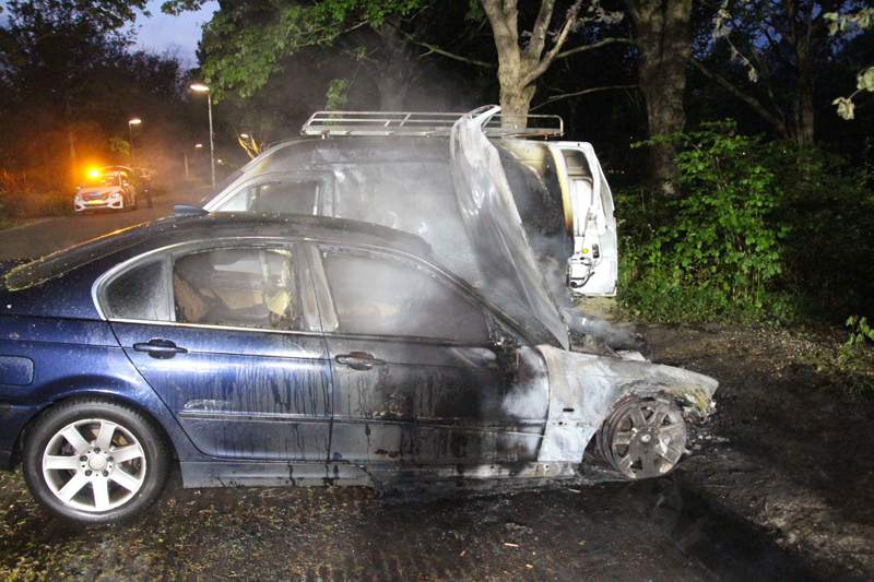 Een busje wat naast het brandende voertuig stond heeft ook schade opgelopen door de brand. Gisteren stond er ook al een voertuig in de brand op deze locatie, de politie stelt een onderzoek in naar de brand.