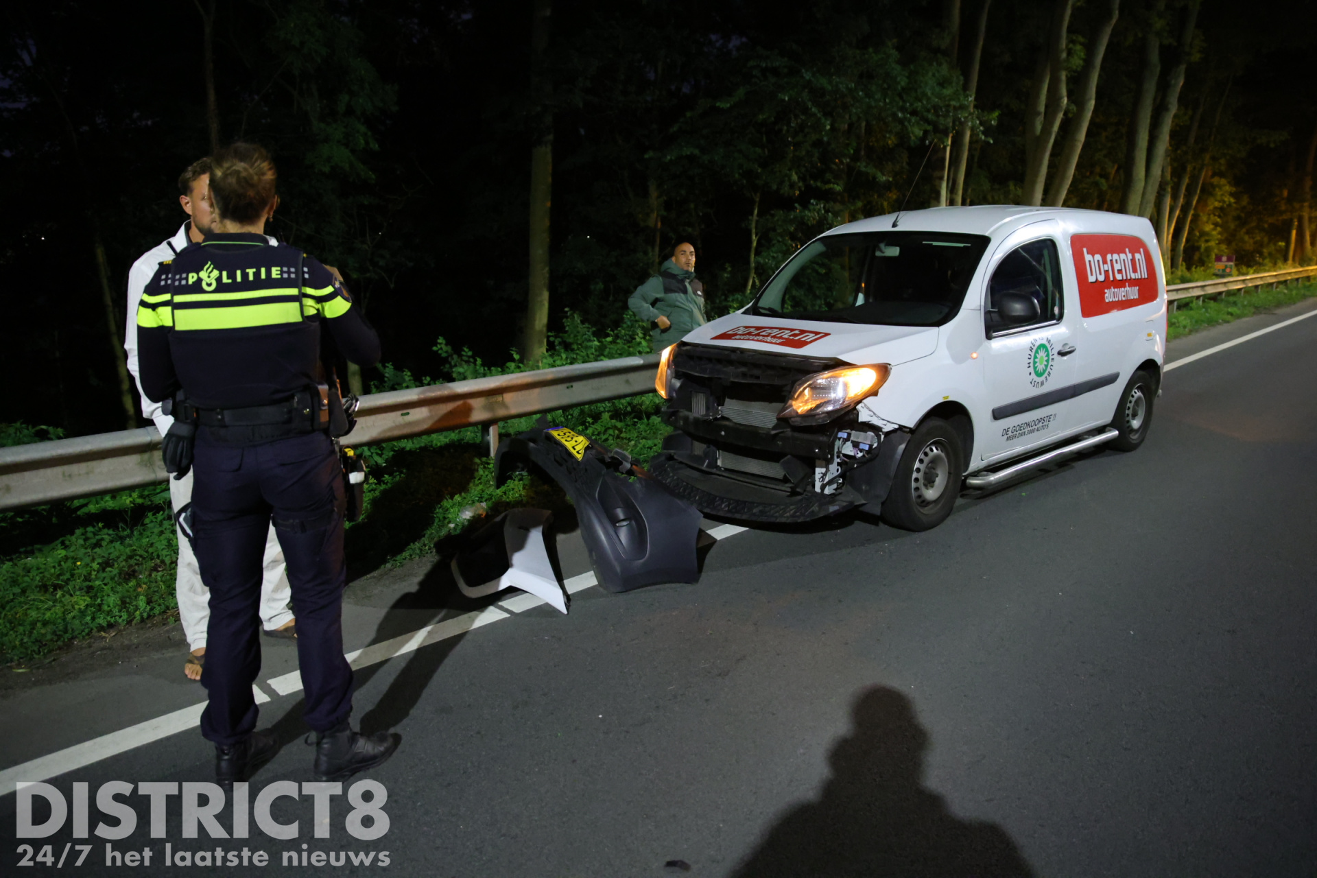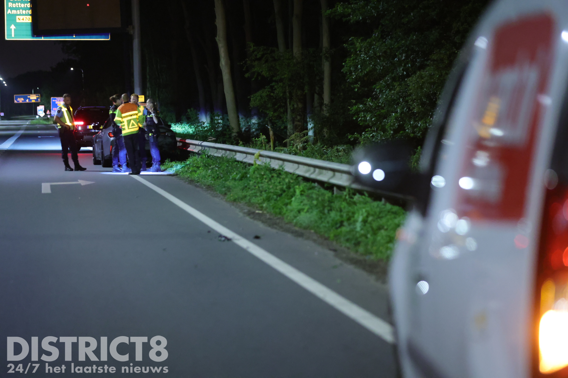 Delft – Op de N470/Kruithuisweg in Delft heeft in de nacht van zaterdag 12 op zondag 13 juli een ongeval plaatsgevonden tussen twee voertuigen.