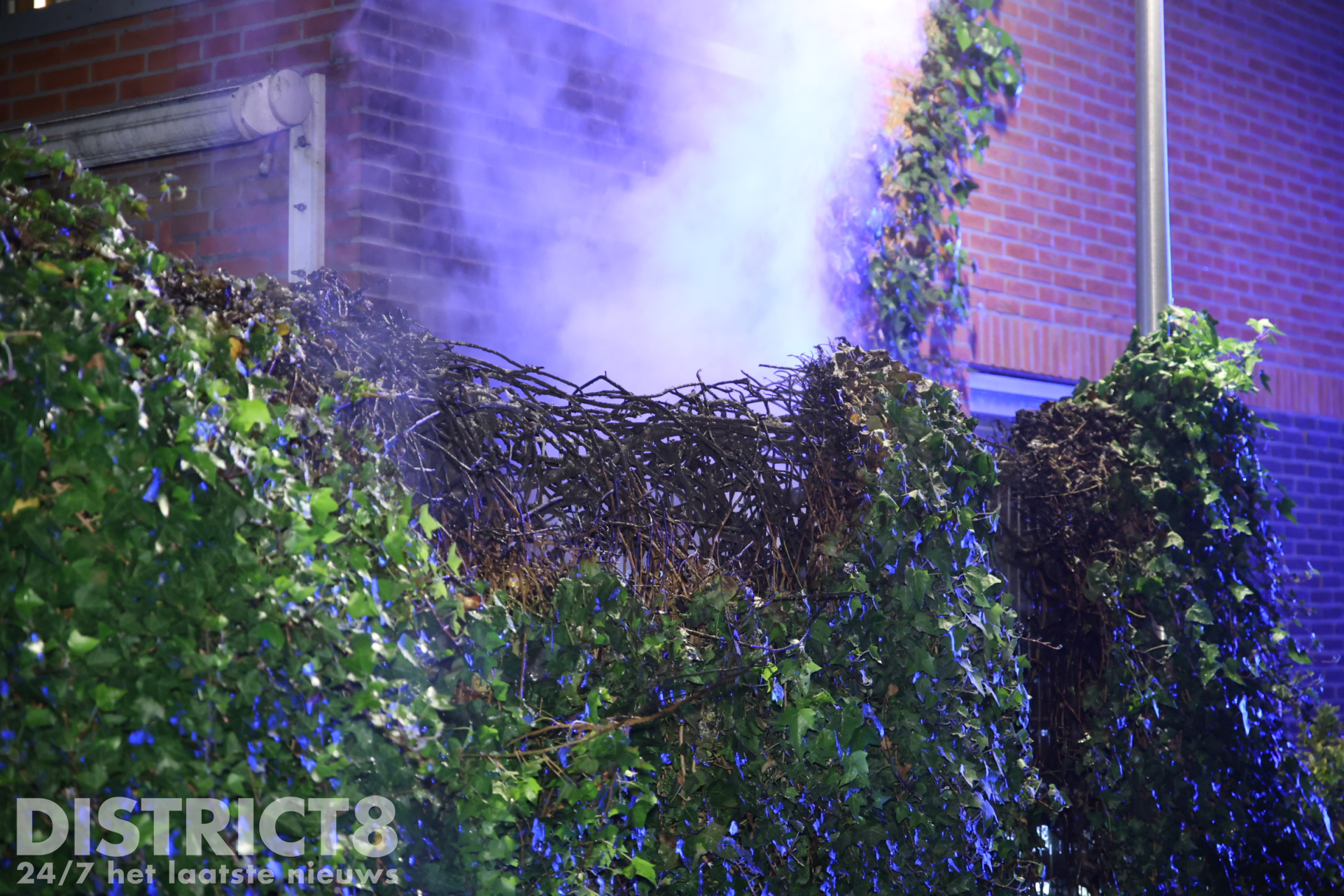 Bij aankomst begon de brandweer direct met het volledig blussen van de brand. Hiervoor was veel water nodig. Omdat er lange tijd rook uit de muur bleef komen, werd even gevreesd dat het vuur in de spouwmuur was doorgedrongen. Na ongeveer twee uur werden er geen nieuwe hotspots meer aangetroffen, waarna de brandweer is vertrokken.