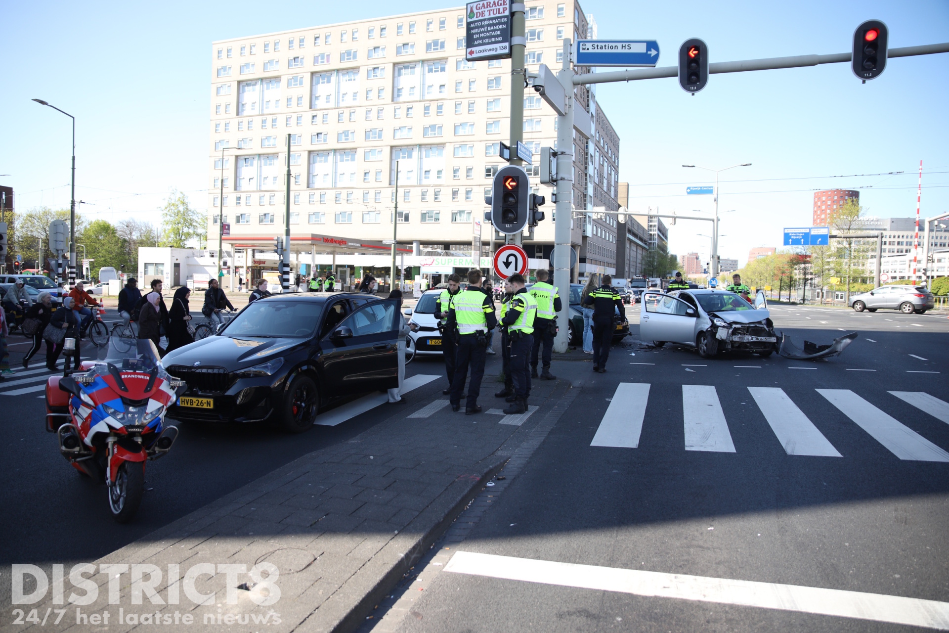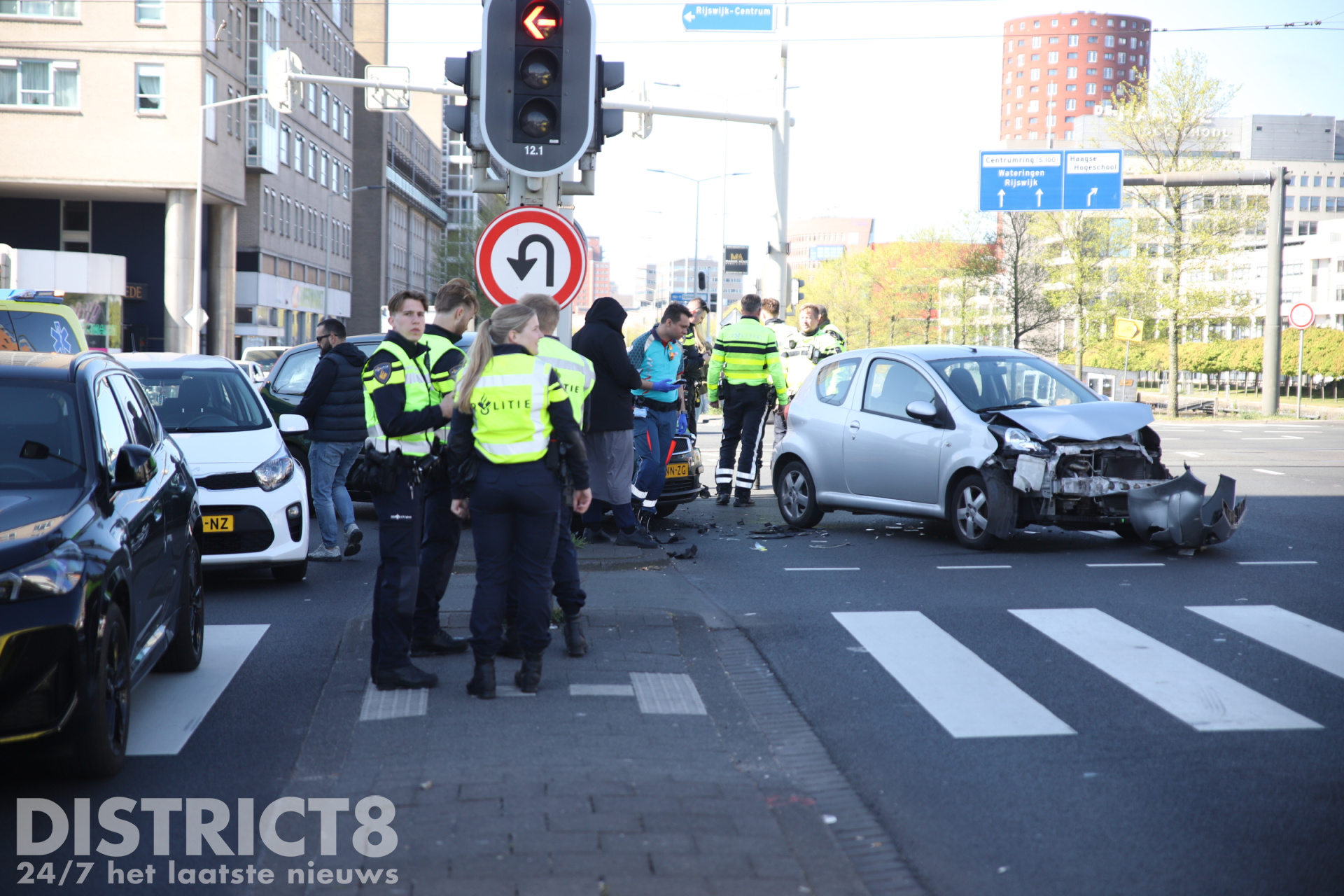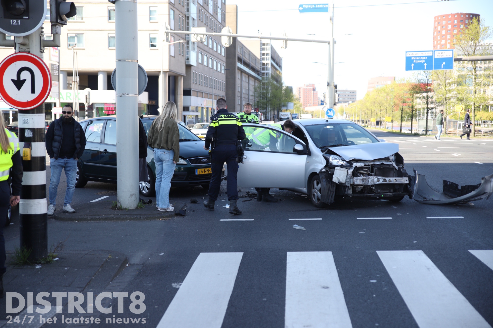 Den Haag ā Op de kruising van de Neherkade met de Rijswijkseweg in Den Haag heeft vrijdagochtend 24 april een ongeval plaatsgevonden tussen twee voertuigen. Beide voertuigen raakten flink beschadigd door de aanrijding.