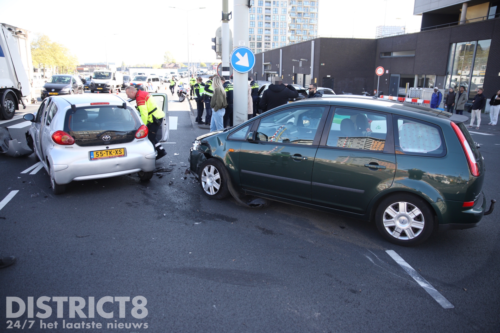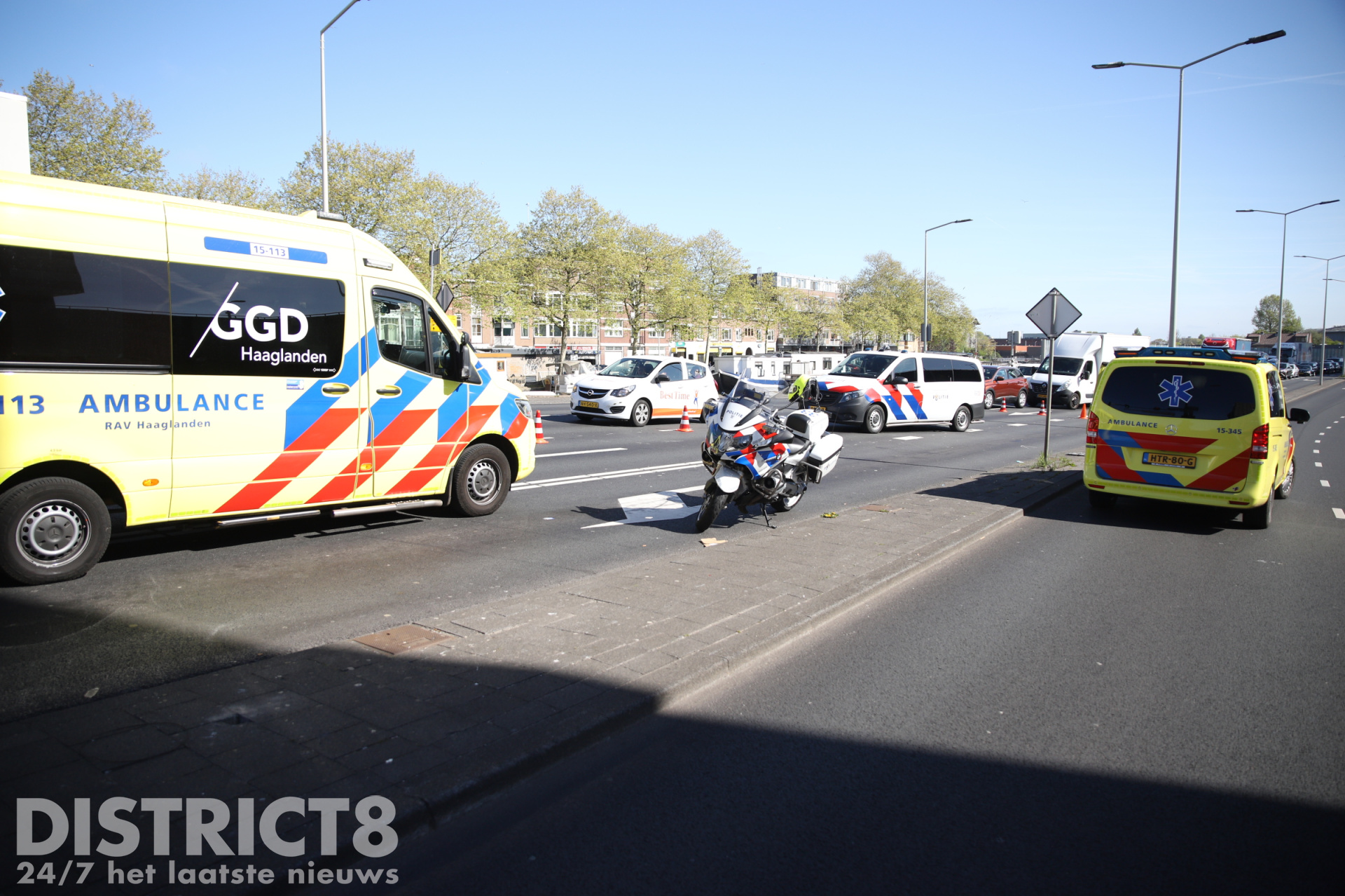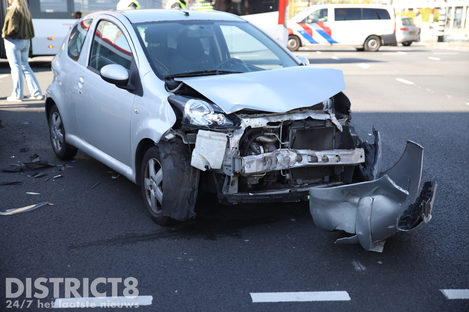Den Haag ā Op de kruising van de Neherkade met de Rijswijkseweg in Den Haag heeft vrijdagochtend 24 april een ongeval plaatsgevonden tussen twee voertuigen. Beide voertuigen raakten flink beschadigd door de aanrijding.