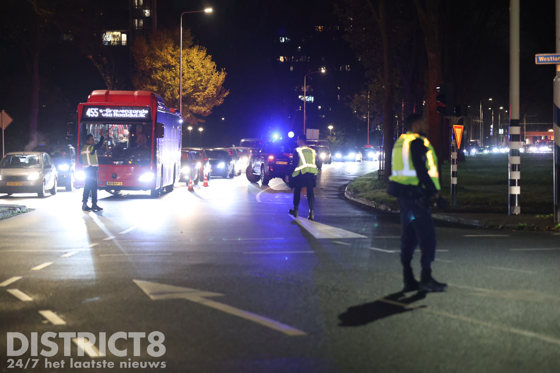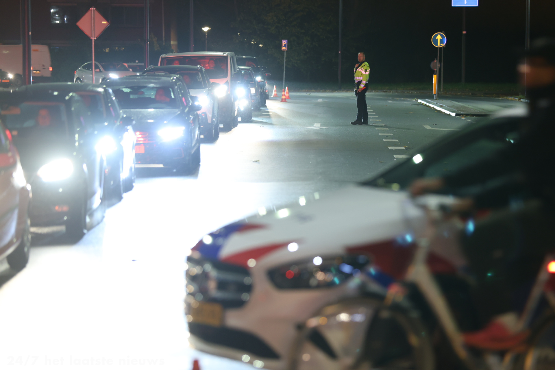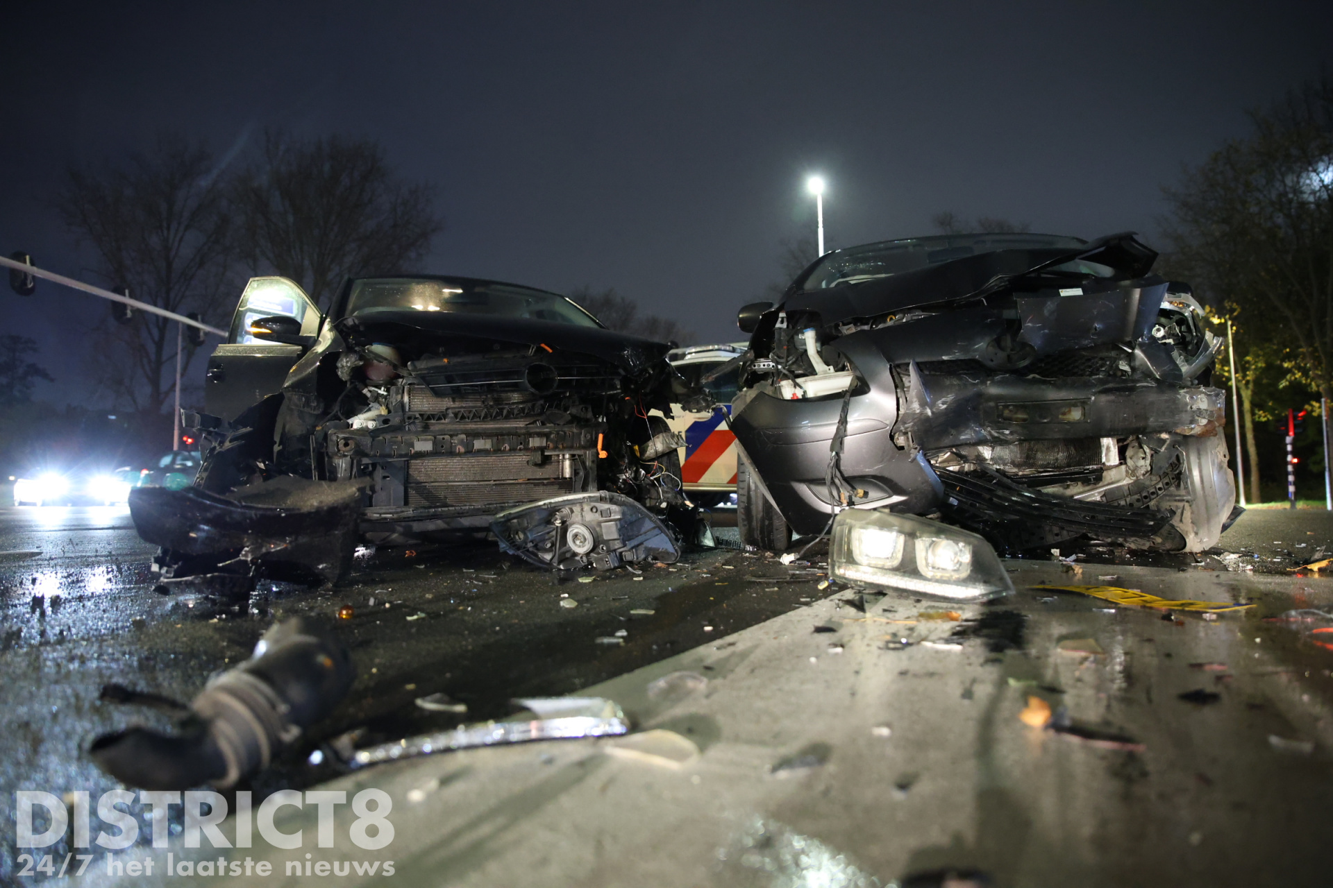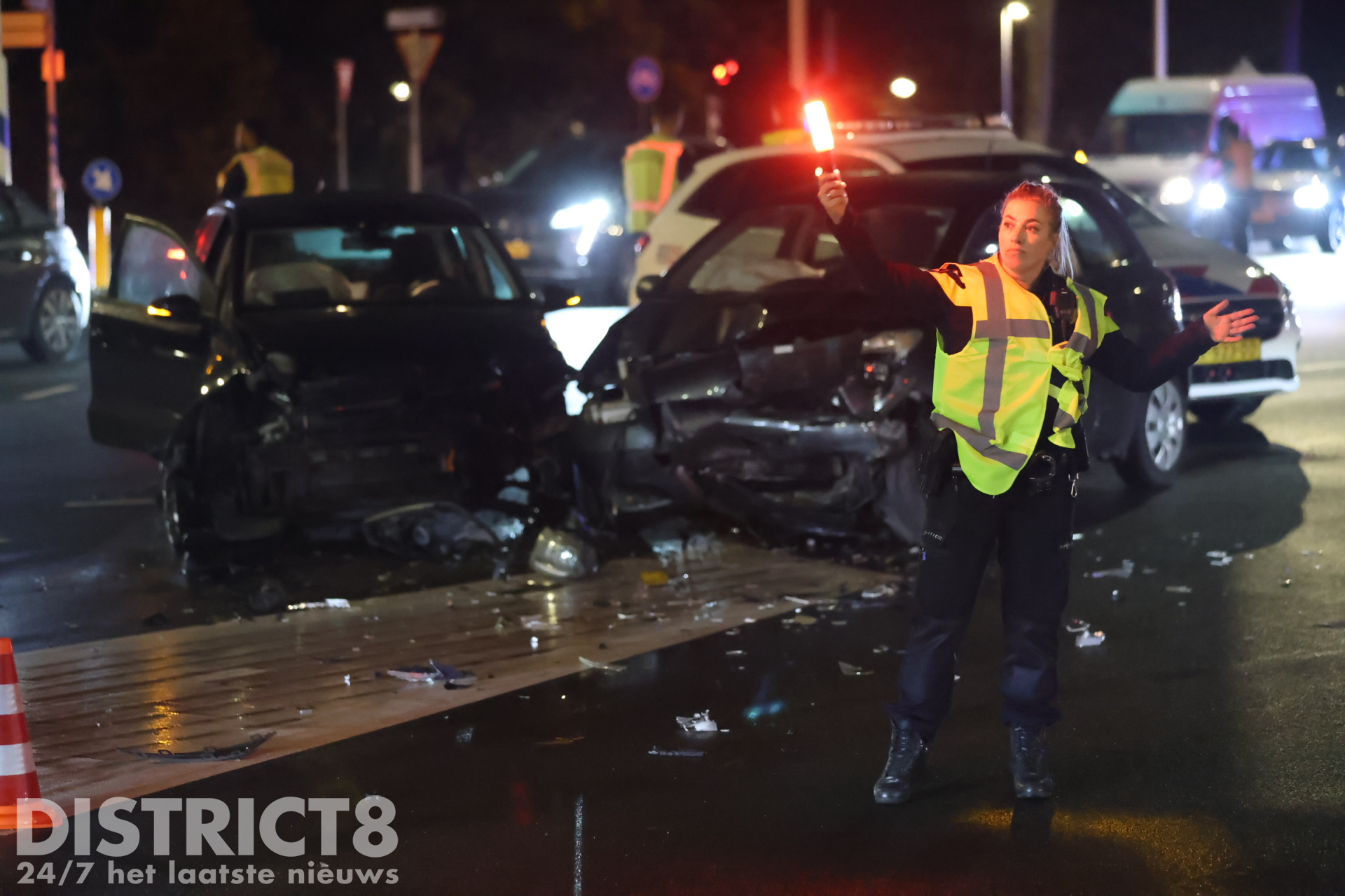 De politie heeft samen met de Koninklijke Marechaussee een groot gedeelte van de kruising afgesloten, dit zorgt voor veel verkeershinder voor wegverkeer en het openbaar vervoer. Een berger moet ter plaatse komen om beide wagens af te slepen.