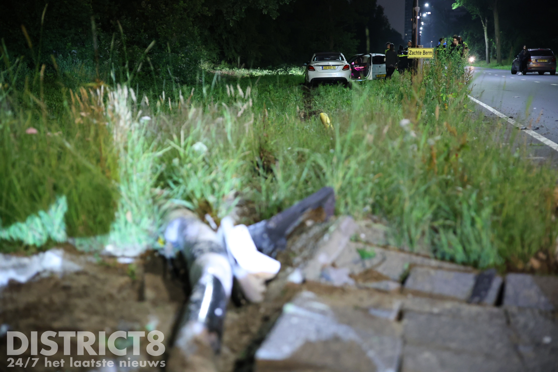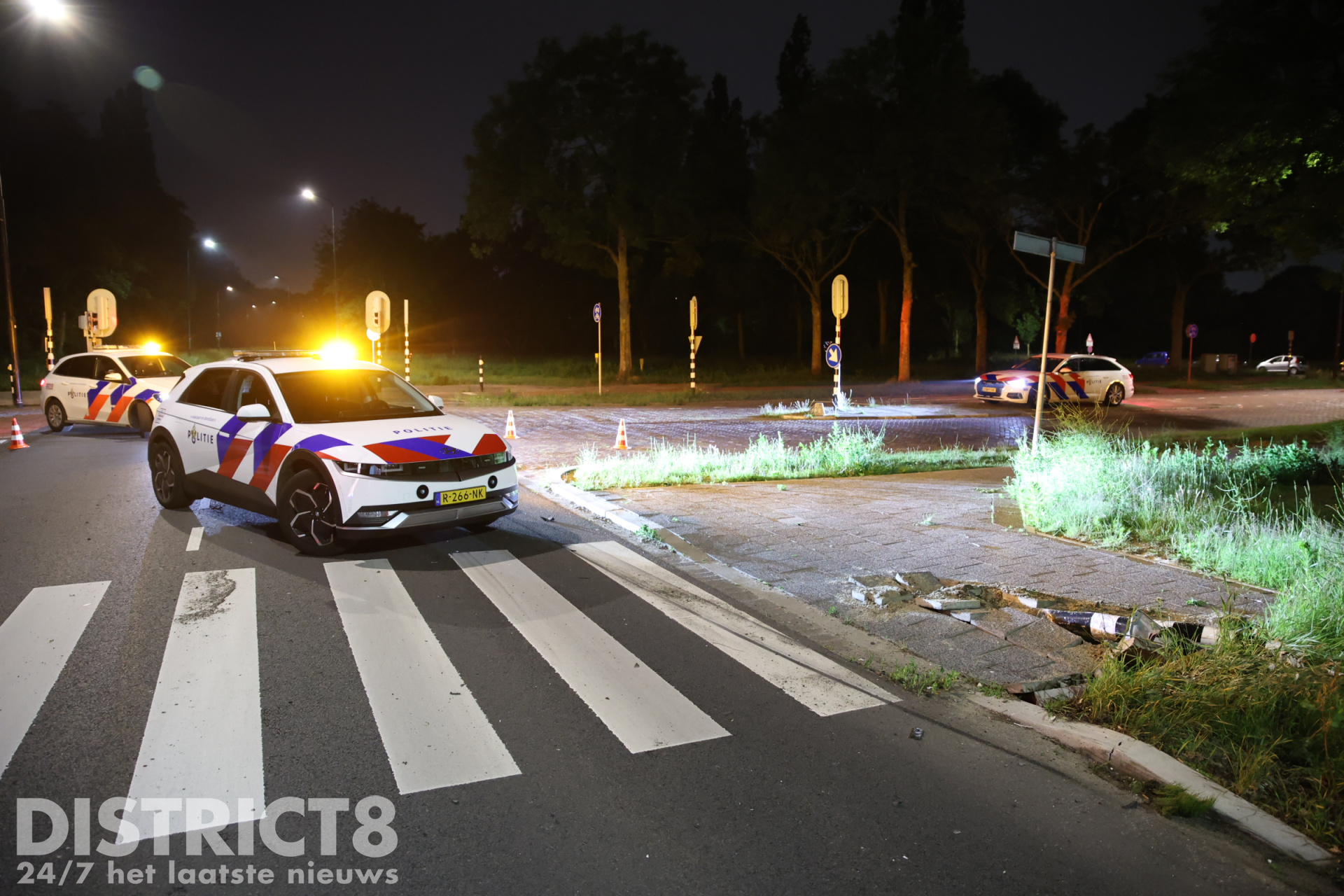 Door de aanrijding raakte de voertuigen van de weg en ramde een paal van de verkeersinstallatie omver. Na de aanrijding werden de hulpdiensten met spoed gealarmeerd.