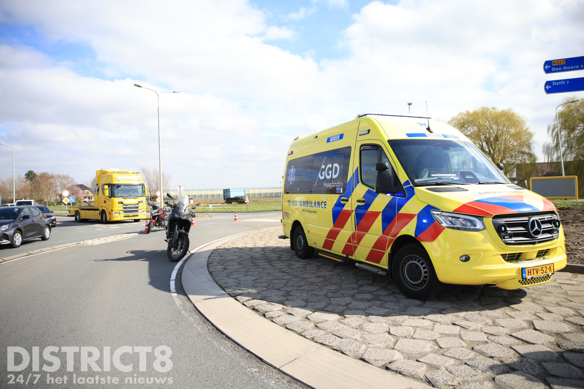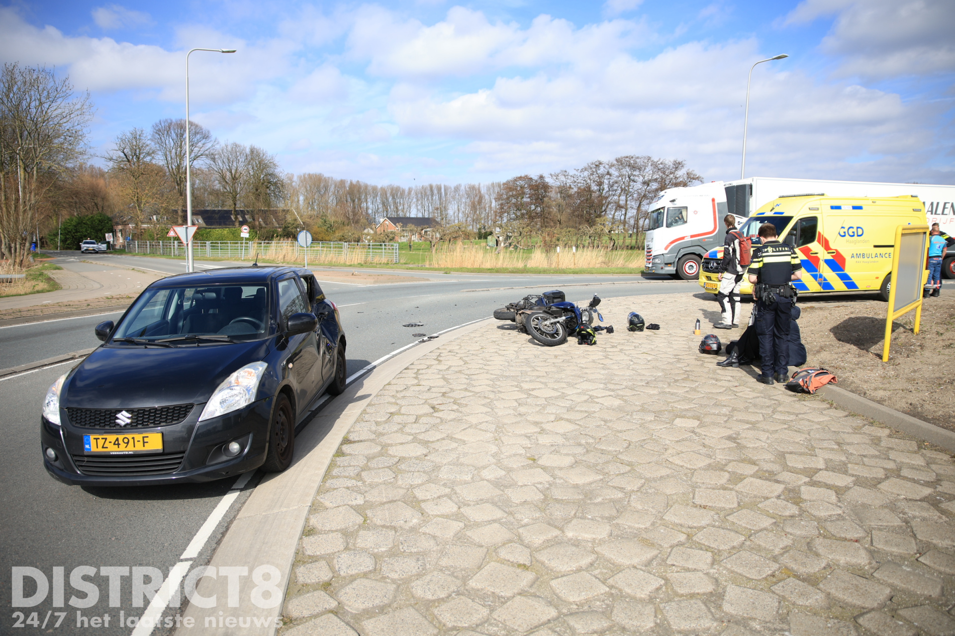 De hulpdiensten werden met spoed gealarmeerd. De motorrijder is in de ambulance nagekeken, maar hoefde niet vervoerd te worden.