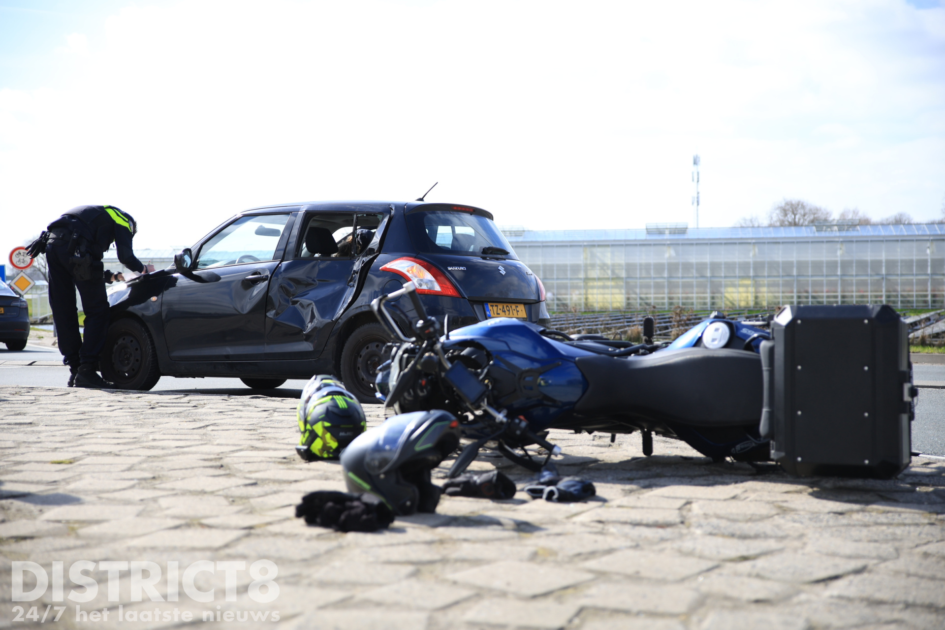Home Delft Veel schade na aanrijding tussen auto en motor N223 Woudseweg Schipluiden