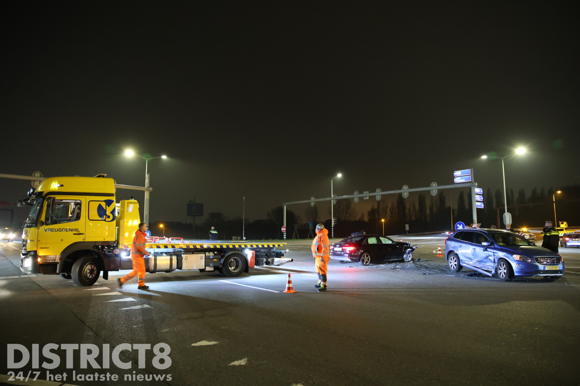 De politie sloot samen met Rijkswaterstaat een gedeelte van de kruising af, sommige automobilisten moesten hierdoor een andere route naar hun eindbestemming zoeken. De verkeerspolitie is korte tijd ter plaatse geweest om onderzoek te doen. Een berger heeft beide voertuigen, die veel schade opliepen, afgevoerd. Volgens getuigen is één van de betrokken partijen door het rode verkeerslicht gereden.