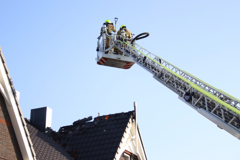 onbekende oorzaak is brand uitgebroken op de het dak van een woning. Het gaat om een woning met geïntegreerde zonnepanelen. Op dit moment is het nog niet bekend of de zonnepanelen ook de brandoorzaak is. Er is veel schade aan de woning.