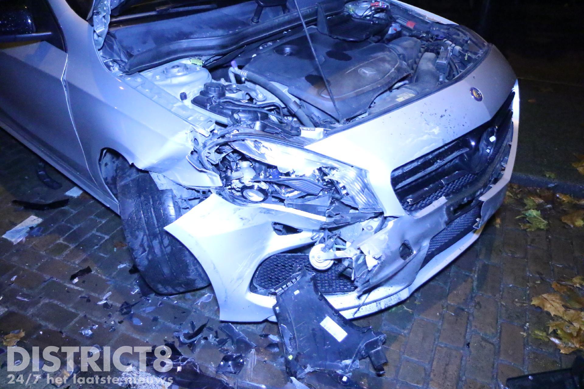 De grijze Mercedes wilde het parkeervak verlaten. Beide partijen zagen dit te laat en kwamen met elkaar in botsing. Beide voertuigen liepen aan de rechtervoorzijde aanzienlijke schade op.