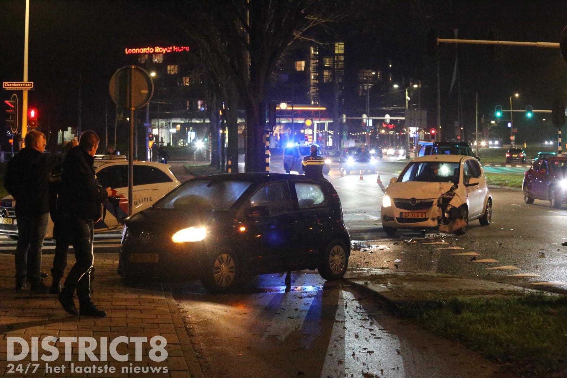 Bij de aanrijding klapte twee voertuigen frontaal op elkaar, er is dus ook sprake van flinke schade aan beide voertuigen. Eén van de voertuigen belande zelfs op het fietspad, een stukje verderop. Door de aanrijding was er sprake van extra verkeersdrukte, ook waren tijdelijk twee voorsorteer banen afgesloten geweest vanaf de Eisenhowerlaan in de richting van de Johan de Wittlaan.
