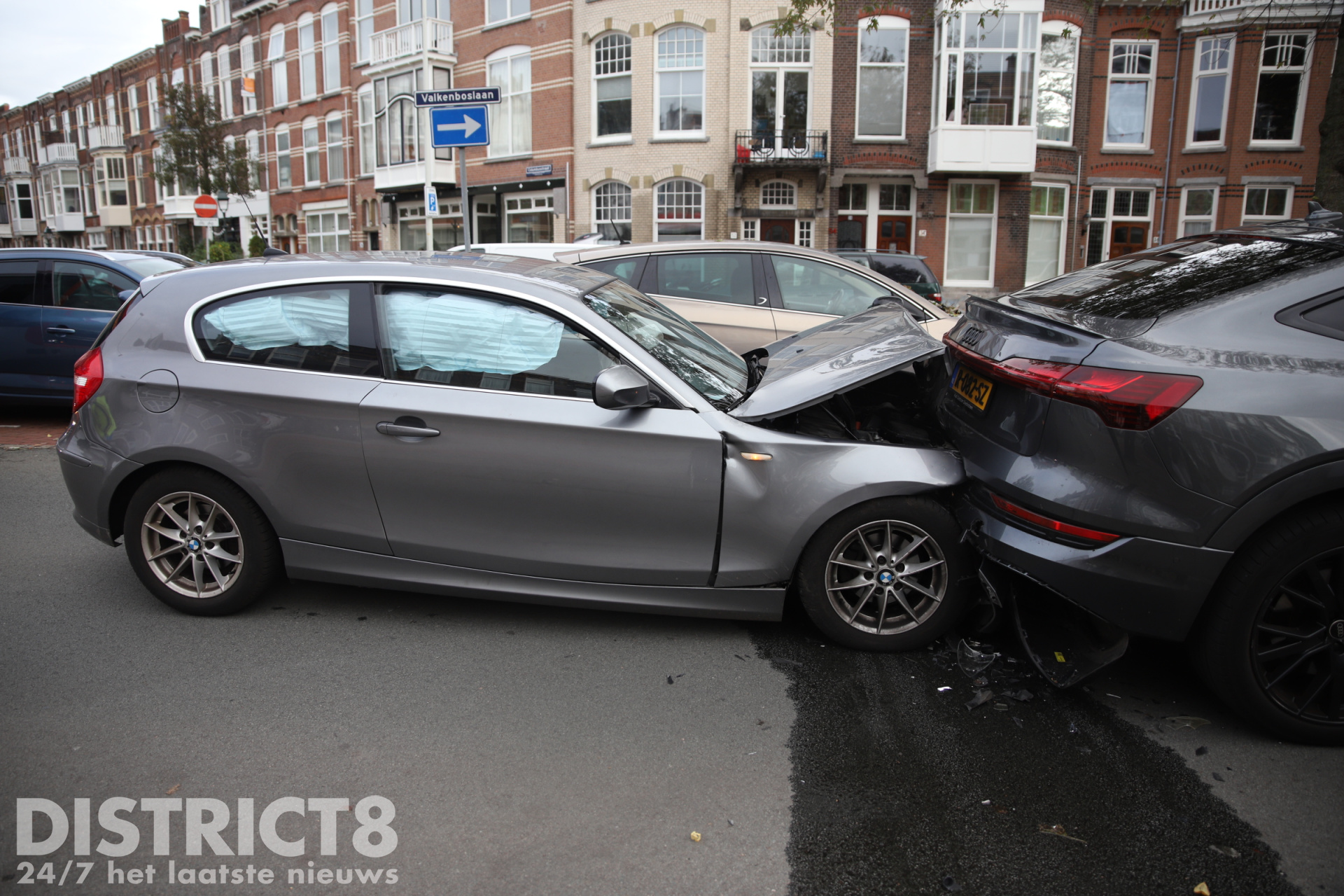 Den Haag – Donderdagmiddag 16 oktober heeft er op de Valkenboslaan in Den Haag een kop-staart aanrijding plaatsgevonden tussen twee personenauto’s. Omstreeks 15:30 ging het mis ter hoogte van de Columbusstraat. Een automobilist klapte daar volgens getuigen met hoge snelheid achterop zijn voorganger die was gestopt voor een auto die wilde inparkeren, door de aanrijding ontstond veel schade.