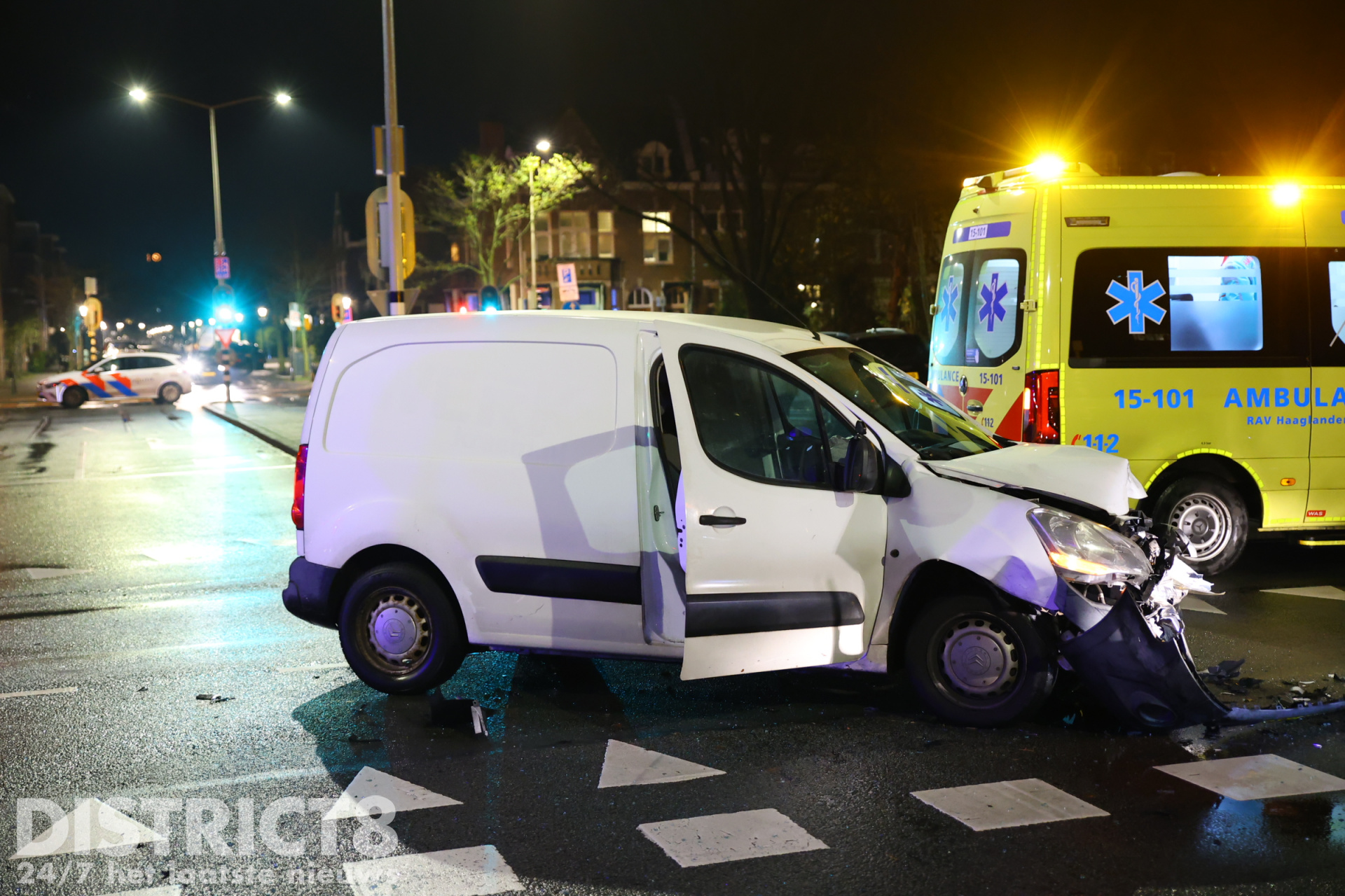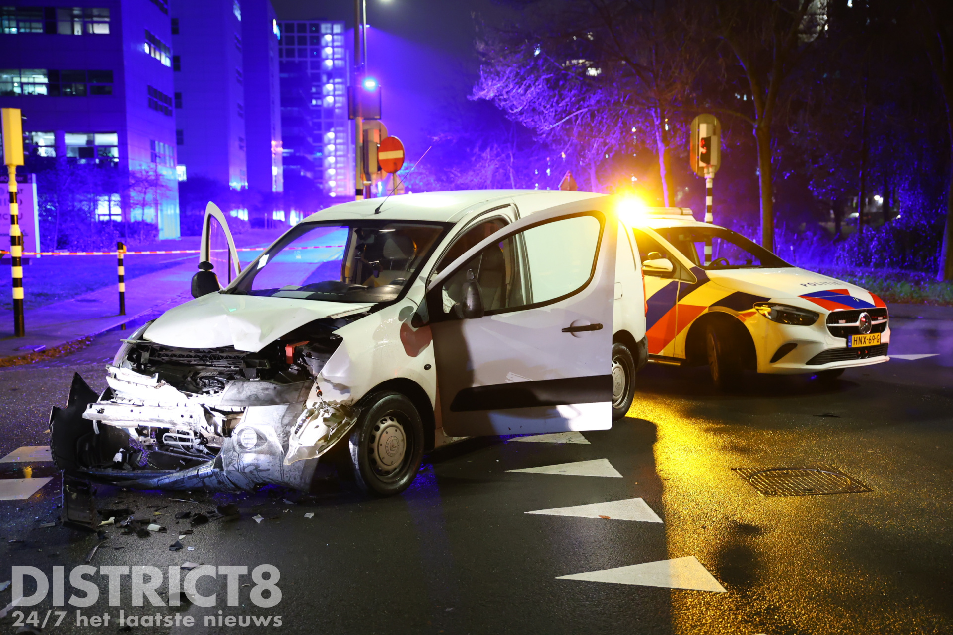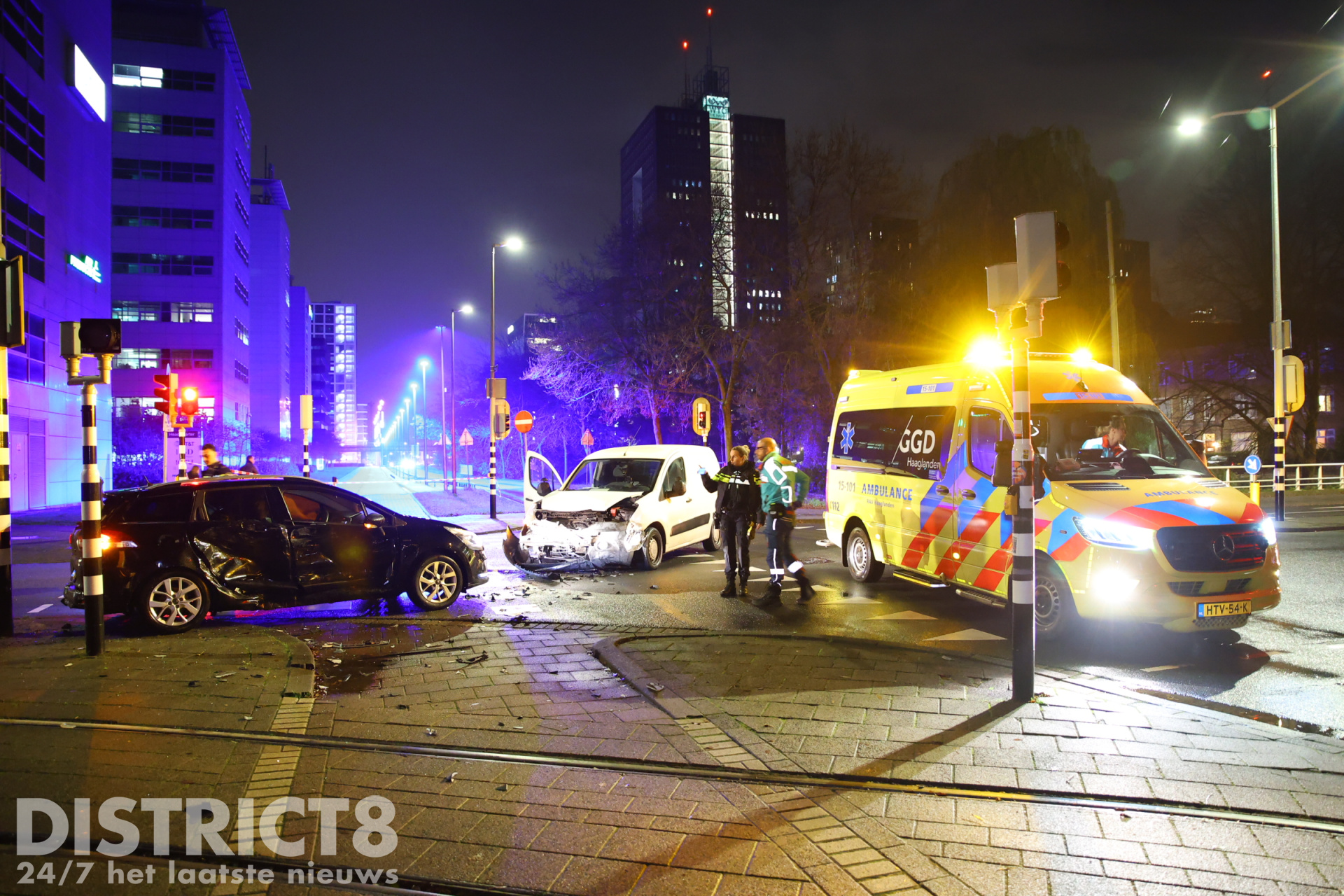 Den Haag – Op de Schenkkade ter hoogte van de kruising met de Wilhelmina van Pruisenweg vond donderdagavond 20 november een aanrijding plaats tussen een auto en een busje. Beide voertuigen liepen aanzienlijke schade op.
