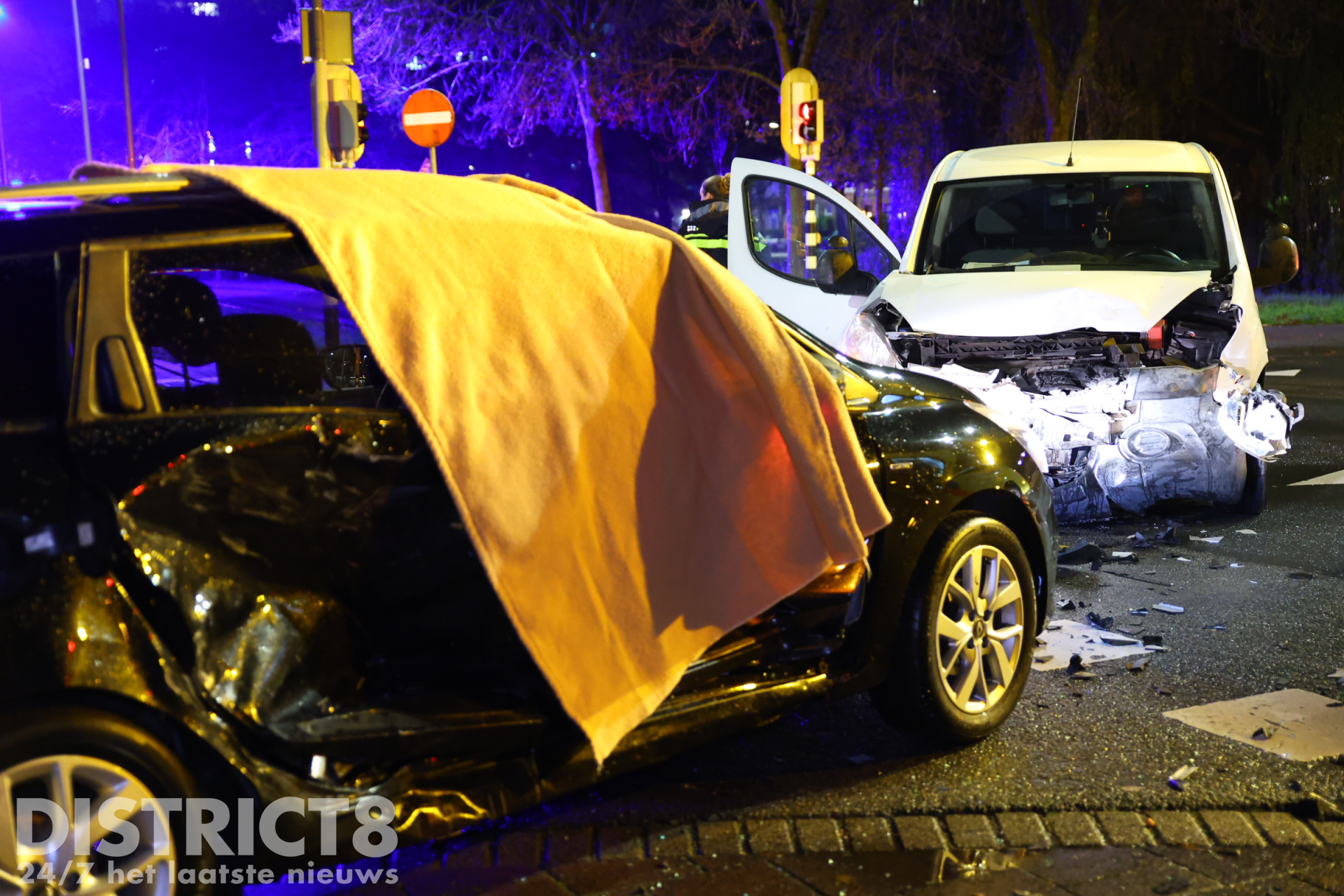 Veel schade na ongeval tussen auto en busje Schenkkade Den Haag