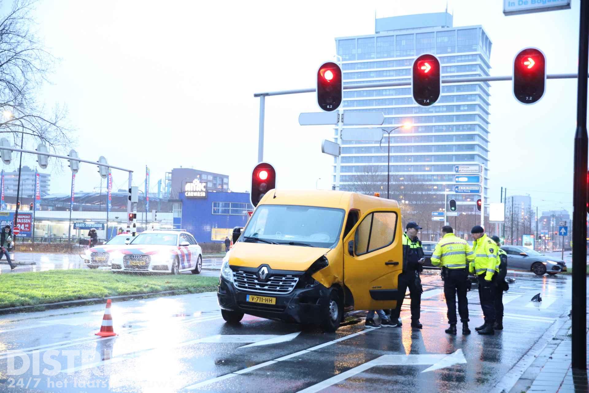 De schade aan de voertuigen is fors. De bestuurder van de bestelbus is door rood gereden met een aanrijding tot gevolg.