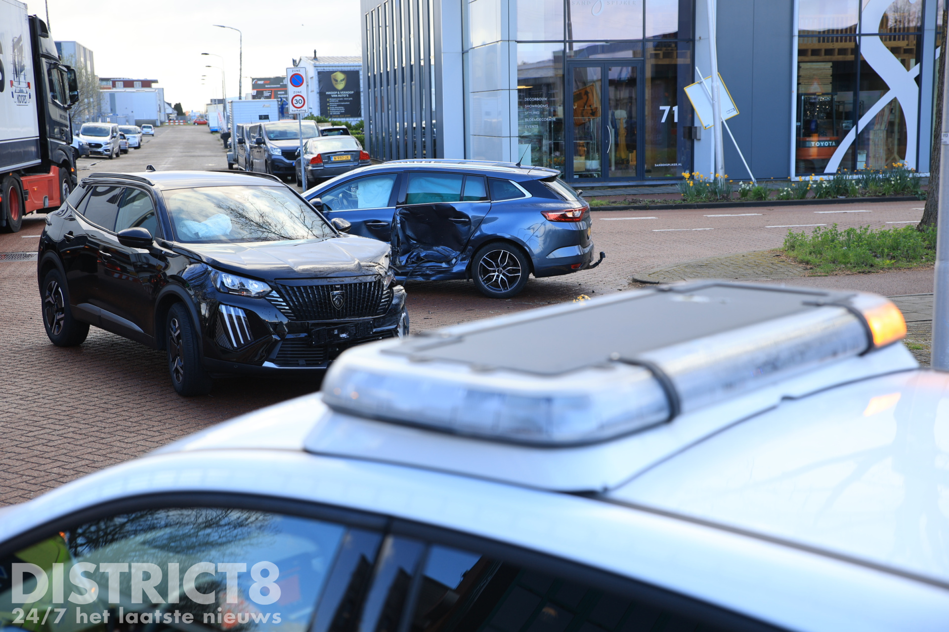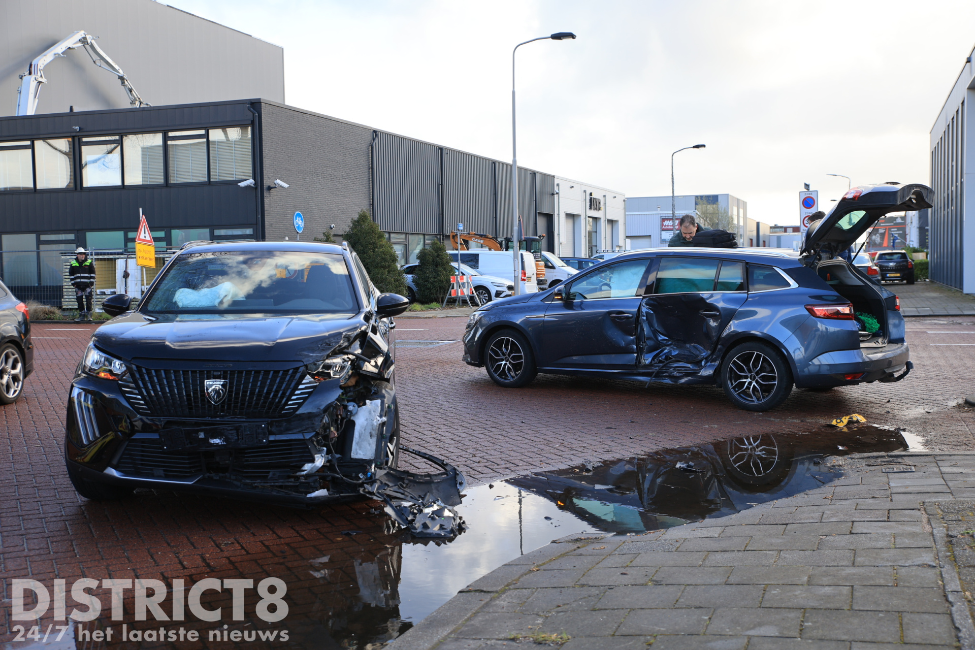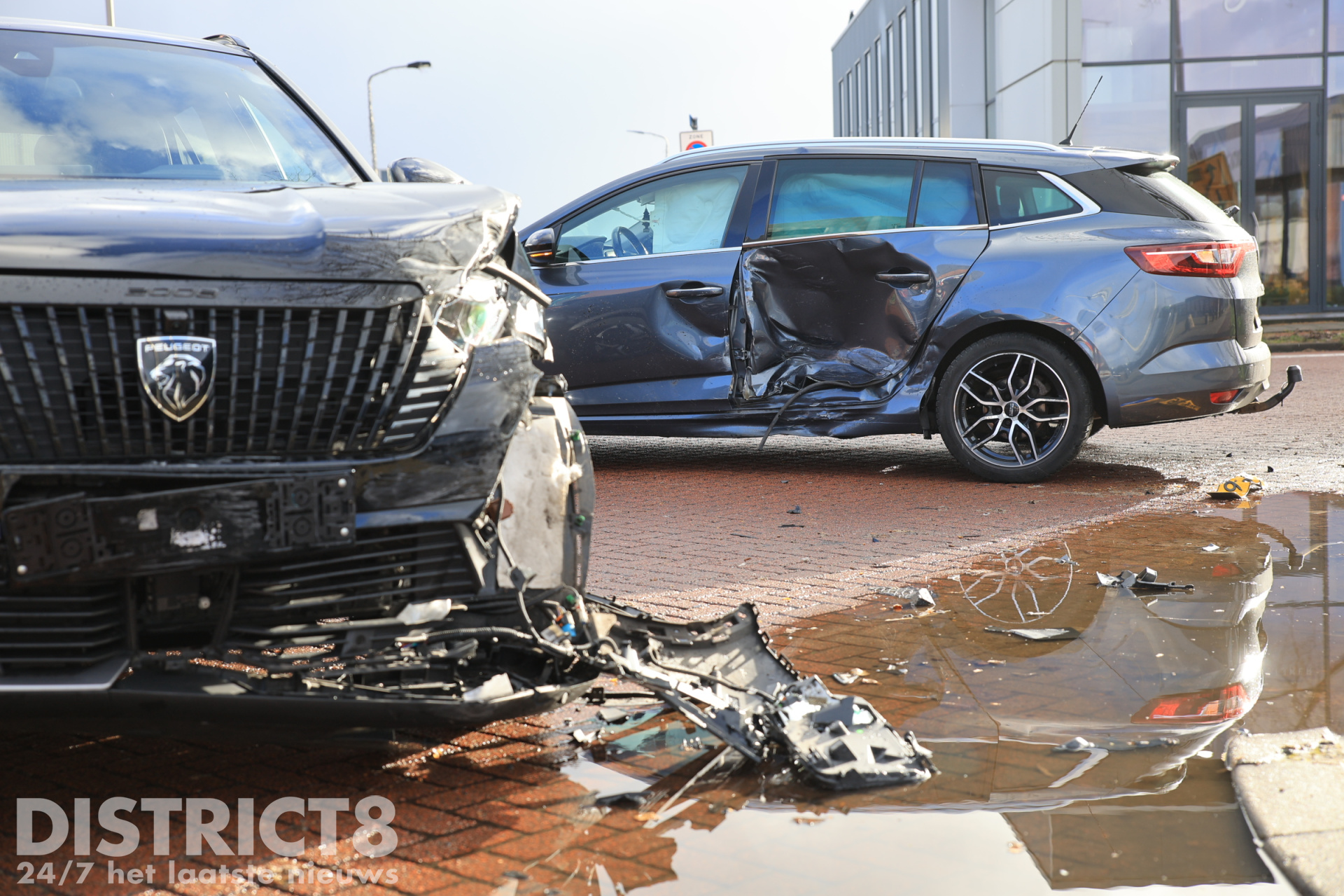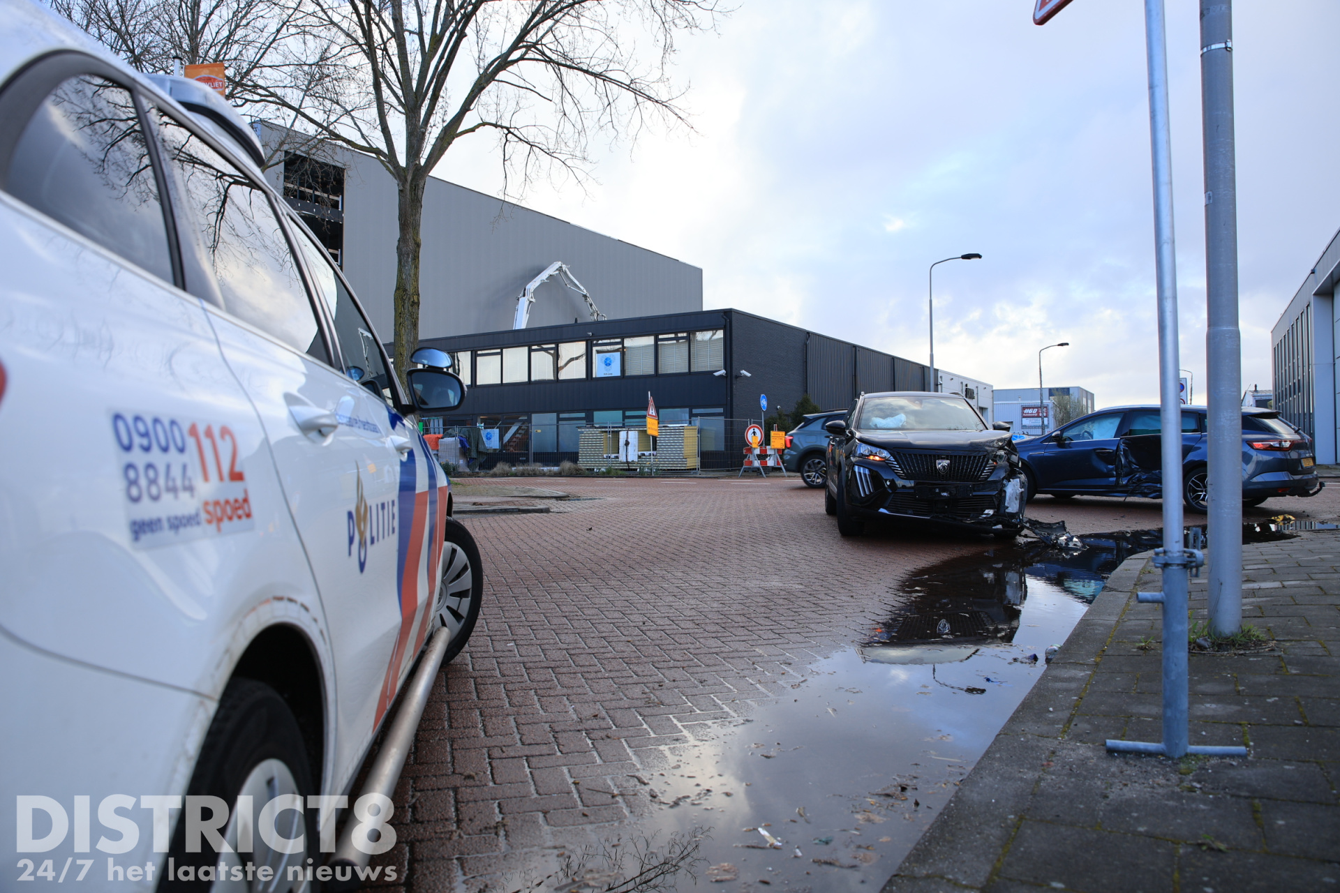 De politie is aanwezig voor de verdere afhandeling van het incident, een berger is ter plaatse gekomen om beide voertuigen af te slepen.