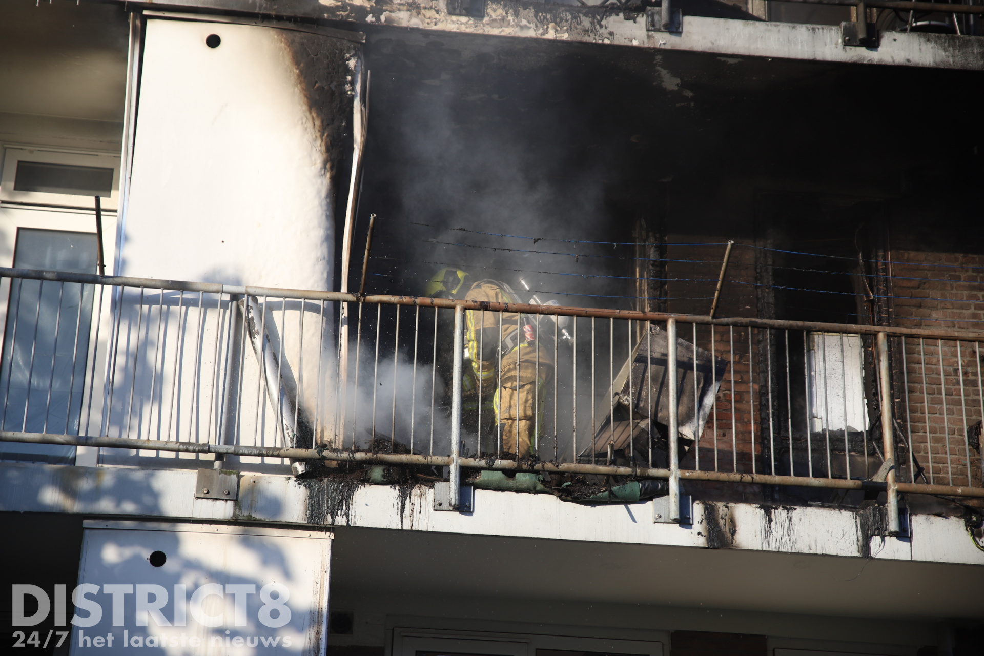 De brandweer schaalde al snel na aankomst op naar het sein ‘middelbrand’. Na enige tijd kreeg de brandweer de brand op het balkon onder controle. De schade aan het balkon en de woning zijn fors.