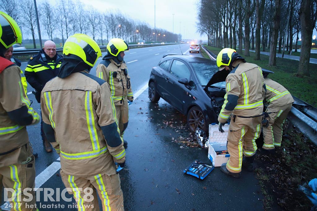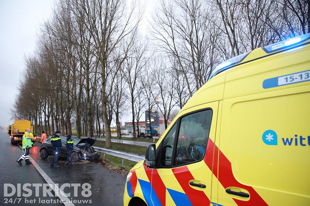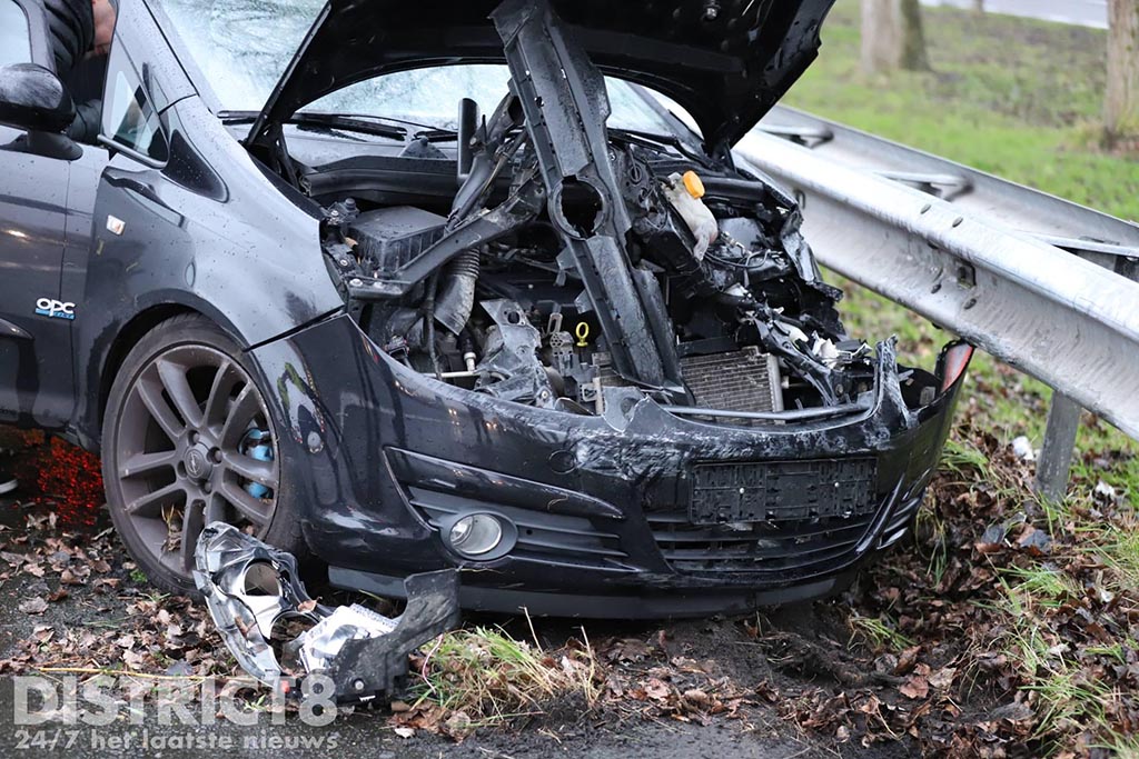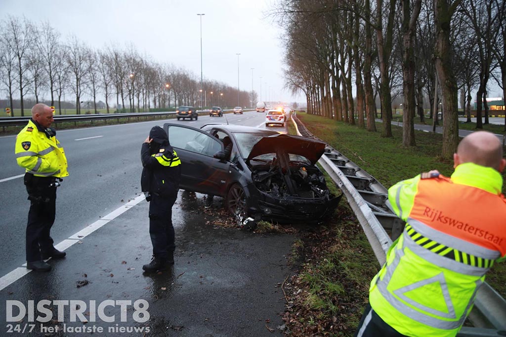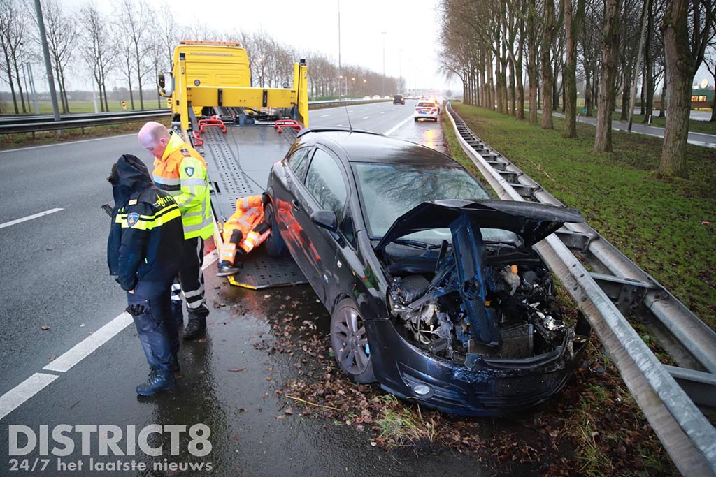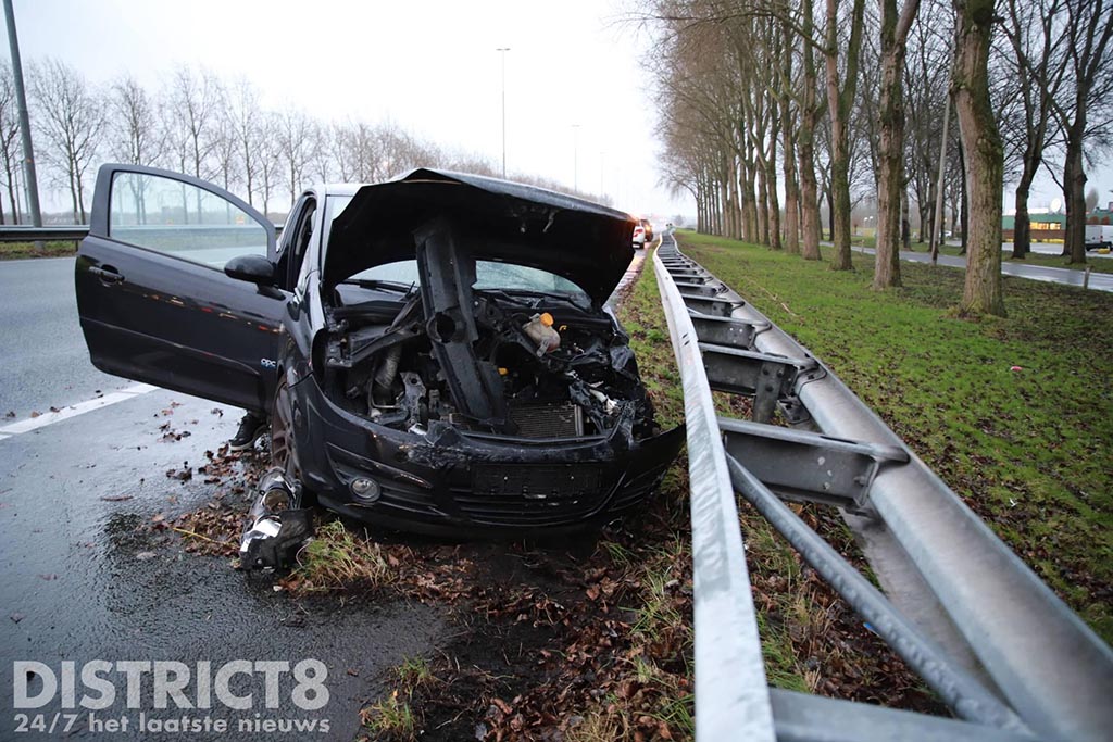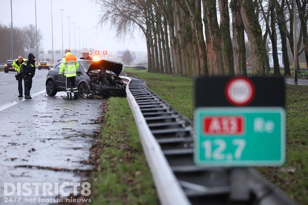 Veel schade nadat auto crasht tegen vangrail A13 Delft