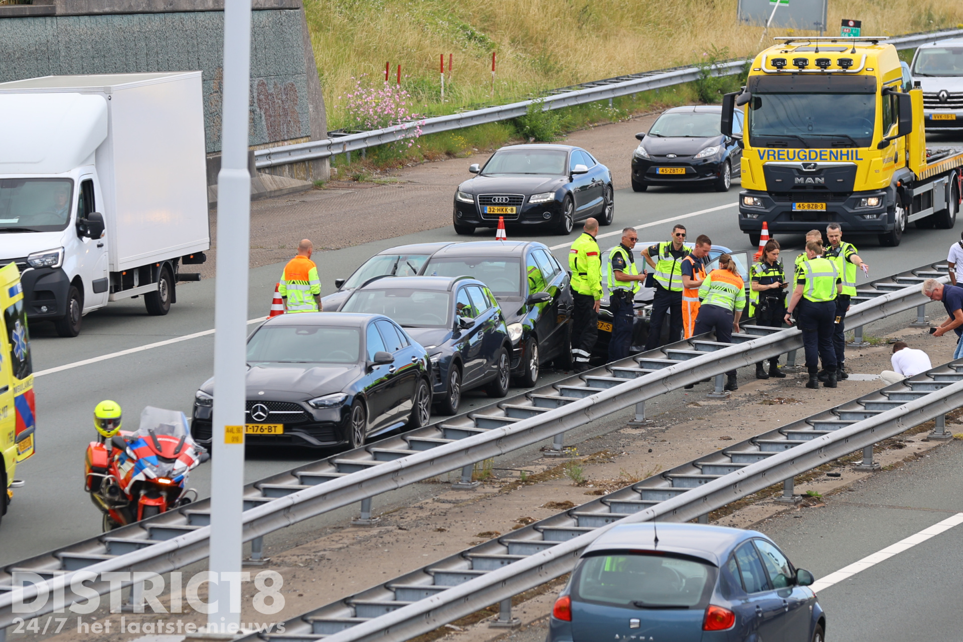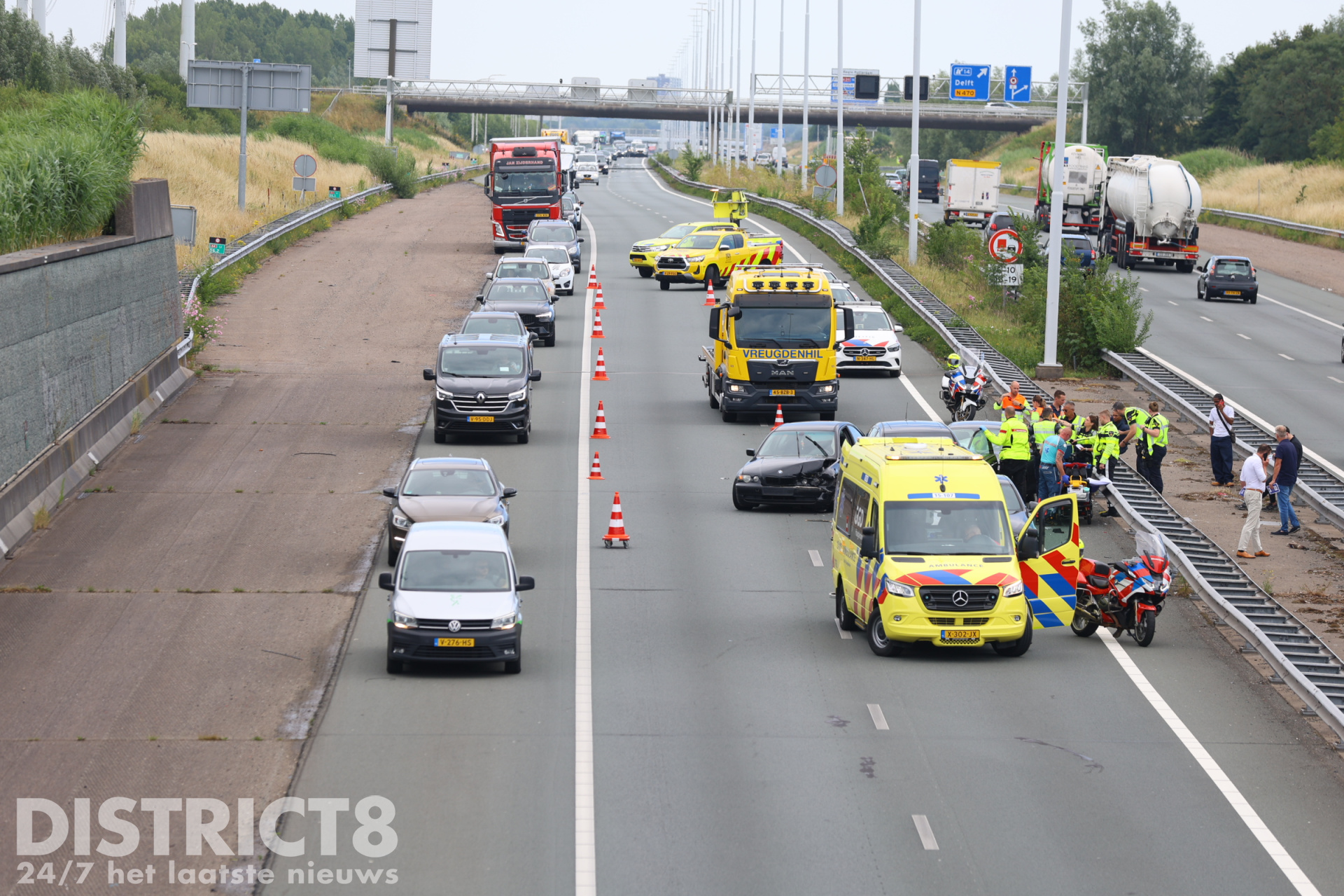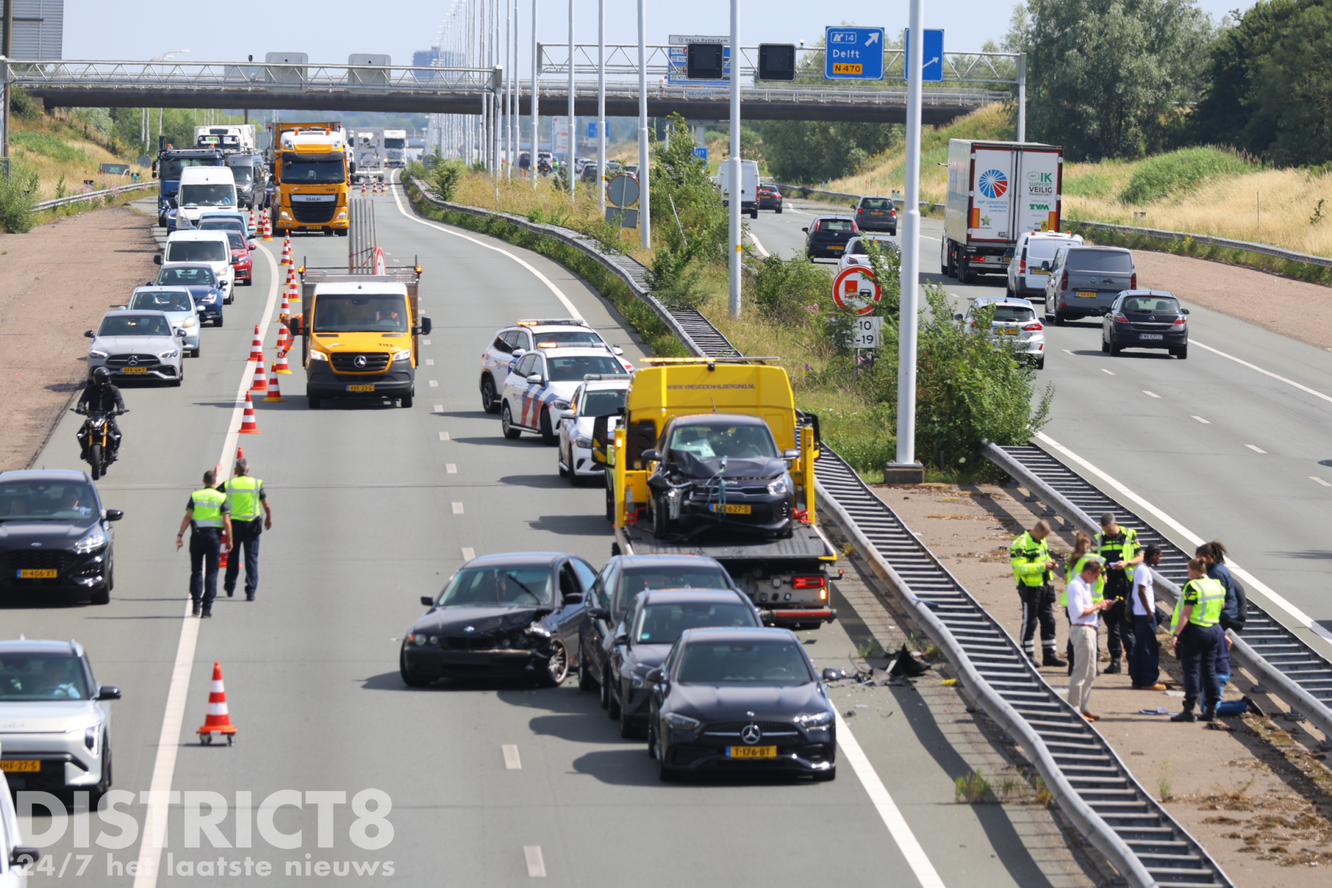 Den Hoorn – Op de A4 bij Den Hoorn heeft vrijdagmiddag 27 juni een kop-staartaanrijding plaatsgevonden tussen minimaal vier voertuigen.