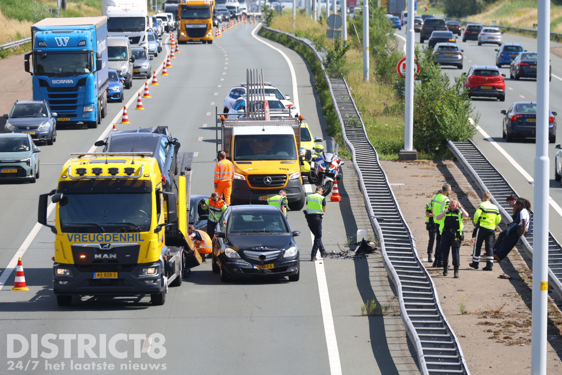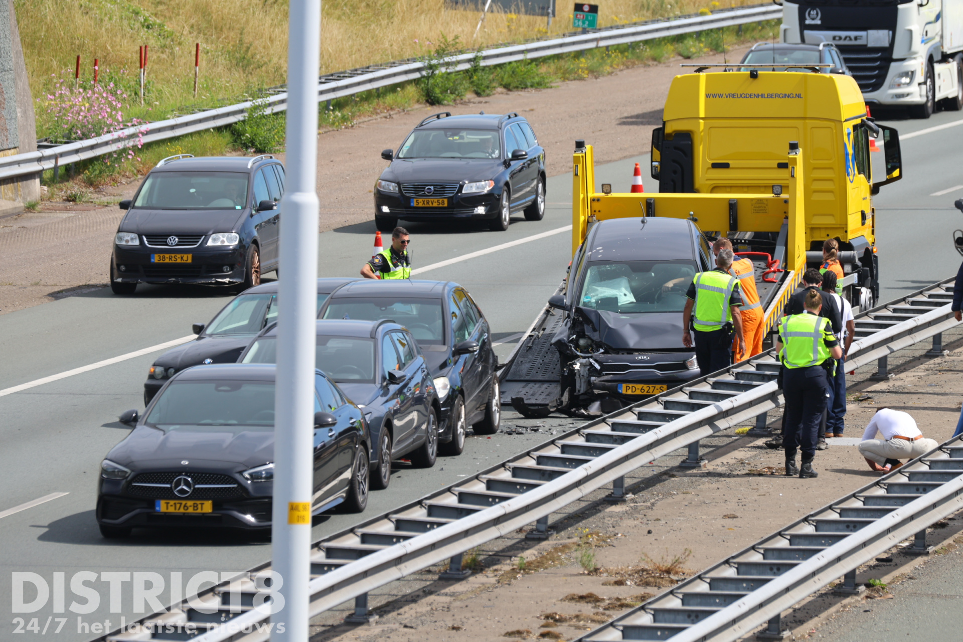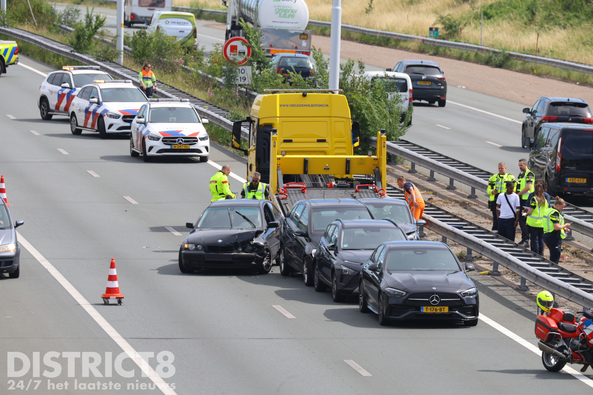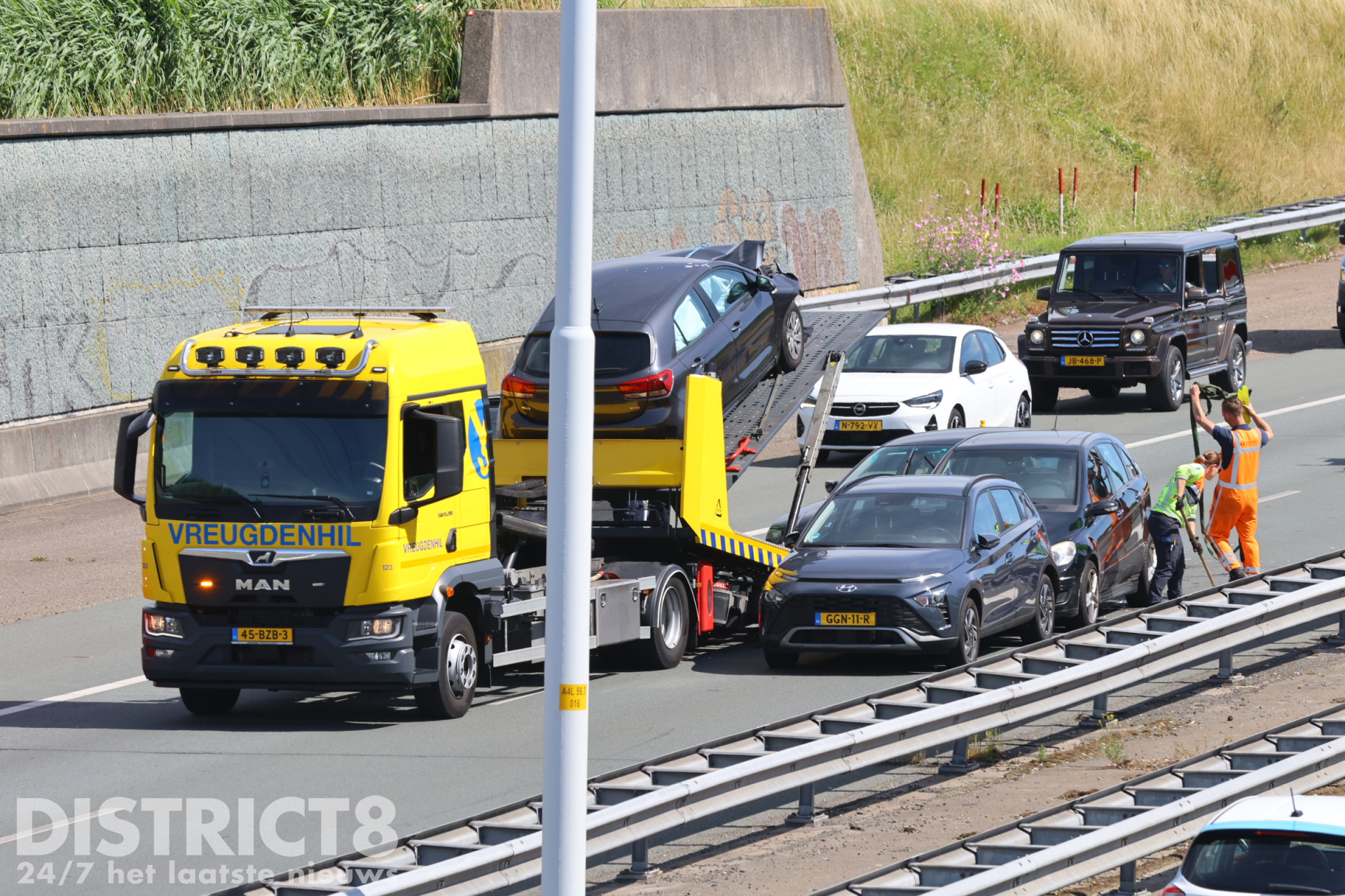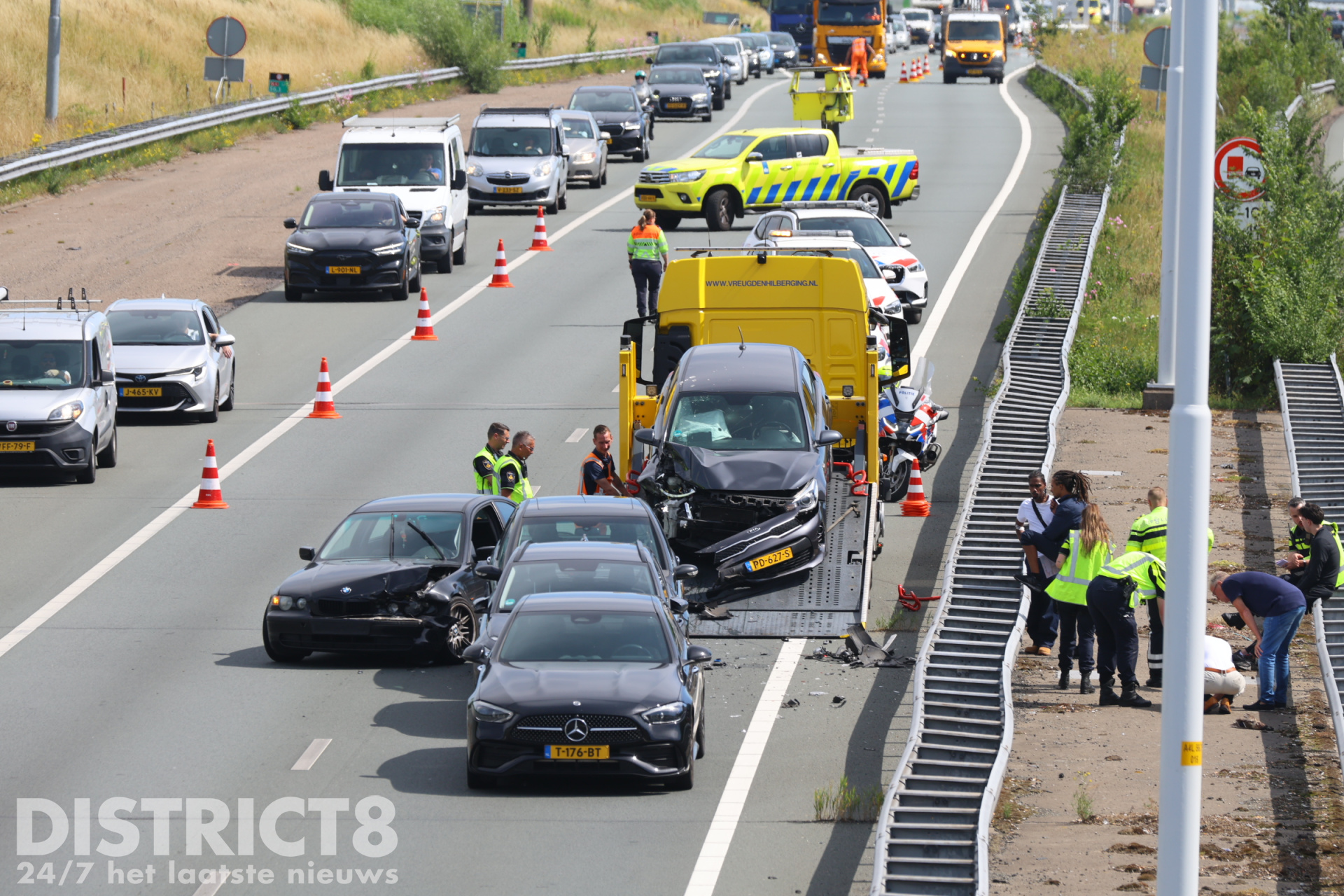 De schade aan de betrokken voertuigen was aanzienlijk; een berger heeft drie voertuigen meegenomen. De snelweg werd omstreeks 16:45 uur weer volledig vrijgegeven.
