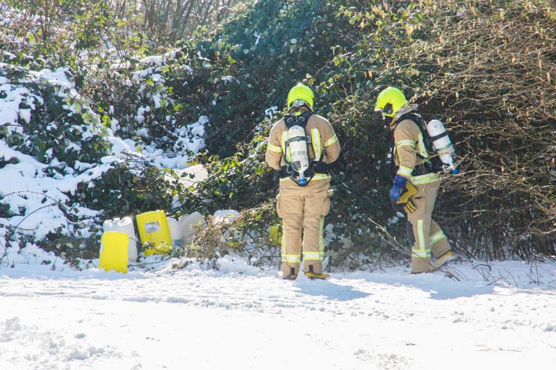 Handhaving trof verdachte jerrycans aan. Omdat er mogelijk gevaarlijke stoffen in de jerrycans zaten, zijn politie en brandweer opgeroepen. Het gebied rondom de jerrycans werd kort afgesloten.