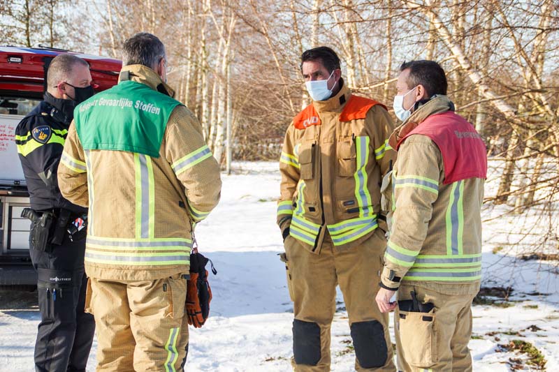 Specialisten van de brandweer hebben metingen verricht om te kijken of er gevaarlijke stoffen aanwezig waren. Na kort onderzoek zijn er geen gevaarlijke waardes gemeten.