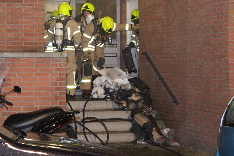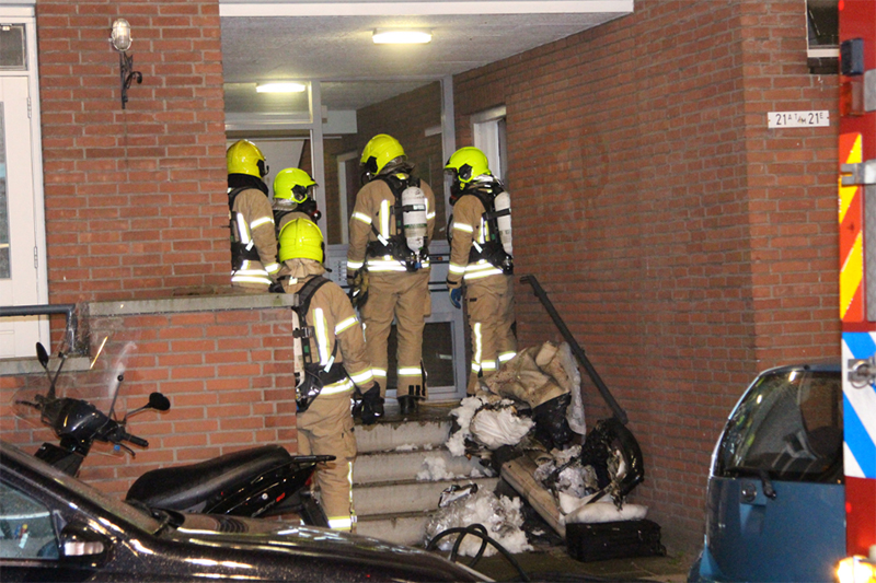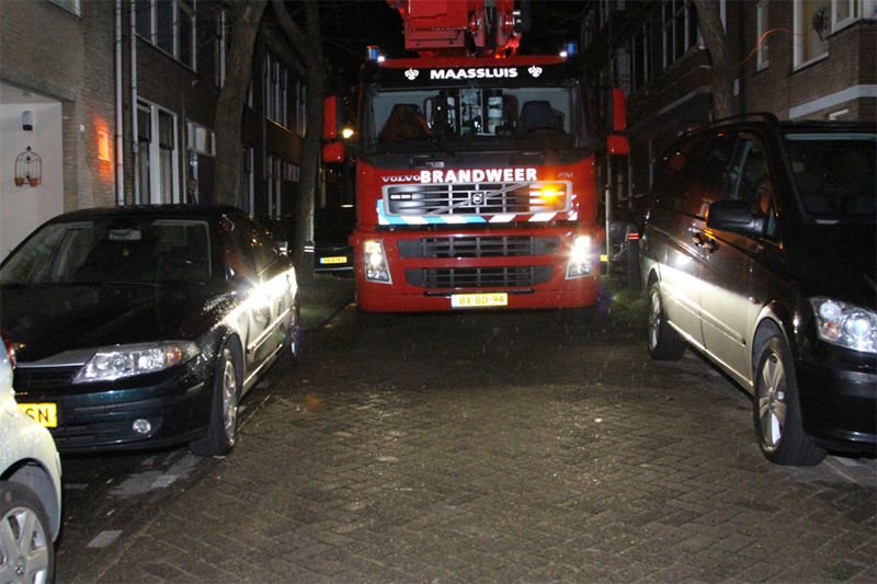 De brandweer had veel moeite om door de smalle straat bij de brand te komen. Auto’s stonden te ver van de stoep geparkeerd, waardoor het voor de hoogwerker onmogelijk was om dicht bij de woning te komen. De hoogwerker is uiteindelijk niet nodig gebleken.