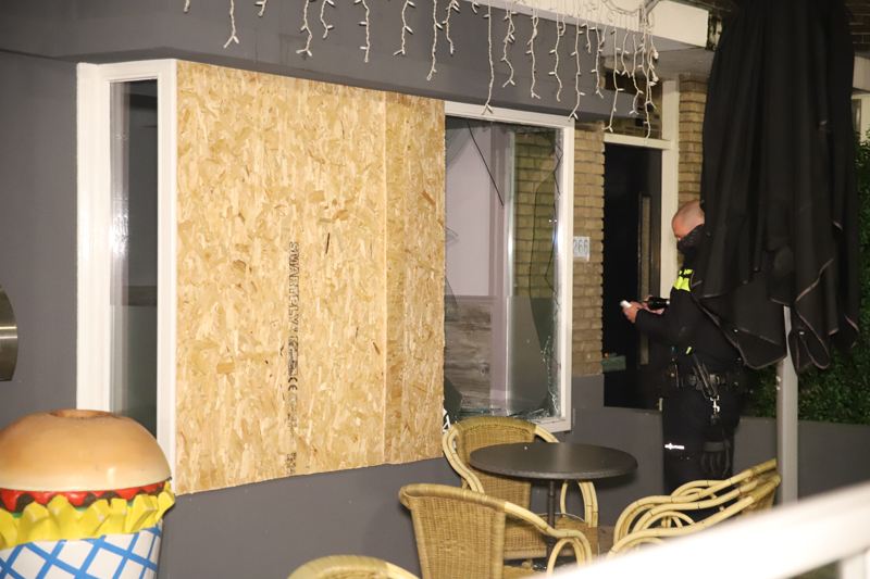 Omstreeks 01:00 uur hoorden omwonenden een harde klap en glasgerinkel. Toen zij poolshoogte gingen nemen hoorden ze twee mannen praten en zagen ze dat het raam van de cafetaria kapot was. Direct daarna belden zij 112. N.a.v. deze melding stuurde de meldkamer direct meerdere eenheden ter plaatse.