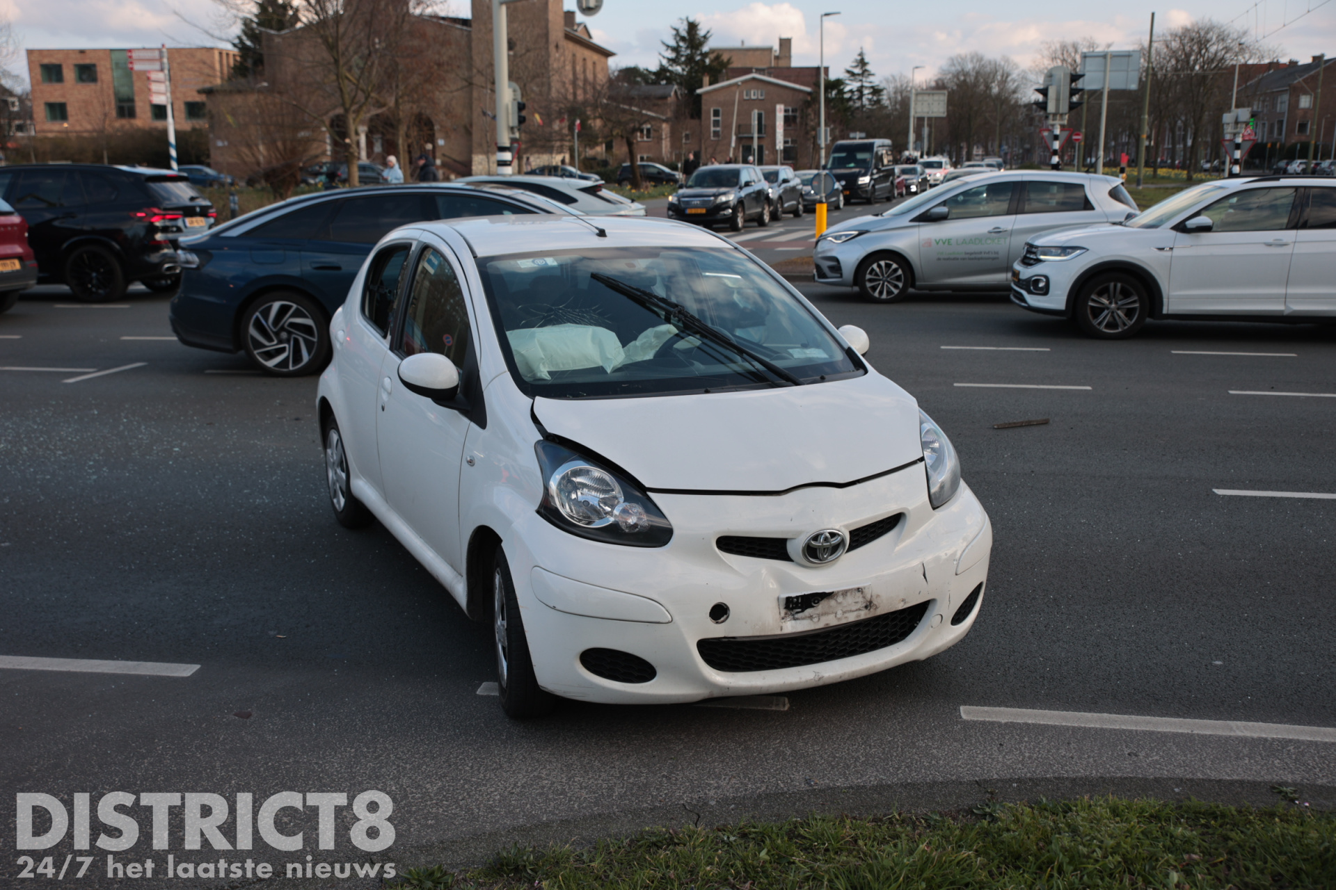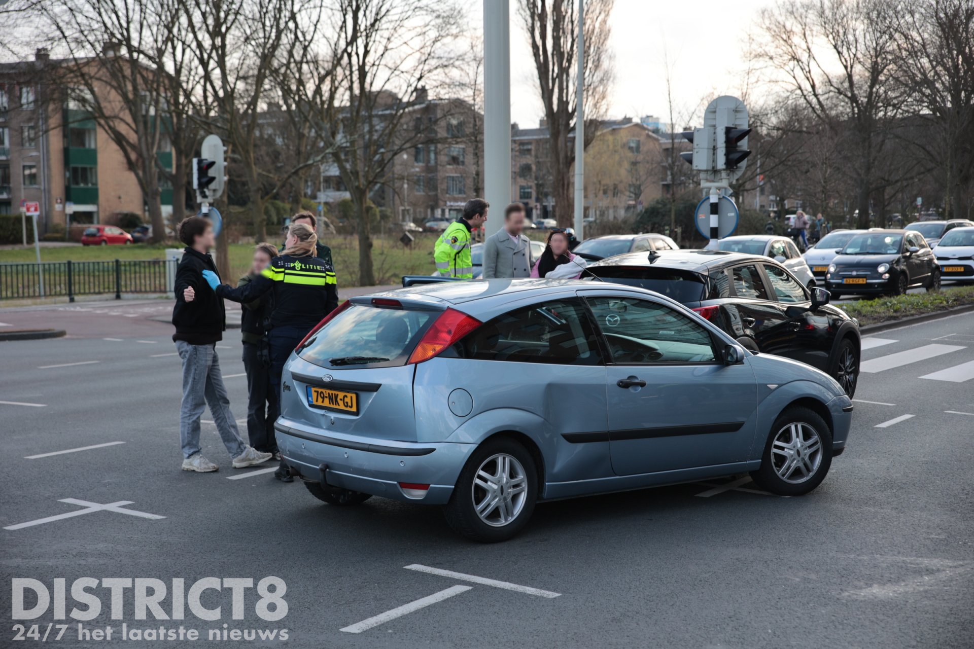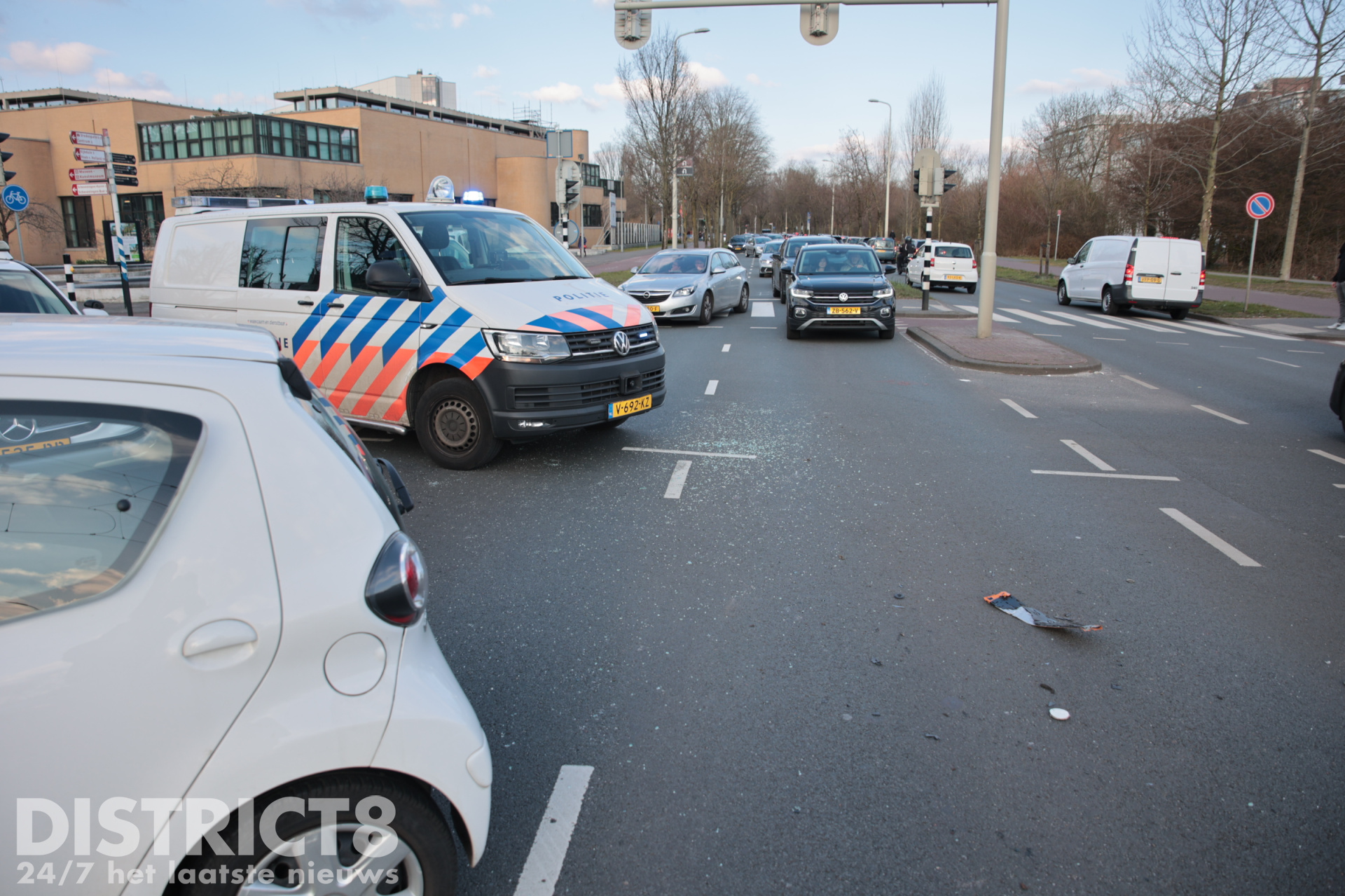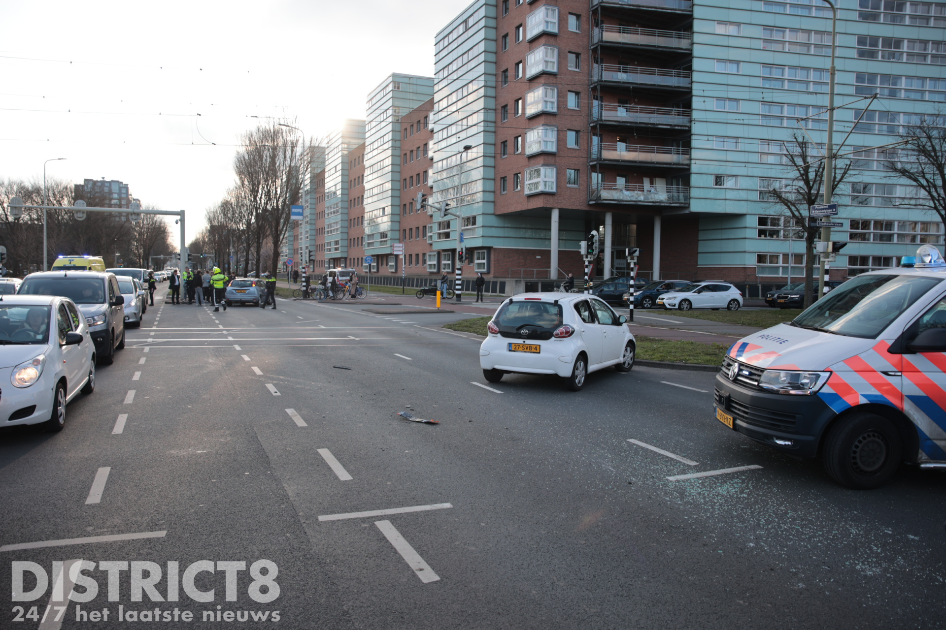 De President Kennedylaan richting de Valeriussttraat is afgesloten door het ongeval.