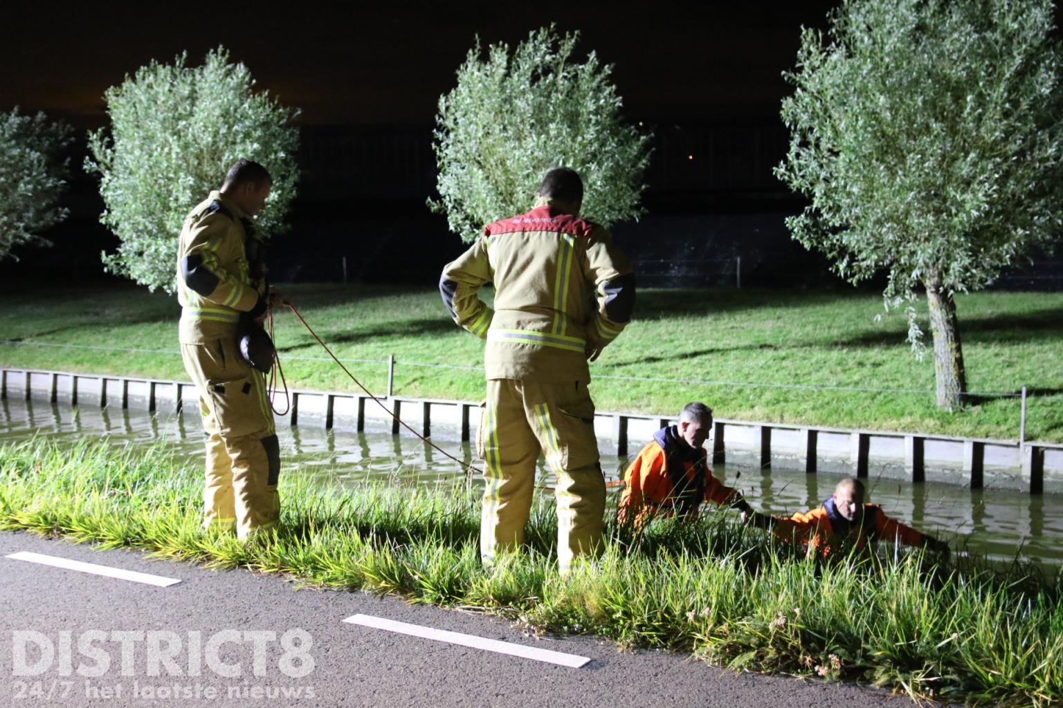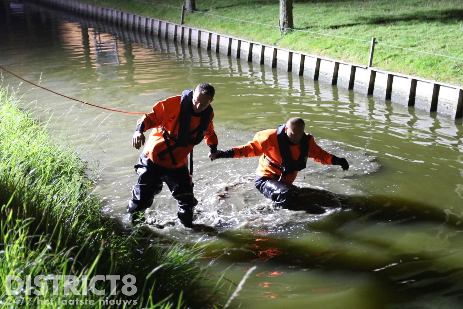 De brandweer kwam met spoed ter plaatse en twee brandweermannen hebben in waadpakken het water doorzocht. Bij deze zoekactie werden geen personen aangetroffen.