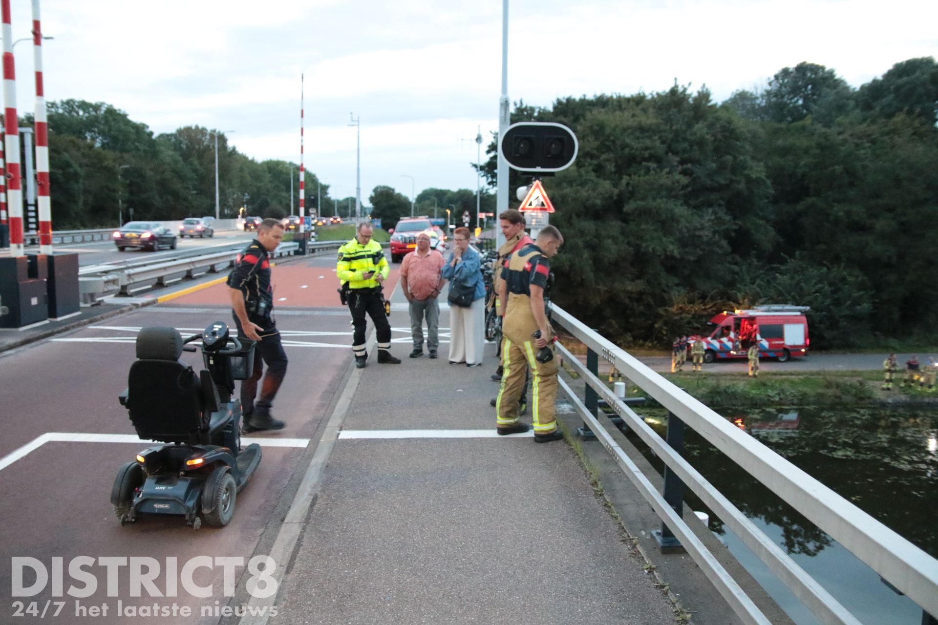 De scootmobiel stond met alarmlichten aan op het fietspad, ter hoogte van het kanaal, op de brug. Voorbijrijdende fietsers vertrouwden het niet en schakelden de hulpdiensten in.