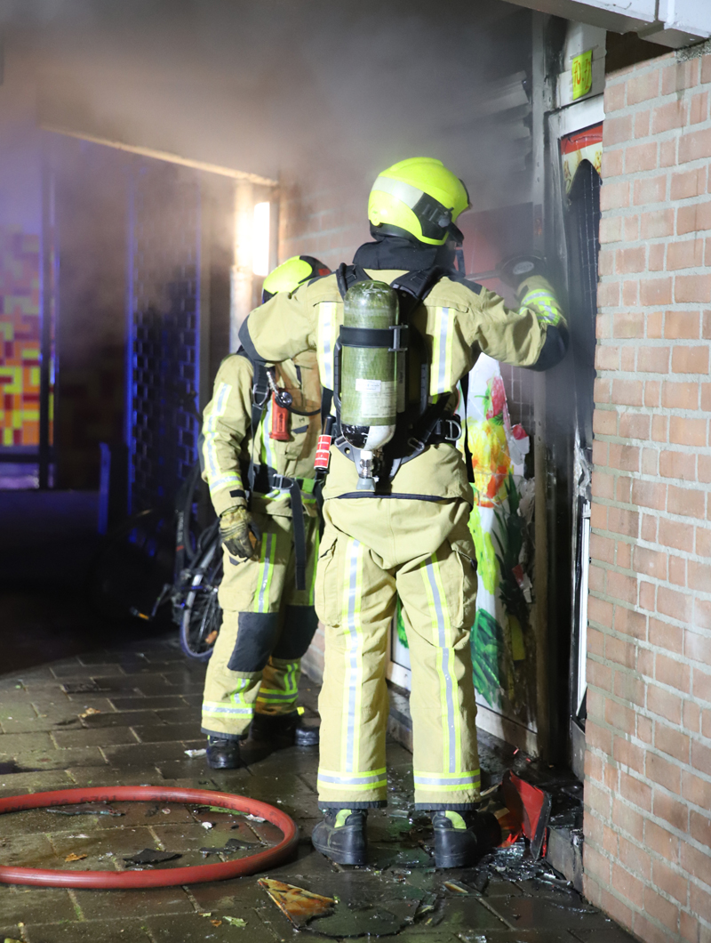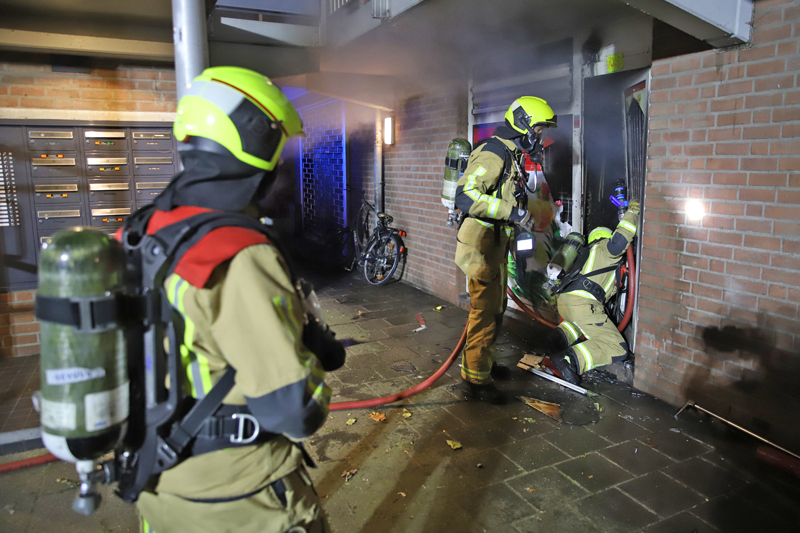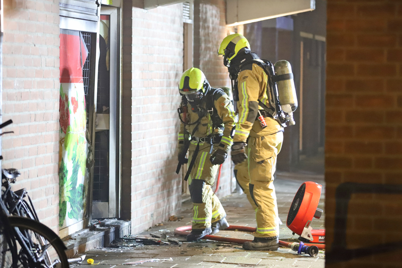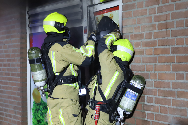 De brandweer had veel moeite om het pand binnen te komen, uiteindelijk is met een stormram en een elektrische spreider de zijdeur geforceerd.