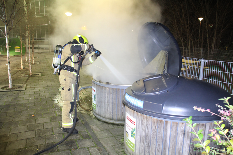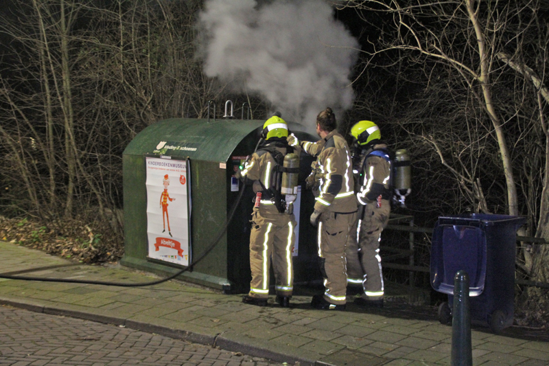 Op het terrein van het Segbroek-college aan de Goudsbloemlaan is de inhoud van een ondergrondse afvalcontainer in brand gestoken. Ook hier hebben de Scheveningse blusgasten de brand geblust.