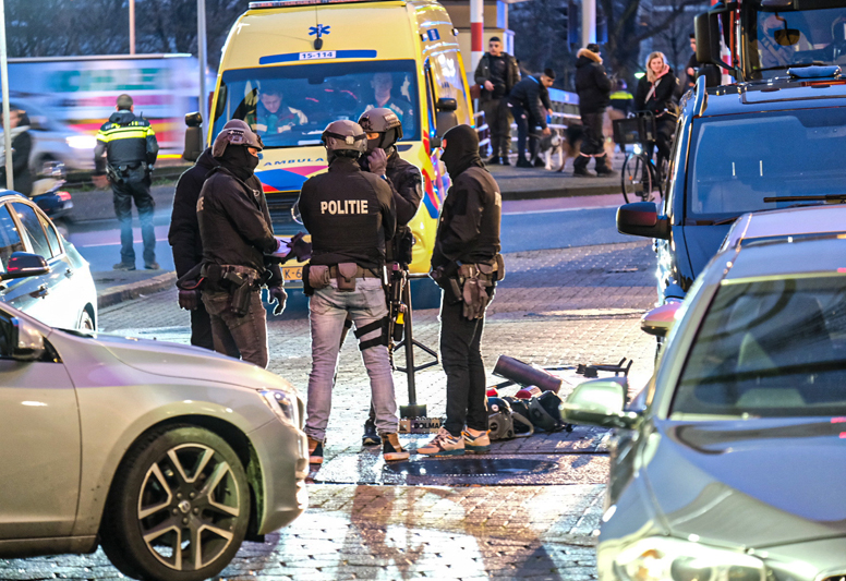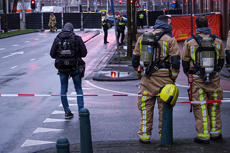 De politie heeft het Calandstraat volledig afgesloten voor het verkeer.